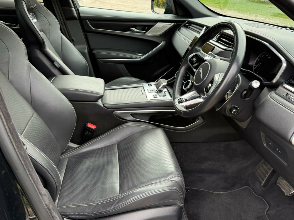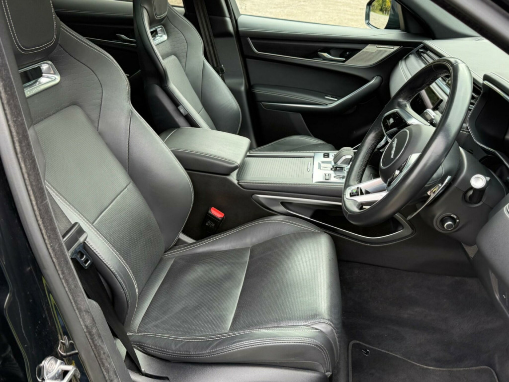 This 2022 Jaguar F-PACE D200 R-Dynamic HSE offers a sophisticated blend of performance and practicality. As a Euro 6 compliant model, it features a powerful 2.0L diesel engine paired with a Four Wheel Drive drivetrain, ensuring confident handling in various conditions. The R-Dynamic HSE trim level signifies a high specification, enhanced by notable features such as a 3D Surround Camera system for comprehensive parking assistance, Blind Spot Assist to enhance safety, and Premium LED Headlights with Signature Daytime Running Lights for improved visibility. Automatic headlights and front and rear parking aids further contribute to a seamless driving experience.With an impressive acceleration of 0-60mph in just 7.6 seconds, this F-PACE demonstrates its dynamic capabilities. Its fuel economy is a highlight, achieving up to 44 miles per gallon, making it an efficient choice for both daily commutes and longer journeys. Furthermore, the generous boot space provides ample room for luggage or shopping, making it a versatile option for families and individuals alike. The vehicle's towing weight capacity of 2400 kg also adds to its considerable utility.WE OPERATE BY APPOINTMENT ONLY. PLEASE CALL THE SHOWROOM TO BOOK A TIME SLOT. SUPPLIED WITH 6 MONTHS RAC PLATINUM PLUS WARRANTY, 12 MONTH BREAKDOWN COVER AND RAC APPROVED 82 POINT COMPLIANT INSPECTION rforated windsor leather sport seats - ebony with ebony-ebony interior, fixed panoramic roof, 11.4in touchscreen, 2-zone climate control, 21in alloy wheels - 5 split-spoke - style 5104 - satin dark grey with contrast diamond turned finish, 3 rear headrests, 3-flash lane change indicators, 355mm front and 325mm rear brakes, 40-20-40 folding rear seats with centre armrest, abs - anti-locking braking system, aspc - all surface progress control, adaptive cruise control, adaptive dynamics, air distribution speed, airbags - front side, airbags - full length side window curtain, android auto, animated directional indicators, apple carplay, approach illumination, auto high beam assist, auto-dimming interior rear view mirror, automatic headlights, blind spot assist, bluetooth connectivity, bluetooth streaming, body coloured roof, brake pad wear indicator, cabin lighting, centre console with armrest, centre console with side storage, clear exit monitor, configurable dynamics, digital audio broadcast - dab - radio, driver condition monitor, dynamic stability control - dsc, dynamic volume control, eba - emergency brake assist, eco driving style assistant, epas - electric power assisted steering, epb - electronic parking brake, electric windows - front and rear with one-touch open-close and anti-trap, emergency braking, f-pace badge, front airbags with passenger seat occupant detector, front door storage space, front and rear parking aid, glovebox finisher with jaguar script, green tinted glass, heated - electric - power fold memory door mirrors with approach lights and auto-dimming driver side, heated front windscreen, heated rear window, heated steering wheel, hill launch assist, hook or hooks in loadspace, isofix rear, illuminated metal treadplates with brand-name script, interior front door handles with separate locking switches, jaguar script and leaper, jaguardrive control, keyless entry, led tail lights, lane keep assist, lockable glovebox, luggage tie downs in loadspace, meridian sound system, metal loadspace scuff plate, mist sensing, online pack with data plan, open differential with torque vectoring by braking, outside temperature gauge, overhead lighting console, overhead stowage for sunglasses, passive front head restraints, pivi pro connected, pivi pro including connected navigation, power operated child locks, powered tailgate - boot lid, premium carpet mats, premium led headlights with signature drl, push button start, r-dynamic badging, r-dynamic branded leather steering wheel, r-dynamic exterior pack - bumper finishes-inserts - grille - door cladding, rain sensing windscreen wipers, rear air vents, rear collision monitor, rear door storage space, rear fog lights, rear metal treadplates, rear traffic monitor, remote, satin charcoal ash veneer, satin chrome gearshift paddles, seat belt reminder, secure tracker (12 month subscription from new), shopping bag hook, speed proportional steering, start up sequence with movement - dials and lighting, steering column - electrically adjustable, steering wheel - multi-function, summer tyres, sunvisors with illuminated vanity mirrors, torque vectoring by braking - tvbb, traffic sign recognition with adaptive speed limiter, trailer stability assist, twin front cupholders, tyre pressure monitoring system, unpainted brake calipers, valet mode, variable intermittent wipers, voice control, ipod integration