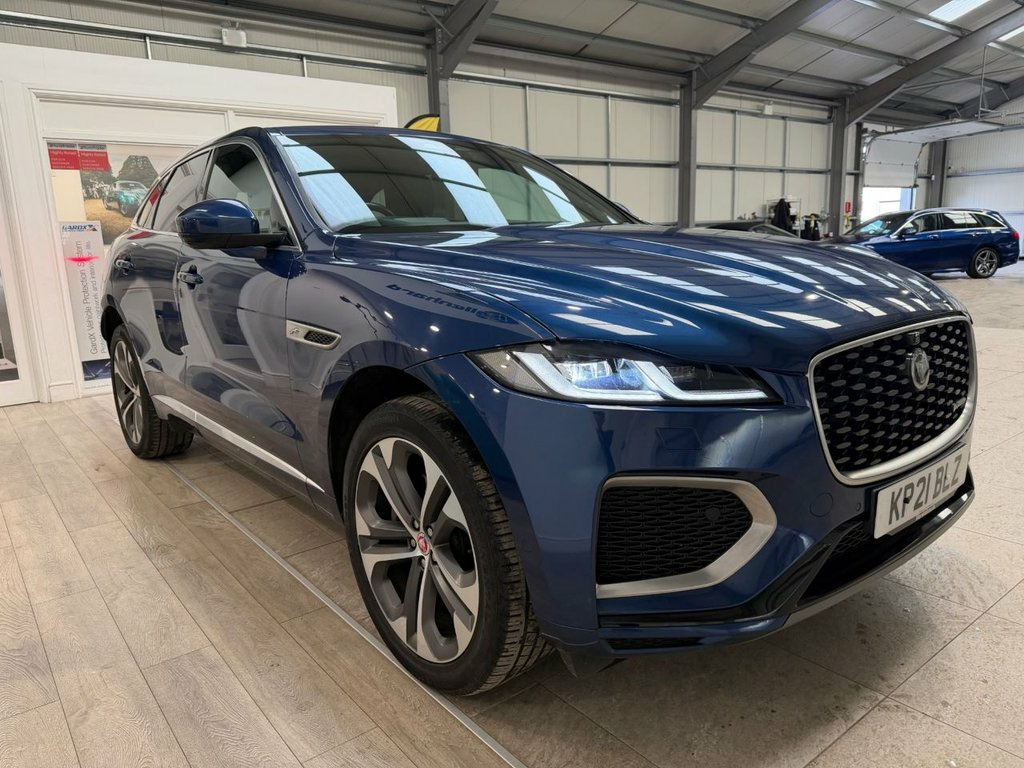 Finished in striking Bluefire Blue, this Jaguar F-PACE R-Dynamic HSE is a premium SUV that blends performance, luxury and everyday usability with effortless confidence. Powered by the refined 2.0 D200 mild-hybrid diesel engine producing 204 ps and paired with a smooth automatic gearbox and intelligent all-wheel drive, it delivers strong, efficient performance whether you're cruising the motorway or tackling poorer road conditions. The R-Dynamic HSE specification brings a sportier edge to Jaguar's sleek design, with muscular styling cues that perfectly complement the F-PACE's dynamic presence. Inside, the cabin feels every bit as special as you'd expect, offering a high-quality, driver-focused environment packed with comfort, technology and premium finishes that make every journey feel first class. This Euro 6 compliant model benefits from stop/start technology and mild-hybrid assistance for improved efficiency, while still retaining the engaging drive Jaguar is known for. It has been meticulously maintained and comes with a full service history, giving complete peace of mind and reflecting the care it has received throughout its life. A stylish, capable and well-specified SUV that delivers luxury without compromise, this Jaguar F-PACE is equally at home on long journeys, family duties or simply making a statement wherever it goes. Service History 10/02/2026 @ 40900 miles 02/12/2024 @ 19180 miles 18/11/2022 @ 9540 miles 09/02/2021 @ 4 miles At Ka 21in Alloy Wheels - 10 Spoke - Style 106, Privacy Glass, Bluefire Blue, 11.4in Touchscreen, 14-Way Heated and Cooled Electric Memory, 2-Zone Climate Control, 21in Alloy Wheels - 5 Split-Spoke - Styl, 3 Rear Headrests, 3-Flash Lane Change Indicators, 355mm Front and 325mm Rear Brakes, 3D Surround Camera, 40-20-40 Folding Rear Seats with Centre , ABS - Anti-locking Braking System, ASPC - All Surface Progress Control, Adaptive Cruise Control, Adaptive Dynamics, Air Distribution Speed, Airbags - Front Side, Airbags - Full Length Side Window Curtai, Android Auto, Animated Directional Indicators, Apple CarPlay, Approach Illumination, Auto High Beam Assist, Auto-Dimming Interior Rear View Mirror, A