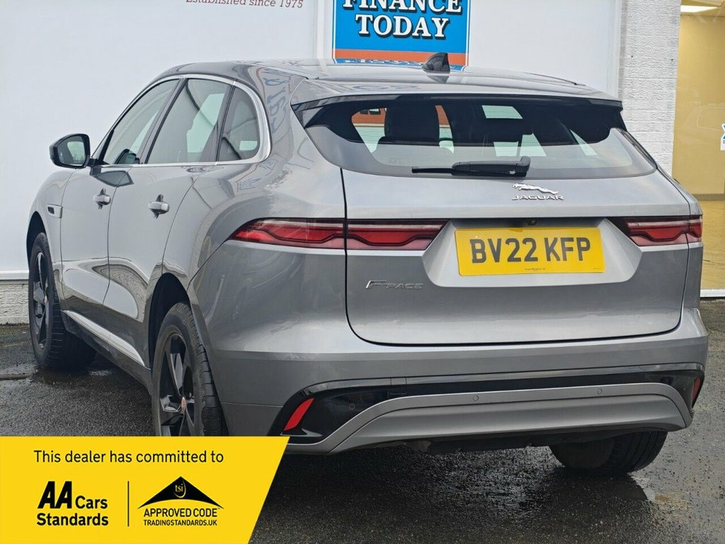 With only one owner and a remarkably low mileage of 29,604 miles for its 2022 registration, this Jaguar F-PACE D200 R-Dynamic S presents an exceptional opportunity. This vehicle comes with two keys, Excellent service history and only one owner since new. This four wheel drive model is equipped with a 2.0 litre diesel engine and meets Euro 6 emission standards. Inside, you'll find comfortable 12 way heated electric front seats with manual headrests, and for convenience, front and rear parking aids, a rear camera, and wireless device charging are included. Apple CarPlay is also integrated, ensuring seamless connectivity on every journey. ========= Specification Pivi Pro Connected Infotainment System Apple CarPlay & Android Auto Adaptive Cruise Control 12-Way Heated Electric Front Seats Wireless Device Charging Rear Camera with Front & Rear Parking Aid 2-Zone Climate Control Premium LED Headlights with Signature DRL Powered Tailgate (Hands-free appeal) Lane Keep Assist Traffic Sign Recognition with Adaptive Speed Limiter Heated Steering Wheel Heated Front Windscreen Online Pack with Data Plan (connected services) ========= Service History 15/07/2024 - Jaguar - 17743 Miles This vehicle will be serviced and have a MOT prior to sale ========= 12-Way Heated Electric Front Seats with , 19in Alloy Wheels - 5 Spoke - Style 5103, 2-Zone Climate Control, 3 Rear Headrests, 40-20-40 Folding Rear Seats with Centre , ABS - Anti-locking Braking System, Adaptive Cruise Control, Airbags - Front Side, Airbags - Full Length Side Window Curtai, Analogue Dials with Central TFT Display, Android Auto, Apple CarPlay, Auto-Dimming Interior Rear View Mirror, Automatic Headlights, Brake Pad Wear Indicator, Cabin Lighting, Digital Audio Broadcast - DAB - Radio, Driver Condition Monitor, Dynamic Stability Control - DSC, EBA - Emergency Brake Assist, Ebony Morzine Headlining, Electric Windows - Front and Rear with O, Emergency Braking, Engine Spin Alumini