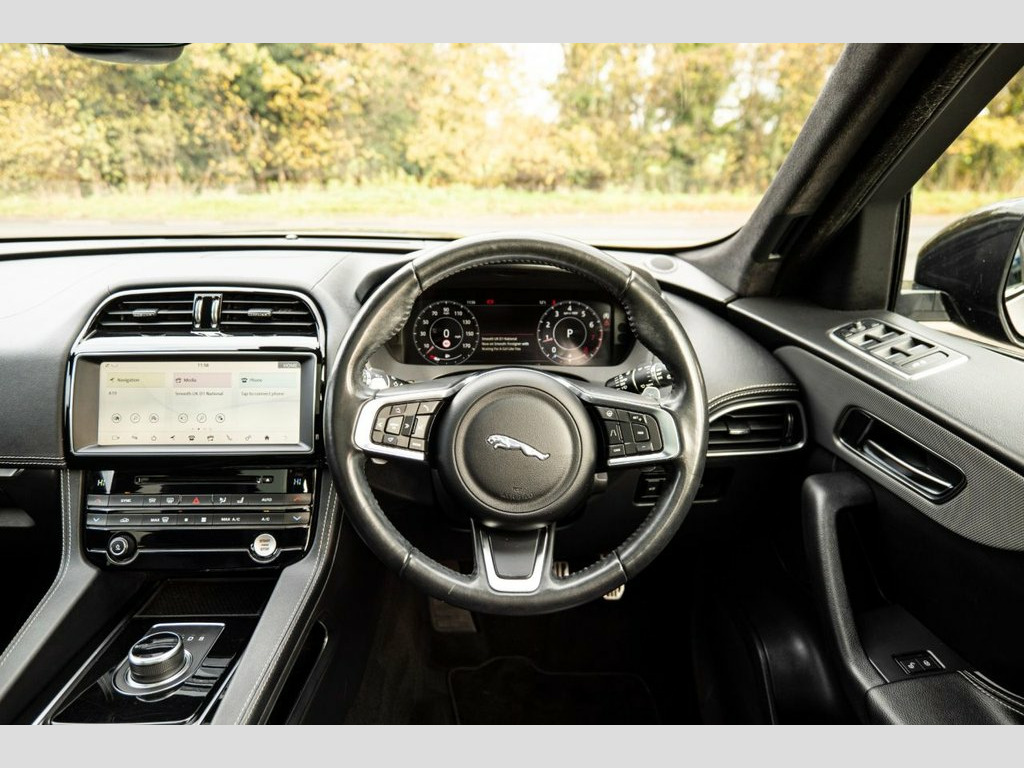 Prestige Car Supermarket in York presents this exclusive and powerful 2020 Jaguar F-PACE 2.0 P250i Chequered Flag SUV. Finished in Eiger Grey metallic paintwork and featuring a premium Luxtec Wrapped Instrument Panel Topper with an Ebony Suedecloth Headlining, this automatic petrol four-wheel-drive SUV delivers an engaging 250 horsepower. As a special edition model, it rides on 20in 5 Split-Spoke Style 5031 alloy wheels with Gloss Black Finish and features the R-Sport Rear Bumper and S Front Bumper. Key features of this Chequered Flag Edition include the Fixed Panoramic Roof, Gloss Black Roof Rails, Gloss Black Side Vents with Chequered Flag Badge, and optional Privacy Glass, costing £415.00. Illumination is provided by Xenon Headlights with LED Signature and Front Fog Lights, with Headlight Power Wash. Step inside the luxurious cabin to find Heated Front Sports Seats with 10-Way Electric Adjustment, a Heated Soft Grain Leather Sport Steering Wheel, Two-Zone Climate Control, and Meshed Aluminium Trim Finisher. Technology is cutting-edge with the 10in Touch Pro screen, Interactive Driver Display, Navigation Pro, and the Meridian Sound System (380W). Convenience and safety are paramount with Cruise Control, Front and Rear Parking Aid, Rear Camera, Lane Keep Assist, and a Powered Tailgate, ensuring a secure and well-connected drive. Privacy Glass, Eiger Grey, 10-Way Electric Front Seats, 10in Touch Pro, 2-Zone Climate Control, 20in Alloy Wheels - 5 Split-Spoke Style , 25t AWD Badge, 3-Flash Lane Change Indicators, 325mm Front Brakes, 40-20-40 Split Fold Rear Seat, ABS - Anti-locking Braking System, AM-FM Radio, ASPC - All Surface Progress Control, Airbags - Front Side, Airbags - Full Length Side Window Curtai, Ambient Interior Lighting, Android Auto, Apple CarPlay, Approach Illumination, Auto-Dimming Interior Rear View Mirror, Bluetooth Connectivity, Bluetooth Streaming, Body Coloured Door Mirror Caps, Body-Coloured Door Claddings with Gloss , Brake Pad Wear Indicator, Bright Metal Pedals, CD-DVD Player, Centre Console