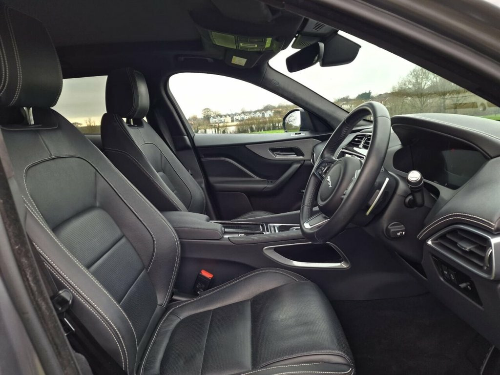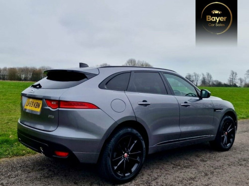 1 OWNER! GREAT SPEC! VAT QUALIFYING. This 2019 Jaguar F-PACE P250i Chequered Flag is a superb example, having been owned by just one careful keeper. This stylish SUV boasts a powerful 2.0 litre petrol engine, paired with a smooth Four Wheel Drive system, ensuring confident handling in all conditions. Its Euro 6 emission class means it meets current environmental standards. The Chequered Flag trim level adds a touch of exclusivity, further enhanced by striking 20 inch alloy wheels with a gloss black finish. Practicality is also key, with a generous towing weight of 2400 kg. Experience the dynamic performance of this F-PACE, which accelerates from 0 to 60 miles per hour in a swift 6.6 seconds, demonstrating its impressive capability. The vehicle is equipped with convenient features such as Keyless Entry, allowing effortless access. For enhanced visibility and safety, it includes Auto High Beam Assist and auto dimming, power folding, heated door mirrors with approach lights. The dual tailpipes with a 75mm finish add a subtle visual flourish, underscoring the F-PACE's sporty character. 10-Way Electric Front Seats, 10in Touch Pro, 2-Zone Climate Control, 20in Alloy Wheels - 5 Split-Spoke Style , 20in Alloy Wheels - 5 Spoke Style 5035 w, 25t AWD Badge, 3-Flash Lane Change Indicators, 325mm Front Brakes, 40-20-40 Split Fold Rear Seat, ABS - Anti-locking Braking System, Airbags - Front Side, Airbags - Full Length Side Window Curtai, AM-FM Radio, Ambient Interior Lighting, Android Auto, Apple CarPlay, Approach Illumination, ASPC - All Surface Progress Control, Auto High Beam Assist, Auto-Dimming - Power Fold - Heated Door , Auto-Dimming Interior Rear View Mirror, Bluetooth Connectivity, Bluetooth Streaming, Body Coloured Door Mirror Caps, Body-Coloured Door Claddings with Gloss