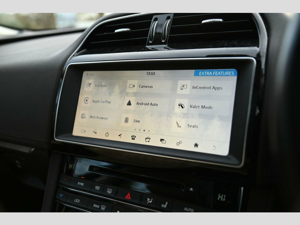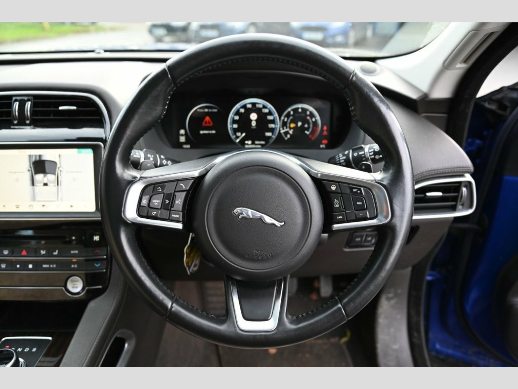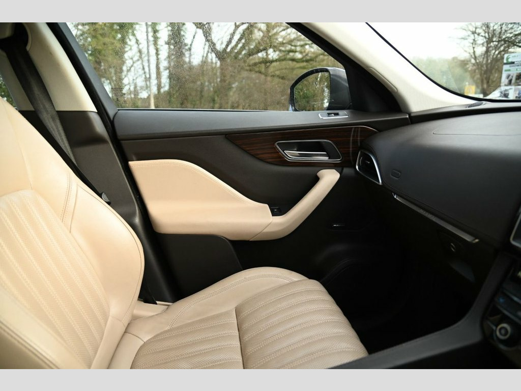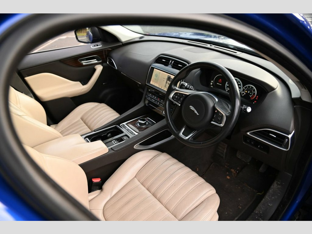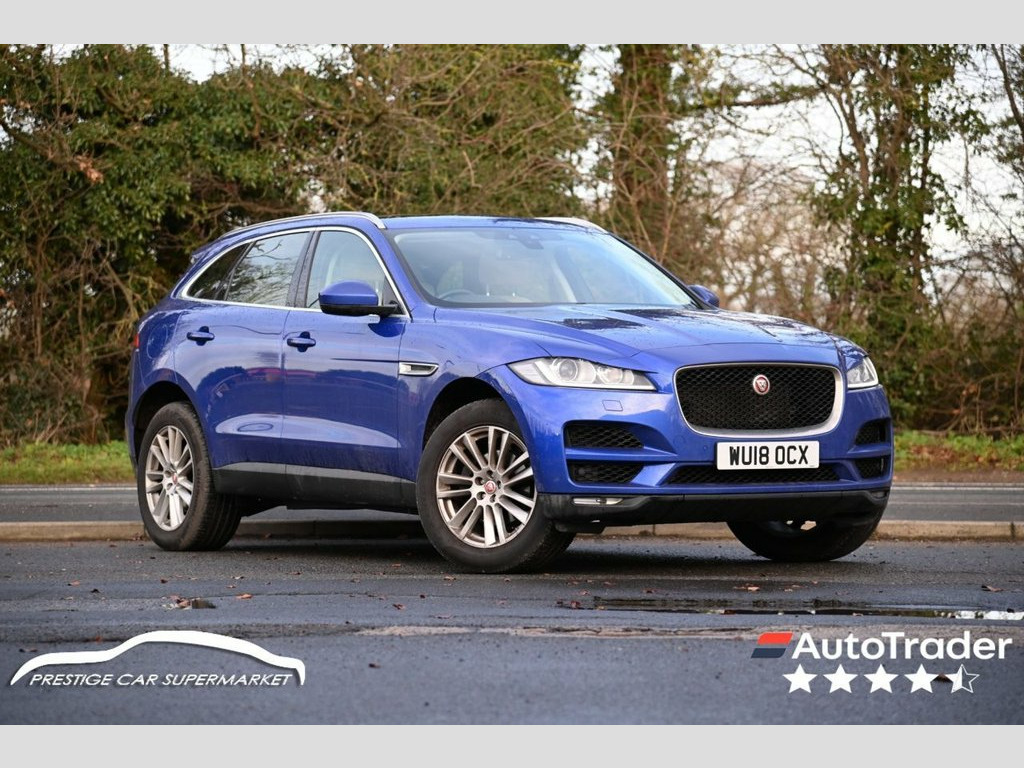 Prestige Car Supermarket in York presents this 2018 Jaguar F-PACE 2.0 P250i Portfolio AWD finished in Caesium Blue with Perforated Windsor Leather upholstery in Latte, offering a refined blend of performance, luxury and all-wheel drive capability. This Portfolio model is equipped with 19in 7 split-spoke alloy wheels, a fixed panoramic roof and full length satin chrome roof rails, giving it a distinctive and premium presence. Inside, the cabin features 10-way electric front seats with heating, a heated steering wheel, dual-zone climate control, ambient interior lighting and a gloss figured ebony veneer finish. Technology highlights include the 8in touchscreen navigation system with InControl Apps, Meridian 380W sound system, DAB radio, Bluetooth connectivity and Wi-Fi hotspot. Driver assistance and safety systems include autonomous emergency braking, traffic sign recognition with intelligent speed limiter, lane departure warning, front and rear parking aid with rear view camera, cruise control with speed limiter and torque vectoring. Practicality is enhanced by a power tailgate, 40-20-40 split folding rear seats, reversible boot floor and rear air vents. Xenon headlights with LED signature lighting, heated front windscreen and keyless entry complete this highly specified and well balanced premium SUV. Heated Steering Wheel, Caesium Blue, Perforated Windsor Leather - Latte-Latte, 10-Way Electric Front Seats, 19in Alloy Wheels - 7 Split-Spoke Style , 2-Zone Climate Control, 25t AWD Badge, 3-Flash Lane Change Indicators, 325mm Front Brakes, 40-20-40 Split Fold Rear Seat, 5in Display with Instrument Panel, ABS - Anti-locking Braking System, AEB - Autonomous Emergency Braking, ASPC - All Surface Progress Control, Airbags - Front Side, Airbags - Full Length Side Window Curtai, Ambient Interior Lighting, Approach Illumination, Auto-Dimming - Power Fold - Heated Door , Auto-Dimming Interior Rear View Mirror, Bluetooth Audio Streaming, Bluetooth Telephone Connectivity, Body-Coloured Rear Bumper wi
