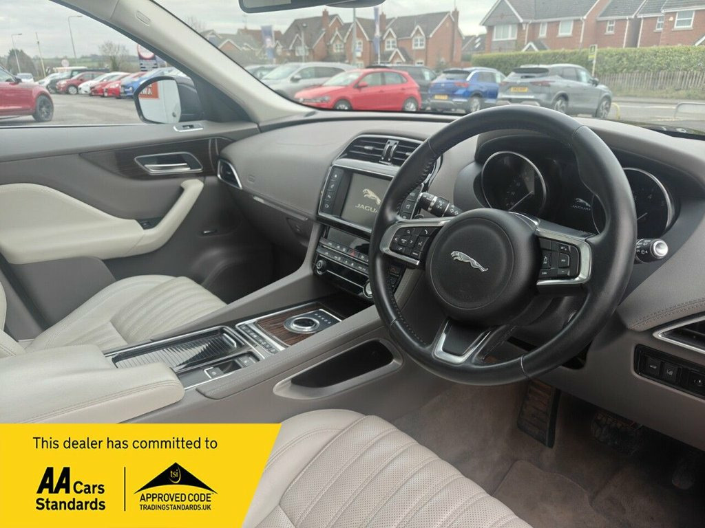 This 2018 Jaguar F-PACE P250i Portfolio is presented with a clear vehicle history check, Two Keys, one former keeper and an excellent service history offering peace of mind for its next owner. This stylish SUV features a 2.0 litre petrol engine paired with a four wheel drive system, ensuring capable performance in various conditions. The Euro 6 emission class means it meets current environmental standards. As a Portfolio trim, it comes equipped with desirable features such as heated front seats for comfort, 2 zone climate control for personalised cabin temperatures, and xenon headlights with a distinctive LED signature for enhanced visibility and a modern look. Keyless entry adds to the convenience of this well appointed vehicle. ========= Specification Navigation System with 8in Touchscreen Rear View Camera Meridian Sound System (380W) Wi-Fi Hotspot Keyless Entry & Push Button Start Power Tailgate / Power Boot Lid 10-Way Electric Front Seats Heated Front Seats & Heated Front Windscreen 2-Zone Climate Control Adaptive Safety Tech – AEB, Lane Departure Warning, Traffic Sign Recognition Bluetooth Audio Streaming & Telephone Connectivity InControl Apps (connected services) Front & Rear Parking Aid Rain Sensing Wipers & Auto-Dimming Mirrors Fixed Panoramic Roof ========= Service history 31/07/2019 - Jaguar - 11630 Miles 14/06/2023 - Jaguar - 32053 Miles 03/06/2024 - Jaguar - 38588 Miles 12/06/2025 - Jaguar - 45518 Miles ========= 10-Way Electric Front Seats, 19in Alloy Wheels - 7 Split-Spoke Style , 2-Zone Climate Control, 25t AWD Badge, 3-Flash Lane Change Indicators, 325mm Front Brakes, 40-20-40 Split Fold Rear Seat, 5in Display with Instrument Panel, ABS - Anti-locking Braking System, AEB - Autonomous Emergency Braking, Airbags - Front Side, Airbags - Full Length Side Window Curtai, Ambient Interior Lighting, Approach Illumination, ASPC - All Surface Progress Control, Auto-Dimming - Power Fold - Heated Door , Auto-Dimming Interior Rear View Mirror, Bluetooth Audio Streaming, Bluetooth Telephone Connectivity, Body-Coloured Rear Bumper with Grained B, Brake Pad Wear Indicator, Centre Console - Side Stowage, Centre C