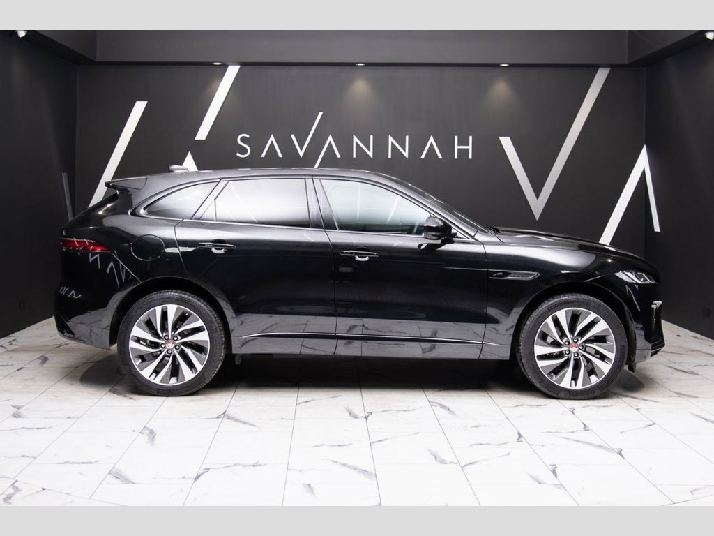 JAGUAR F-PACE 2.0 P250i R-Dynamic SE SUV 5dr Petrol Auto AWD Euro 6 (s/s) (250 ps) is a dynamic blend of performance, luxury, and practicality, finished in sleek Santorini Black and enhanced by the assertive Black Exterior Pack and Privacy Glass. Its striking stance is underscored by a choice of 21-inch Satin Dark Grey alloy wheels with a diamond-turned finish, while a Fixed Panoramic Roof floods the premium Ebony leather interior with natural light. Inside, you'll find 18-way heated electric front sport seats with driver memory, a heated steering wheel, and a full suite of ambient Premium Cabin Lighting. Technology is seamlessly integrated with Pivi Pro Connected, Apple CarPlay and Android Auto, an Interactive Driver Display, and a 3D Surround Camera system. Safety and comfort are assured through features like Blind Spot Assist, Lane Keep Assist, Emergency Braking, and Premium LED Headlights with Signature DRLs. The specification is completed with the R-Dynamic styling pack, metal treadplates, Engine Spin aluminium trim finishers, and Keyless Entry, making this AWD SUV both refined and exhilarating to drive. 21in Alloy Wheels - 10 Spoke - Style 106, Black Exterior Pack, Privacy Glass, Fixed Panoramic Roof, 3D Surround Camera, Perforated Grained Leather - Ebony with , Santorini Black, 18-Way Heated Electric - Driver Memory F, 2-Zone Climate Control, 3 Rear Headrests, 40-20-40 Folding Rear Seats with Centre , ABS - Anti-locking Braking System, Airbags - Front Side, Airbags - Full Length Side Window Curtai, Android Auto, Animated Directional Indicators, Apple CarPlay, Auto High Beam Assist, Auto-Dimming Interior Rear View Mirror, Automatic Headlights, Blind Spot Assist, Brake Pad Wear Indicator, Bright Metal Pedals, Clear Exit Monitor, Cruise Control with Speed Limiter, Digital Audio Broadcast - DA