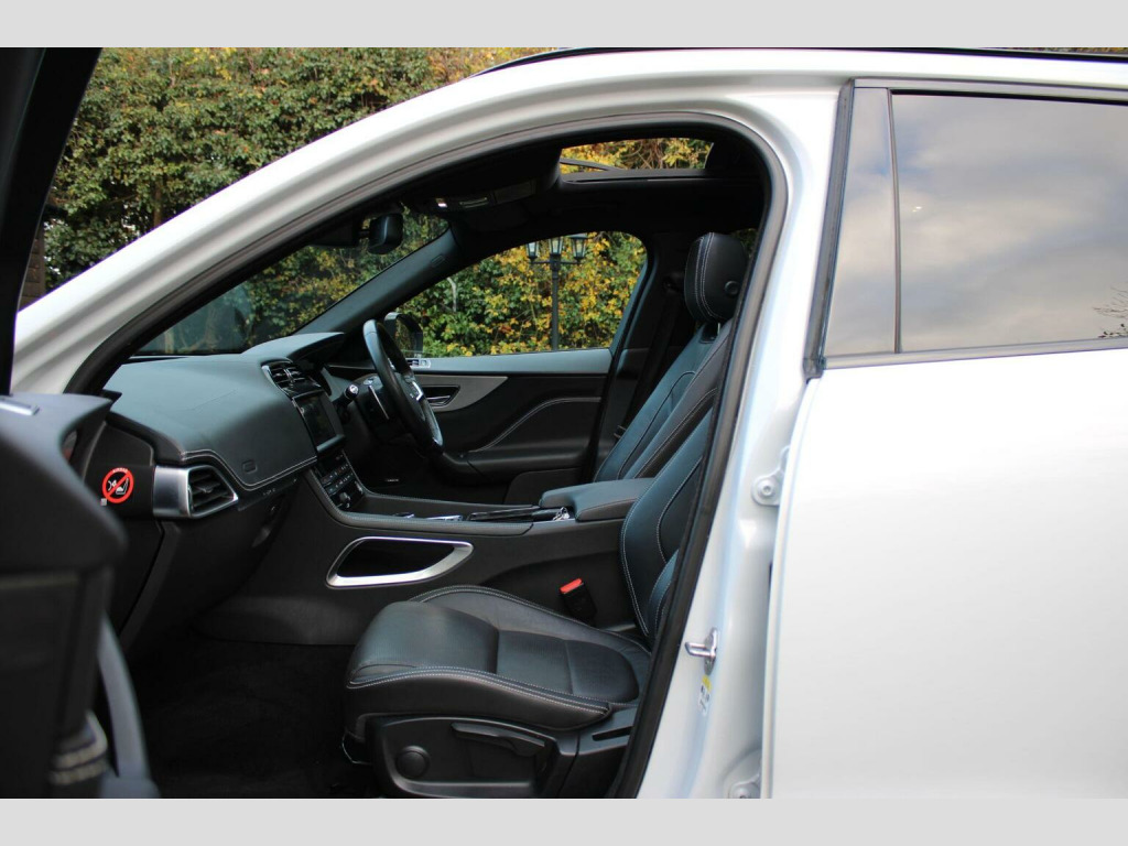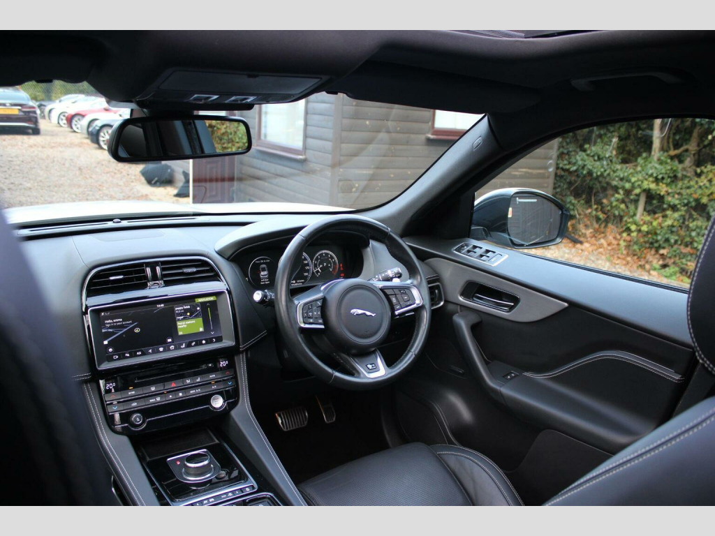 We are delighted to offer this great looking F Pace PETROL automatic yulong white metallic with ebony full leather. Specification includes tilt and slide opening panoramic glass sunroof with retractable sunblind, 10.2 touchscreen sat nav, dab radio, bluetooth, interactive driver display, rear view camera, parking sensors front and rear, climate control, heated seats, cruise control, auto lights, rain sensor, ambient lighting, lane keep assist, folding rear seats, ambient lighting, keyless start, rear privacy glass, power tailgate, space saver spare wheel and 19 alloy wheels. Full Jaguar service history and 2 x keys present. Call or visit our website for a finance quote (subject to status) No admin fees are charged. We specialise in privately owned high specification vehicles and endeavour to buy the best examples of the marques we sell. Old fashioned service with up to date product knowledge. 30 years of successful selling please check out our 5 Star reviews and buy with confidence. We would like to point out Autotraders Price indicator is AI GENERATED and does not take into account many real world factors. We believe it is about selling the best we can which our vast knowledge affords us. Quality is the most important factor not buying the cheapest. As they say cheap today is dear tomorrow.