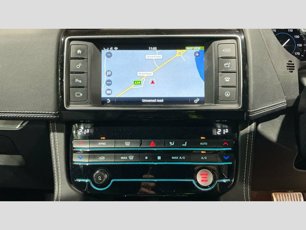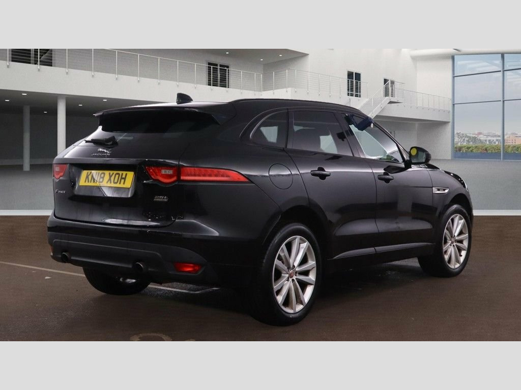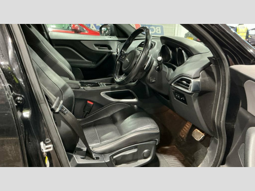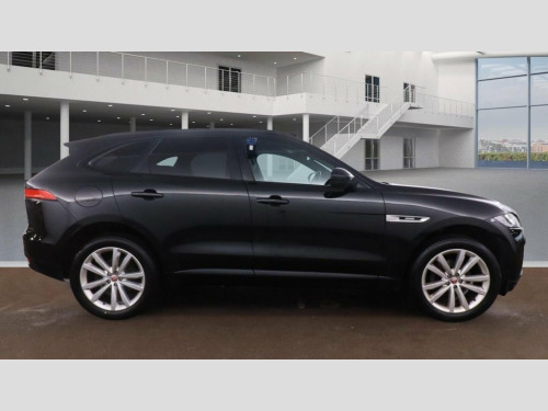 Prestige Car Supermarket in York presents this 2018 Jaguar F-PACE 2.0 P250i R-Sport, a refined AWD petrol SUV delivering 250 ps through a smooth automatic transmission and finished in Santorini Black with R-Sport detailing. It stands confidently on upgraded 20in 5 split-spoke Style 5036 alloy wheels, complemented by gloss black roof rails, gloss black window surrounds, a grained black grille with satin chrome surround, dual tailpipes and privacy glass. The cabin combines sport and comfort with heated sport seats, Luxtec door trims, satin chrome interior finishers, bright metal pedals, an ebony headlining, ambient lighting, a leather R-Sport multifunction steering wheel with satin chrome paddles and a reversible carpet-rubber boot floor. Key technology includes an 8in touchscreen, navigation, Bluetooth audio and telephone connectivity, DAB radio, InControl Apps, Wi-Fi hotspot, a rear-view camera, front and rear parking aids and a power tailgate. Features such as cruise control, 2-zone climate control, approach illumination, automatic wipers, heated mirrors, electric windows with one-touch operation, power child locks and push button start enhance everyday usability. Safety and driving systems include AEB, lane departure warning, traffic sign recognition with intelligent speed limiter, torque vectoring, trailer stability assist, dynamic stability control, EPB with drive-away release, hill launch assist, ABS with EBA, ISOFIX, multiple airbags and tyre pressure monitoring. 20in Alloy Wheels - 5 Split-Spoke Style , Santorini Black, Rear View Camera, Privacy Glass, 2-Zone Climate Control, 25t AWD Badge, 3-Flash Lane Change Indicators, 325mm Front Brakes, 40-20-40 Split Fold Rear Seat, 5in Display with Instrument Panel, 8-Way Manual Front Seats, ABS - Anti-locking Braking System, AEB - Autonomous Emergency Braking, ASPC - All Surface Progress Control, Airbags - Front Side, Airbags - Full Length Side Window Curtai, Ambient Interior Lighting, Approach Illumination, Auto-Dimming Interior Rear View Mirror, Bluetooth Audio Streaming, Bluetooth Telephone Connectivity, Brake Pad Wear Indicator, Bright Metal Pedals, Centre Console - Side Stowage, Centre Console - Storage