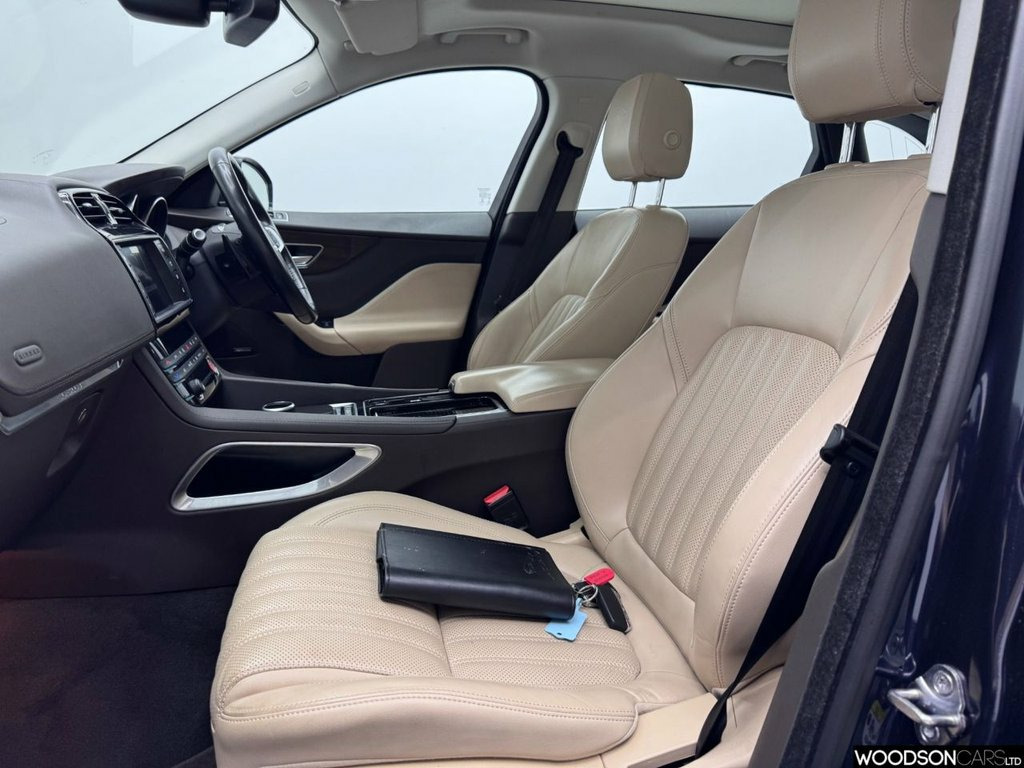 Finance Soft Search Pre Approval. This 67 plate Jaguar F-Pace 2.0 P300 Petrol Portfolio Auto AWD Euro 6 (300bhp) has covered 53000 miles in metallic blue with cream leather interior. Serviced at 12k, 25k, 45k, 50k, 53k. Pan roof, bluetooth, reverse camera, xenon lights, DAB radio. parking sensors, isofix + much more. *MAIN DEALER PART EXCHANGE* Warranty included. VOSA Mileage History Checked and HPI Clear. Vehicle has received an independent health check with report ++ Any inspection is more than welcome ++ Nationwide Delivery Service Available ++ Credit/Debit Card Accepted ++ Approved Finance Partner with Consumer Credit Licence ++ Call/Message anytime including evenings ++ Facetime/Video Call Available Around Your Schedule ++ Warranty Included. Late Night Appointments Available. Woodson Cars, Manchester. 01618509848 (For Sat Nav use Postcode M44 5AH) Touch Pro Navigation Pack with Meridian , 10in Touch Pro Dual View, Activity Key, Cold Climate Pack, Sliding Panoramic Roof, 19in Alloy Wheels - 5 Spoke Style 5037 -, 19in Alloy Wheels - 5 Split-Spoke Style , 10-Way Electric Front Seats, 19in Alloy Wheels - 7 Split-Spoke Style , 2-Zone Climate Control, 3-Flash Lane Change Indicators, 30t AWD Badge, 350mm Front Brakes, 40-20-40 Split Fold Rear Seat, 5in Display with Instrument Panel, ABS - Anti-locking Braking System, AEB - Autonomous Emergency Braking, ASPC - All Surface Progress Control, Airbags - Front Side, Airbags - Full Length Side Window Curtai, Ambient Interior Lighting, Approach Illumination, Auto-Dimming - Power Fold - Heated Door ,