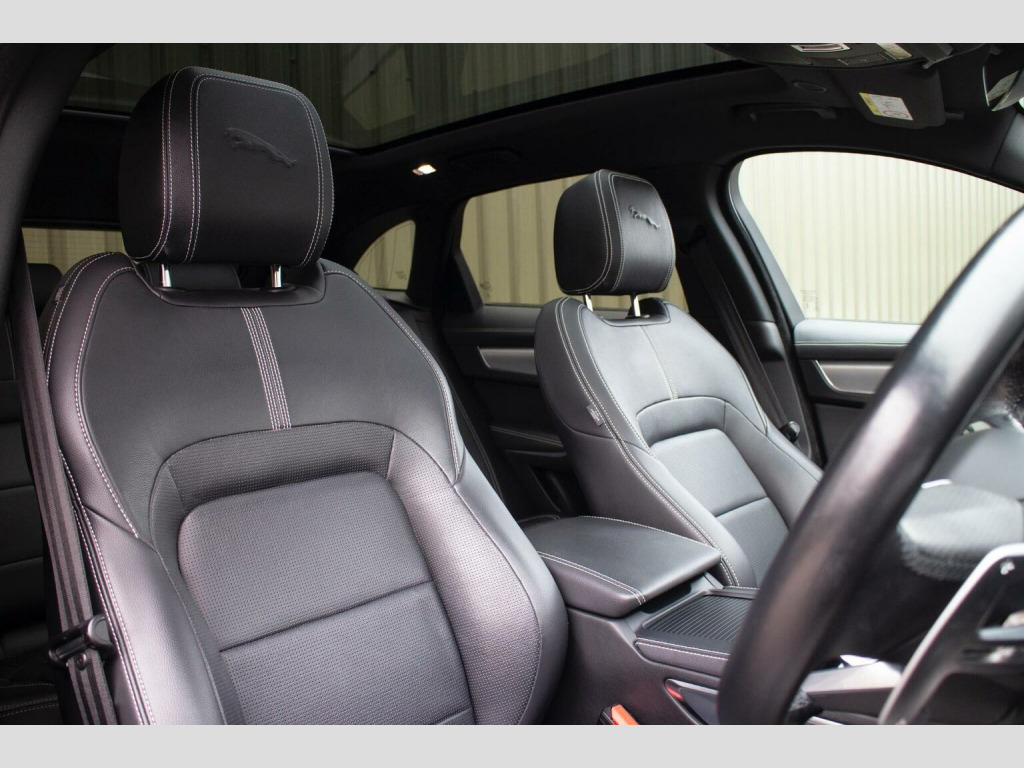 RARE 3.0 D300 MHEV R-DYNAMIC - PANORAMIC GLASS ROOF - BLACK DESIGN PACK -Presented in Eiger Grey Metallic with Ebony hide interior, this 2021 21 registered Jaguar F-Pace epitomises refined sophistication and dynamic capability. Having covered a mere 52,000 miles from new with only one previous custodian, this immaculate, high specification example offers an unparalleled motoring experience. This exceptional R-Dynamic SE boasts an array of premium features, ensuring an opulent yet exhilarating drive. Its commanding presence is accentuated by the 20 gloss black alloy wheels with red brake callipers, while the full glass panoramic roof floods the cabin with natural light. The R-Dynamic Black Exterior Package enhances its bold, sporting aesthetic, perfectly complemented by Matrix LED headlights with signature daytime running lights. Inside, the cabin is a sanctuary of luxury and innovation. The Meridian 3D surround sound system delivers an immersive audio experience, while the 14-way electrically adjustable heated front seats with memory function ensure supreme comfort tailored to perfection. Cutting edge technology includes the 3D surround view camera system, Apple CarPlay and Bluetooth connectivity, allowing for seamless integration and effortless control. Driving confidence is enhanced with advanced safety and assistance features, including Blind Spot Assist, Rear Traffic Monitor, Lane Keep Assist, and Terrain Response with Dynamic Program, ensuring unwavering stability and adaptability in all conditions. Further refinements include dual zone automatic climate control, heated power folding mirrors with approach lights, traffic sign recognition, adaptive speed limiter and trailer stability assist. Presented in exemplary condition, this F-Pace is a true testament to Jaguars ethos of cutting edge technology and timeless luxury. ****VIEWING STRICTLY BY APPOINTMENT ONLY - FOR FURTHER INFORMATION REGARDING THIS VEHICLE AND ANY OTHER PREMIUM MARQUE IN STOCK, PLEASE CALL SALES DIRECT. VEHICLE FINANCE SPECIALISTS OFFERING COMPETITIVE PACKAGES AND PART EXCHANGE PRICES****