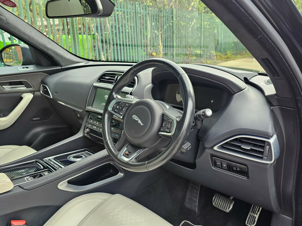 This 2016 Jaguar F-Pace 3.0 D300 V6 First Edition SUV with 80549 miles on the clock is a sleek and powerful diesel vehicle that is ULEZ compliant and ready to tackle any terrain. With 5 seats and 5 doors, this SUV is perfect for families or those with an adventurous spirit. The MOT expires on 16/09/2026, giving you peace of mind. Packed with features such as 12V power sockets in the front, rear, and row two, as well as a 380 Watt sound system, this Jaguar F-Pace is as luxurious as it is capable. The 3 Month Trial Data Plan ensures that you stay connected on the go, making this SUV the perfect combination of style, comfort, and performance.UK delivery available.Part exchange welcome.AA extended warranty partner.AA standards approved dealership.Trading standards approved dealership.Autotrader highly rated dealership. v power socket - front, 12v power socket - rear - luggage compartment, 12v power socket - row two, 3 month trial data plan, 380 watts, 60gb solid state drive, 825 watts, am-fm radio, additional usb socket - replaces aux in, aux-in - 3.5mm, bluetooth audio streaming, bluetooth telephone connectivity, dab radio + and dmb, dynamic route guidance, dynamic volume control, hdmi x1, incontrol - pro services, incontrol - remote esstentials, incontrol apps, incontrol protect, incontrol remote premium, incontrol touch pro ssd navigation, incontrol wifi, instrument cluster - full 12.3in tft, meridian digital surround sound system - 825w, single cd-dvd player, speakers x16, start up sequence, subwoofer, text to speech, touch screen - 10in capacitive screen, usb socket - row two - x2, 2-zone climate control, 3-flash lane change indicators, 40-20-40 split fold rear seat, auto-dimming interior rear view mirror, bright metallic sports pedals, centre console - side stowage, centre console - storage surround finishers - satin chrome, configurable ambient interior lighting - variable colours, configurable interior mood lighting, dark hex aluminium instrument panel finisher, door armrest - windsor, door trim - windsor, driver and front passenger sun visors with illuminated vanity mirrors, finishers - gloss black trim with houndstooth pattern, first edition - carpet mats - jet, fold flat 6 degrees - row 2 seats, front armrest with storage compartment, front courtesy footwell lights, front headrests - s branded embossing, front and rear map lights, gesture tailgate, glove compartment lockable, glovebox - illumination, glovebox finisher with jaguar wordmark, head restraint - rear centre, headlining - suedecloth - jet, headrest - manual adjustable, heated front seats, illuminated metal treadplates with jaguar script and metal loadspace scuff plate, instrument panel topper - cuir grain wrapped, instrument panel upper fascia - jet, interior front door handles with separate locking switches, jaguar smart key system with keyless start, jaguarsense - overhead light console, loadbay - premium luggage tie downs, loadspace scuff plate - metal - illuminated with jaguar script, luggage compartment - led, luggage rails in boot floor, passive front head restraints - whiplash protection, powered tailgate, rain sensing windscreen wipers, rear armrest with cupholder, rear cup holders in armrest, rear footwell lighting, reversible boot floor - carpet-rubber, row 2 air vents, satin chrome frame - touchscreen, seat - cushion height - electric, seat - cushion tilt - electric, seat - squab recline - electric, seat occupant detector - passenger, seats - electric recline - rear, seats - front - back map pockets, seats - front 10x10 way - electric adjustment, seats - front height adjustable - electric, seats - sports, shopping bag hook in trunk, steering column - reach and rake, steering wheel - multi-function, steering wheel - s branded sport style softgrain leather with satin chrome highlight, steering wheel - satin chrome paddles, sunglasses holder in overhead console, twin front cupholders with cover, valet mode, valet mode - lockable trunk - stowage - glove box, variable intermittent wipers, white downlighters - front, 22in alloy wheels - double helix 15-spoke - grey finish with dark inserts, body coloured s door claddings with satin chrome finishers, bootlid - badging - s awd, bootlid jaguar leaper and wordmarque, bootlid nameplate badge, bumper outer grille bezel - satin chrome, bumper outer grille mesh - grained black, centre lower valence - satin silver, diffuser - satin silver, door mirrors - body coloured, door mirrors - power folding with auto-dimming-signature approach lamps and blacked side repeaters, dual tailpipes with 84mm finishers, electric windows - front and rear with one-touch open-close and anti-trap, front grille badge - s, gloss black rear valance, gloss black side power vents, heat insulating glass - green all-round, heated front windscreen, heated washer jets, panoramic roof, privacy glass, radiator grille - gloss black insert with satin chrome surround, rear bumpers with corners - body coloured - s, red brake calipers, roof rails - gloss black, s front bumper, side window finisher - gloss black, space saver spare wheel - steel, vertical air curtains - gloss black, windscreen - heated with timer, 360 degree parking aid, adaptive dynamics with configurable dynamic mode, brake pad wear indicator, configurable dynamics, cruise control with adaptive speed limiter, eco data, front parking aid, head-up display, head-up display pack, jaguar sequential shift, jaguardrive control with dynamic - normal - eco and winter, jaguarvoice, lane departure warning, outside temperature gauge, park assist - parallel parking, power steering - speed sensitive, rear parking aid, rear view camera, torque vectoring by braking - tvbb, traffic sign recognition with intelligent speed limiter, trip computer, tyre pressure monitoring system, voice dictation, abs - anti-locking braking system, aeb - autonomous emergency braking, aspc - all surface progress control, activity key, airbags - driver, airbags - front side, airbags -
