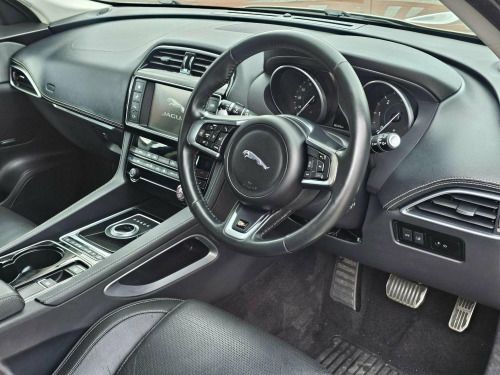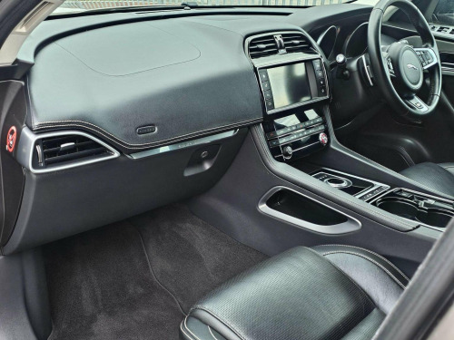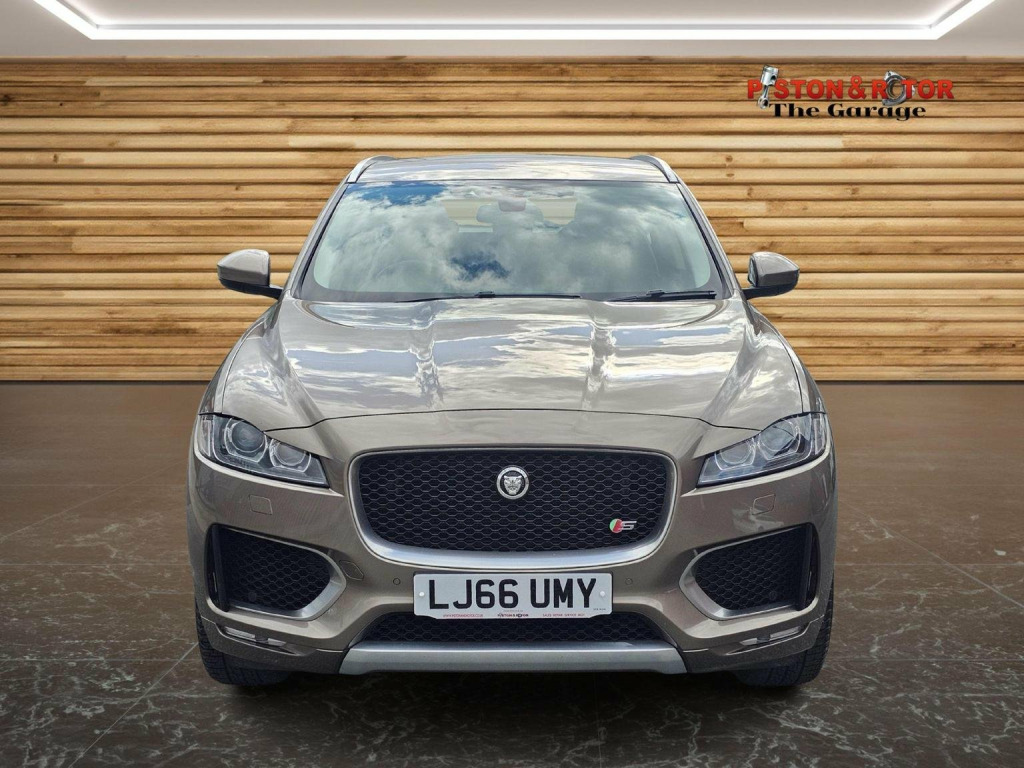 THIS GREAT LOOKING, GREAT CONDITION AND SUPER-COMFORTABLE JAGUAR F-PACE IS PRESENTED IN QUARTZITE BRONZE WITH CHROME ACCENTS COMPLEMENTED BY SILVER 5-SPOKE 18 INCH ALLOY WHEELS. THE RELIABLE, POWERFUL AND ECONOMICAL 3.0D ENGINE IS CONNECTED TO A SMOOTH AUTOMATIC GEARBOX MAKING FOR EASY, SMOOTH TOWN AND B ROAD DRIVING IN ALL WEATHERS THANKS TO THE ALL WHEEL DRIVE SYSTEM, PLUS THE CAR HAS IMPRESSIVE AND QUIET MOTORWAY CRUISING ABILITIES! INSIDE THE SUPPORTIVE AND COMFORTABLE BLACK LEATHER SEATS (FRONT HEATED) ARE COMPLEMENTED BY CHROME, SILVER AND BLACK HIGHLIGHTS TO THE CABIN WHICH IS FULLY EQUIPPED, WITH FEATURES INCLUDING A LARGE COLOUR TOUCHSCREEN WITH SAT-NAV, A 380 WATT MERIDIAN SOUND SYSTEM WITH DAB/DMB RADIO, BLUETOOTH TELEPHONE AND STREAMING, FRONT AND REAR PARKING SENSORS PLUS REVERSING CAMERA, HEATED WINDSCREEN, AUTO CLIMATE CONTROL & AUTO LIGHTS AND WIPERS PLUS KEYLESS ENTRY AND DRIVE. FURTHER EQUIPMENT INCLUDES AUTO-DIMMING REARVIEW MIRROR, AMBIENT INTERIOR LIGHTING, ENHANCED BRAKING SYSTEM, POWERED TAILGATE AND MORE. THERE ARE ALSO A RAFT OF IMPRESSIVE SAFETY FEATURES INCLUDING LANE DEPARTURE WARNING, AUTONOMOUS EMERGENCY BRAKING WITH EVEN MORE TO BE DISCOVERED. WE HAVE FULLY INSPECTED AND SERVICED THIS CAR, SO THE ONLY ISSUE FOR ITS NEW OWNER WILL BE WHERE THE NEXT TRIP SHOULD BE. PLEASE CALL 0161 761 3452 (OPTION 2) TO ARRANGE A VIEWING, TO RESERVE THE CAR OR FOR MORE INFORMATION. WHILST EVERY EFFORT HAS BEEN MADE TO ENSURE THAT THE STATED SPECIFICATION IS ACCURATE, PLEASE CHECK WITH A MEMBER OF THE SALES TEAM IF A PARTICULAR SPECIFICATION/FEATURE IS IMPORTANT TO YOU.