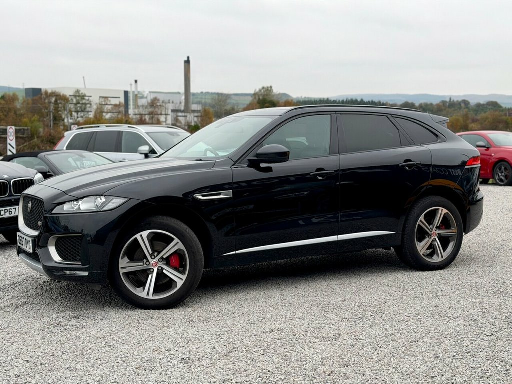 2017 (67) Jaguar F-PACE 3.0 D300 V6 S AWD AUTO West Coast Motors are delighted to offer this stunning 2017 (67) Jaguar F-PACE 3.0 D300 V6 S AWD, finished in metallic Santorini Black with full black leather interior and 20in alloys with red brake calipers. This example has covered just 56k miles from new, it's clearly been well looked after and drives every bit as good as it looks. Powered by the 3.0-litre V6 twin-turbo diesel producing 300bhp through an 8-speed automatic gearbox and intelligent AWD system, this F-PACE delivers great performance with surprising efficiency and refinement. Loaded with spec including sliding panoramic roof, 18-way electric memory sports seats, heated front and rear seats, heated steering wheel, Lane Keep Assist, Driver Condition Monitor, privacy glass, and gloss black detailing. Other highlights include Meridian sound system, rear-view camera, ambient lighting, sat nav, keyless entry, electric tailgate, dual-zone climate, DAB, cruise control, and Jaguar's DNA drive modes with adaptive dynamics. Lovely condition throughout with good service history present and a major Jaguar service including timing belt and all fluids carried out last year. Two keys, great tyres and brakes, ready to go. 2 keys supplied, 2 previous owners 3 months Warranty as standard Part exchange welcome Low rate finance available Debit/credit cards accepted AA breakdown cover included 01294 443333 www.wcmotors.co.uk Santorini Black, Lane Keep Assist and Driver Condition Mo, Heated Front and Rear Seats, Heated Steering Wheel, 18 Way Sports Seats with Driver Memory a, Privacy Glass, Sliding Panoramic Roof, 10-Way Electric Front Seats, 2-Zone Climate Control, 20in Alloy Wheels - 5 Spoke Style 5035 w, 3-Flash Lane Change Indicators, 350mm Front Brakes, 40-20-40 Split Fold Rear Seat, 5in Display with Instrument Panel, ABS - Anti-locking Braking System, AEB - Autonomous Emergency Braking, ASPC - All Surface Progress Control, Adaptive Dynamics, Airbags - Front Side, Airbags - Full Length Side Window Curtai, Ambient Interior Lighting, Approach Illumination, Auto-Dimming - Power Fold - Heated Door , Auto-Dimming