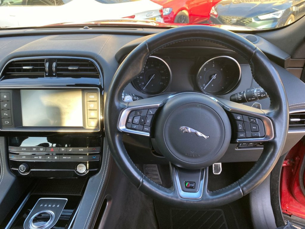 One Private Owner. This Jaguar F-Pace S AWD 300 BHP 5DR SUV is finished in Firenze Red with Black Heated Leather electric seats and heated steering wheel, along with Two tone 20" Alloy wheels with red calipers and spare wheel. It is fitted with power steering, Meridian Sound system, Touch Screen Jag Satellite Navigation, Bluetooth, Reverse Camera, LED Day Lights, Bi Xenon lights, automatic gearbox with paddle shift option, electric windows and power fold mirrors and tailgate, dual climate control, cruise control, speed limiter, speed limit display, telephone, Splash Guards front and rear, DAB/ USB with Aux port and more. It comes with a full service history from Jaguar and Jaguar specialist done at 11079/20152/30343/38997/50448/58650/70267/71584 (Cambelt) and 80968 miles. The Mot runs till March, we will supply this car with 12 months MOT (free from Advisory notice) if required, a service along with 12 months RAC Insured warranty. Finance and extended warranties are available. This 1 Private owner F-Pace is beautiful throughout, has not been smoked in. It offers executive 4x4 motoring and will be an excellent tow vehicle. 10-Way Electric Front Seats, 2-Zone Climate Control, 20in Alloy Wheels - 5 Split-Spoke Style , 20in Alloy Wheels - 5 Spoke Style 5035 w, 3-Flash Lane Change Indicators, 350mm Front Brakes, 40-20-40 Split Fold Rear Seat, 5in Display with Instrument Panel, ABS - Anti-locking Braking System, Adaptive Dynamics, AEB - Autonomous Emergency Braking, Airbags - Front Side, Airbags - Full Length Side Window Curtai, Ambient Interior Lighting, Approach Illumination, ASPC - All Surface Progress Control, Auto-Dimming - Power Fold - Heated Door , Auto-Dimming Interior Rear View Mirror, Bluetooth Audio Streaming, Bluetooth Telephone Connectivity, Brake Pad Wear Indicator, Bright Metal Pedals, Centre Console