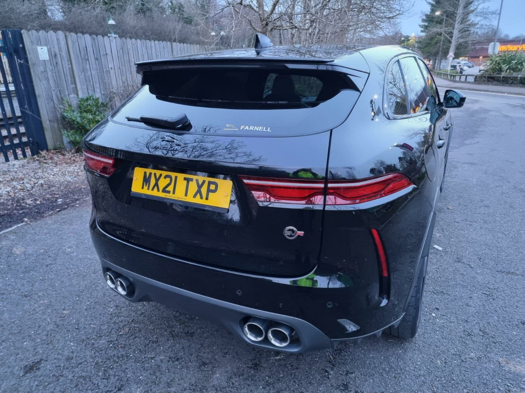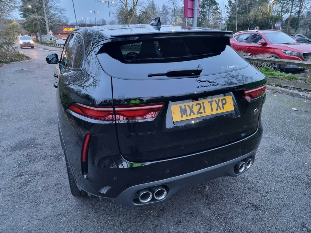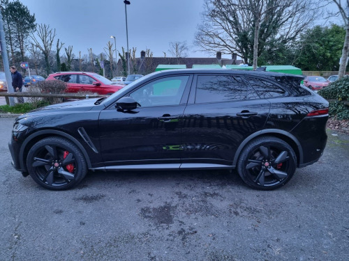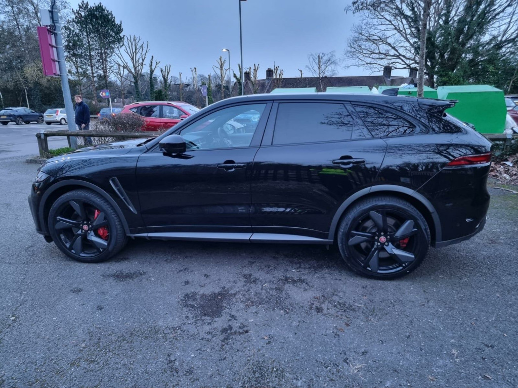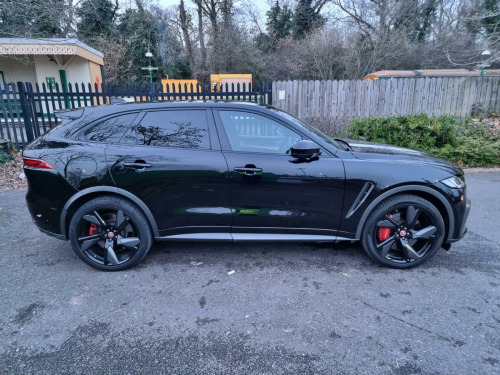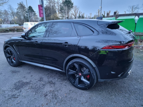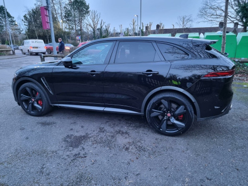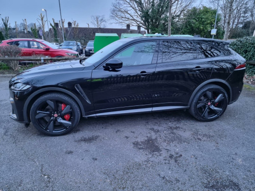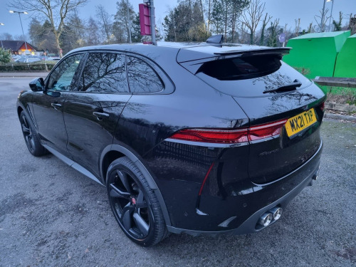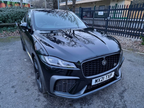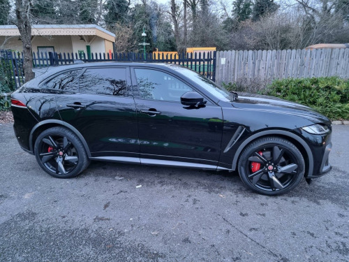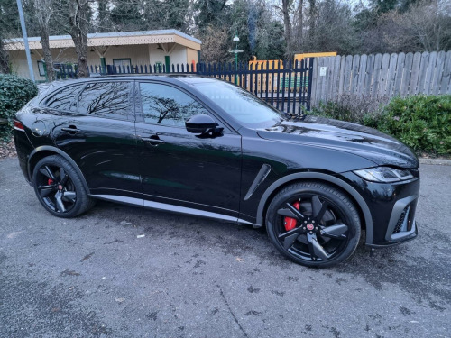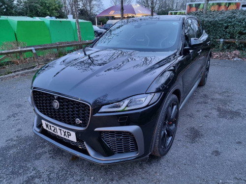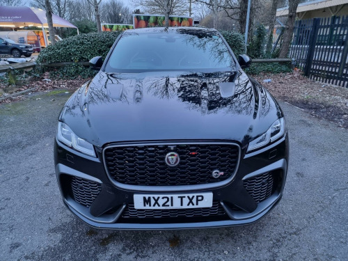 This 2021 Jaguar F-PACE P550 V8 SVR boasts exceptionally low mileage for its age, having covered just 23,941 miles, and comes with an 18 month warranty and 12 months MOT for your peace of mind. This Euro 6 compliant, four wheel drive model is powered by a potent 5.0 litre petrol engine, delivering exhilarating performance. Its SVR trim level ensures a premium experience, complemented by features such as Premium LED Headlights with Signature DRL, Keyless Entry, and 2-Zone Climate Control. The spacious boot offers ample room for all your needs, and with a towing weight of 2400 kg, it's ready for adventure. Full service history further underlines its excellent provenance.Experience the thrill of rapid acceleration, reaching 0-60mph in a mere 3.8 seconds, a testament to the F-PACE SVR's performance capabilities, setting it apart from many other vehicles. Practicality is also a strong suit, with Front and Rear Parking Aid including parking assistance sensors making manoeuvring effortless. Inside, the 40-20-40 SVR Folding Heated Rear Seats with a centre armrest provide comfort and versatility for passengers, ensuring journeys are enjoyable for everyone.just been serviced at jaguar in touch pro, 11.4in touchscreen, 14-way heated and cooled electric memory performance front seats, 2-zone climate control, 21in alloy wheels - 5 split-spoke style 5080 - satin technical grey with contrast diamond turned finish, 21in alloy wheels - 5 split-spoke style 5080 with diamond turned finish, 3 rear headrests, 3-flash lane change indicators, 360 degree parking aid, 395mm front and rear brakes, 3d surround camera, 40-20-40 svr folding heated rear seats with centre armrest, abs - anti-locking braking system, aspc - all surface progress control, adaptive cruise control, adaptive dynamics, air distribution speed, airbags - front side, airbags - full length side window curtain, ambient interior lighting, android auto, animated directional indicators, apple carplay, approach illumination, auto high beam assist, auto-dimming interior rear view mirror, automatic headlights, blind spot assist, bluetooth connectivity, bluetooth streaming, body coloured roof, brake pad wear indicator, bright metal pedals, cabin lighting, centre console - storage surround finishers - satin chrome, centre console with armrest, clear exit monitor, configurable dynamics, dark satin grey bonnet louvres, dark satin grey front fender grille, digital audio broadcast - dab - radio, driver condition monitor, dynamic stability control - dsc, dynamic volume control, eba - emergency brake assist, eco driving style assistant, epas - electric power assisted steering, epb - electronic parking brake, ebony suedecloth headlining, electric windows - front and rear with one-touch open-close and anti-trap, electronic active differential with torque vectoring by braking, embossed aluminium trim finisher, emergency braking, f-pace badge, front airbags with passenger seat occupant detector, front door storage space, front and rear parking aid, front and rear wheel arch spats, gloss black grille with satin grey surround, gloss black side window surround, glovebox finisher with jaguar script, green tinted glass, headlight power wash, heated - electric - power fold memory door mirrors with approach lights and auto-dimming driver side, heated front windscreen, heated rear window, heated steering wheel, hill launch assist, hook or hooks in loadspace, isofix rear, incontrol apps, interactive driver display, interior front door handles with separate locking switches, jaguar script and leaper, jaguar tyre repair system, jaguardrive control, keyless entry, led tail lights, lane keep assist, lockable glovebox, luggage tie downs in loadspace, meridian sound system, metal loadspace scuff plate, metal treadplates with svr branding, mist sensing, navigation pro, online pack with data plan, outside temperature gauge, overhead lighting console, overhead stowage for sunglasses, passive front head restraints, performance style individual rear seats for outer positions, pivi pro connected, power operated child locks, powered tailgate - boot lid, premium led headlights with signature drl, pro services and wi-fi hotspot, push button start, quad tailpipes with 95mm finishers, rain sensing windscreen wipers, rear air vents, rear armrest with twin cupholders, rear camera, rear collision monitor, rear door storage space, rear fog lights, rear metal treadplates, rear traffic monitor, red brake calipers, remote, remote premium, sv exterior pack, svr badge, svr body-coloured door claddings with satin grey finishers, svr front bumper with lower meshes, svr front fender with functional vents, svr leather steering wheel, svr lower valance - splitter, svr luxury carpet mats, svr vented bonnet, satin chrome gearshift paddles, satin chrome touchscreen surround, satin grey side power vents, seat belt reminder, seats - performance, secure tracker (12 month subscription from new), shopping bag hook, speed proportional steering, sportshift selector, start up sequence with movement - dials and lighting, steering column - electrically adjustable, steering wheel - multi-function, sunvisors with illuminated vanity mirrors, switchable active sports exhaust, torque vectoring by braking - tvbb, traffic sign recognition with adaptive speed limiter, trailer stability assist, twin front cupholders, tyre pressure monitoring system, valet mode, variable intermittent wipers, voice control, ipod integration