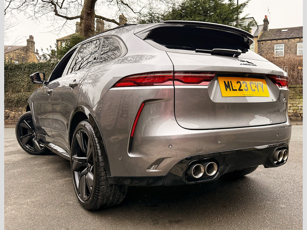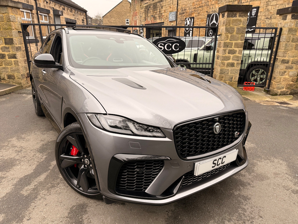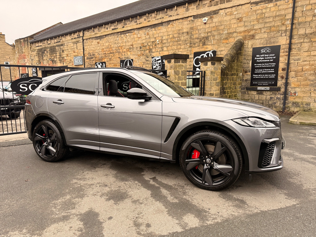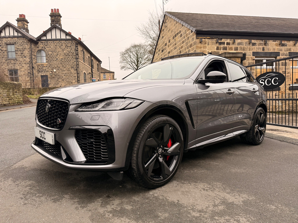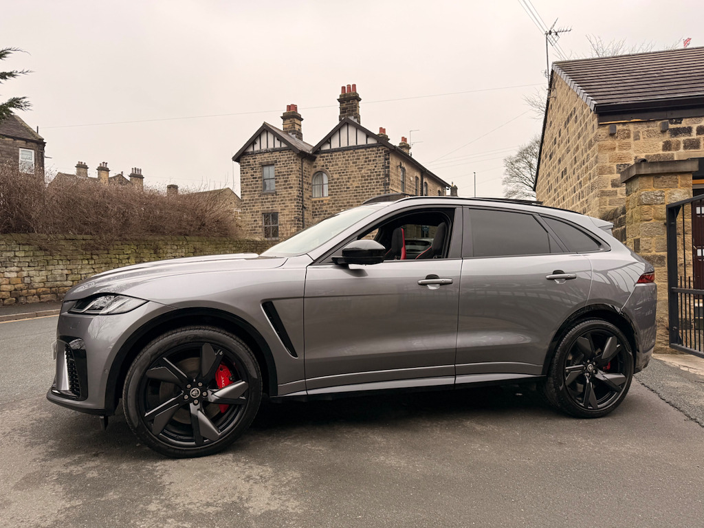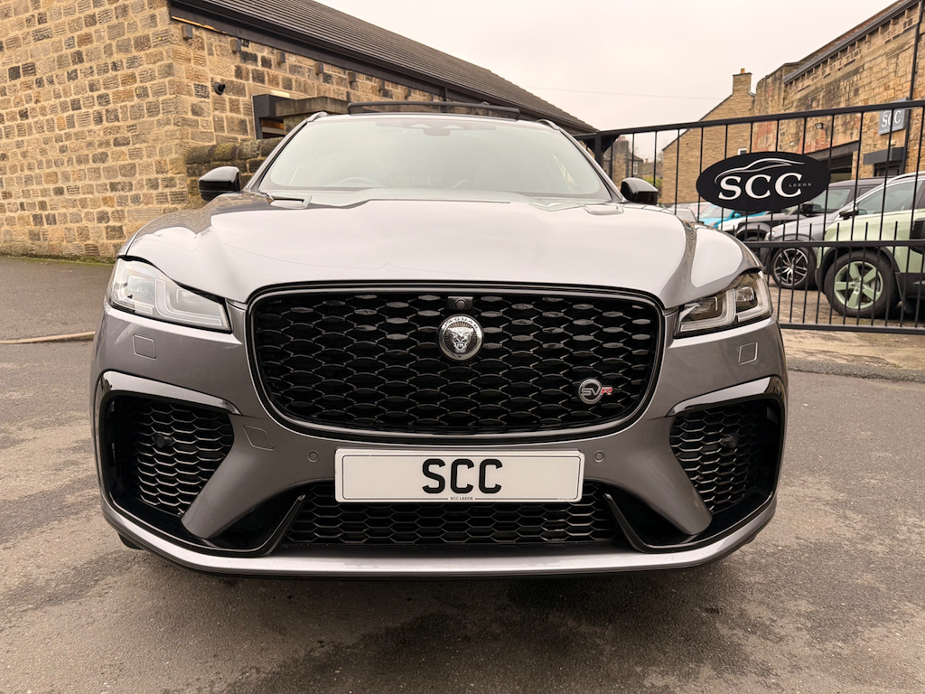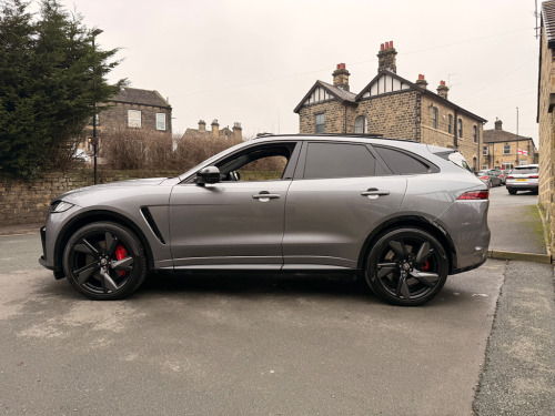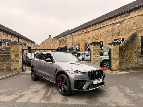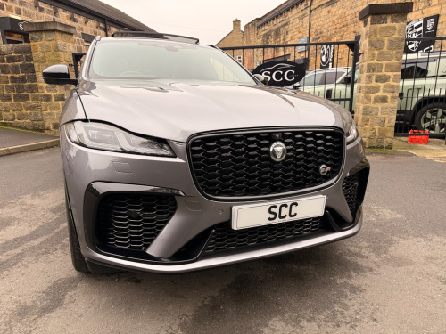 2023 Jaguar F-PACE – Stunning, 1 Single-Owner, High-Performance SUV Introducing our stunning 2023 Jaguar F-PACE - combining jaw-dropping blistering performance, advanced technology, and luxury in one exceptional SUV. Powered by a 5.0L engine delivering 542 BHP, it rockets from 0–62 mph in just 3.8 seconds, offering sports-car thrills with the practicality of an SUV. Travel in style with the stunning Eiger grey body shell with gloss black styling elements and the sumptous and special Leather and Suedecloth interior. Featuring Performance Seats in Ebony Suedecloth and Mars Red Windsor Leather, combining comfort, support, and head-turning design. Panroof model - highly desirable Luxury and technology are perfectly balanced: Heated Seats Heated steering wheel 360 surround view camera Apple Carplay and Android Auto Meridian Sound System – crystal-clear, immersive audio Traffic Sign Recognition with Adaptive Speed Limiter – stay informed and drive safely Rear Traffic Monitor – enhanced confidence when reversing Ownership & Service History: Single-owner from new Full Jaguar dealer history with 4 visits Major service already completed. Last serviced 01.2026 at 46991 by Jaguar Manchester Whether navigating city streets or cruising the motorway, the F-PACE delivers speed, safety, and sophistication on every journey. This 2023 Jaguar F-PACE is a rare opportunity—immaculate, fully serviced, and ready to impress. Book your test drive today or call 01943 884551 to experience this exceptional SUV for yourself. 14-Way Heated and Cooled Electric Memory Performance Front Seats,2-Zone Climate Control,22in Alloy Wheels - Forged - 5 Split-Spoke Style 5117 - Gloss Black with Satin Technical Grey Insets,3 Rear Headrests,3D Surround Camera,40-20-40 SVR Folding Heated Rear Seats with Centre Armrest,ABS - Anti-locking Braking System,Adaptive Cruise Control with Steering Assist,Adaptive Dynamics,Airbags - Front Side,Airbags - Full Length Side Window Curtain,Android Auto,Animated Directional Indicators,Apple CarPlay,Auto High Beam Assist,Auto-Dimming Interior Rear View Mirror,Automatic Headlights,Black Exterior Pack,Blind Spot Assist,Brake Pad Wear Indicator,Bright Metal Pedals,Configurable Dynamics,Digital Audio Broadcast - DAB - Radio,Driver Condition Monitor,Dynamic Stability Control - DSC,EBA - Emergency Brake Assist,EPAS - Electric Power Assisted Steering,EPB - Electronic Parking Brake,Ebony Suedecloth Headlining,Electric Windows - Front and Rear with One-Touch Open-Close and Anti-Trap,Electronic Active Differential with Torque Vectoring by Braking,Embossed Aluminium Trim Finisher,Emergency Braking,Fixed Panoramic Roof,Front Airbags with Passenger Seat Occupant Detector,Front and Rear Parking Aid,Headlight Power Wash,Heated - Electric - Power Fold Memory Door Mirrors with Approach Lights and Auto-Dimming Driver Side,Heated Front Windscreen,Heated Steering Wheel,ISOFIX Rear,Illuminated Metal Treadplates with Brand-Name Script,Interactive Driver Display,Keyless Entry,Lane Keep Assist,Lockable Glovebox,Meridian Sound System,Online Pack with Data Plan,Passive Front Head Restraints,Pivi Pro Connected,Power Operated Child Locks,Powered Tailgate - Boot Lid,Premium Cabin Lighting,Premium LED Headlights with Signature DRL,Privacy Glass,Push Button Start,Rear Collision Monitor,Rear Fog Lights,Rear Traffic Monitor,Red Brake Calipers,Remote,SV Exterior Pack,SVR Badge,SVR Front Bumper with Lower Meshes,SVR Front Fender with Functional Vents,SVR Leather Steering Wheel,SVR Lower Valance - Splitter,SVR Luxury Carpet Mats,SVR Vented Bonnet,Seat Belt Reminder,Secure Tracker (12 Month Subscription From New),Speed Proportional Steering,Steering Column - Electrically Adjustable,Summer Tyres,Switchable Active Sports Exhaust,Traffic Sign Recognition with Adaptive Speed Limiter,Trailer Stability Assist,Tyre Pressure Monitoring System,Wireless Device Charging,Eiger Grey,Leather and Suedecloth - Ebony Suedecloth-Mars Red Windsor Leather - Performance Seats with Ebony-Mars Red Interior,Gloss Black Roof Rails,Meridian Surround Sound System