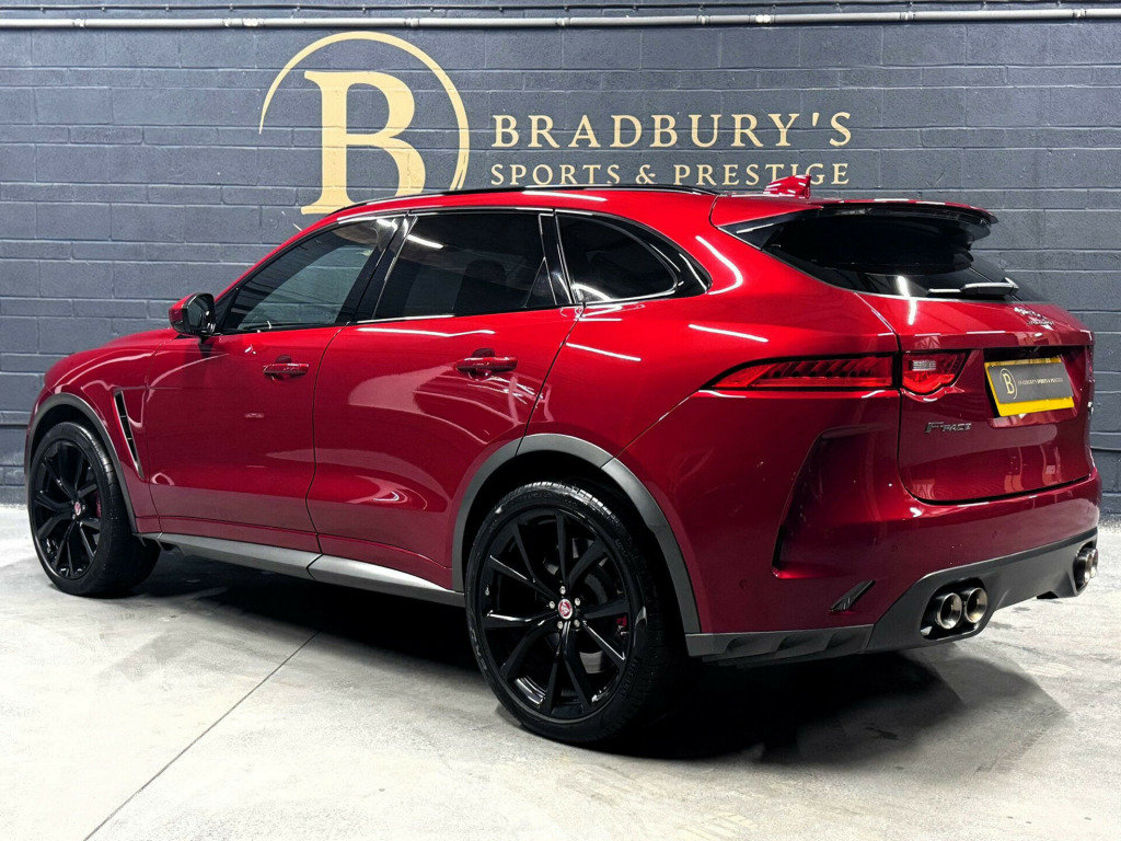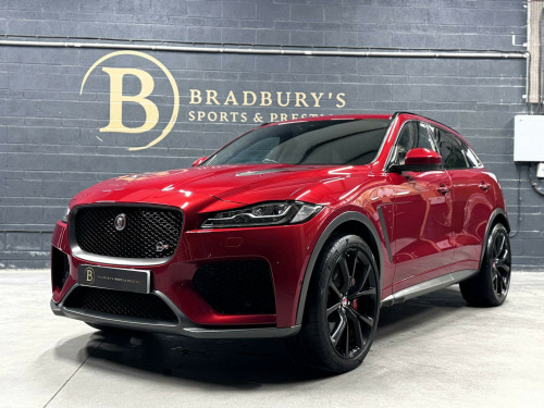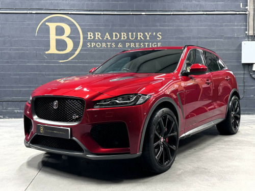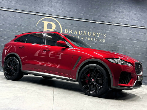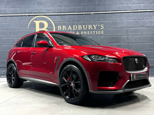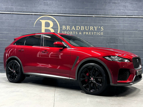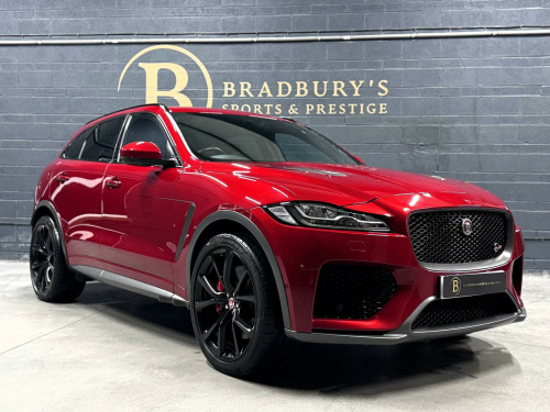 OW19OZO, Bradburys Sports & Prestige are extremely proud to offer this absolutely stunning Jaguar F Pace SVR finished in the stunning shade of Firenze Red metallic over ebony quilted leather interior. This vehicle is a truly outstanding example and it has clearly been proudly cherished and cared for impeccably. The Vehicle has a full Jaguar Main Dealer service history with the latest service having just been carried out. , Vehicle registered on the 28/06/2019, 4 Owners from new, Fully documented service history with the latest service having just been carried out by ourselves with no expense spared. Vehicle will come with Two Keys and a clean MOT, Fully HPI Clear and Ready to Drive Away same day. , Part exchange welcome, Very Competitive Finance Options Available, Please give us a call on 01484 556 124 to discuss the vehicle with a member of the team who will be happy to help in any way they can. Viewings strictly by appointment only, Nationwide Delivery Available, Please enquire regarding delivery