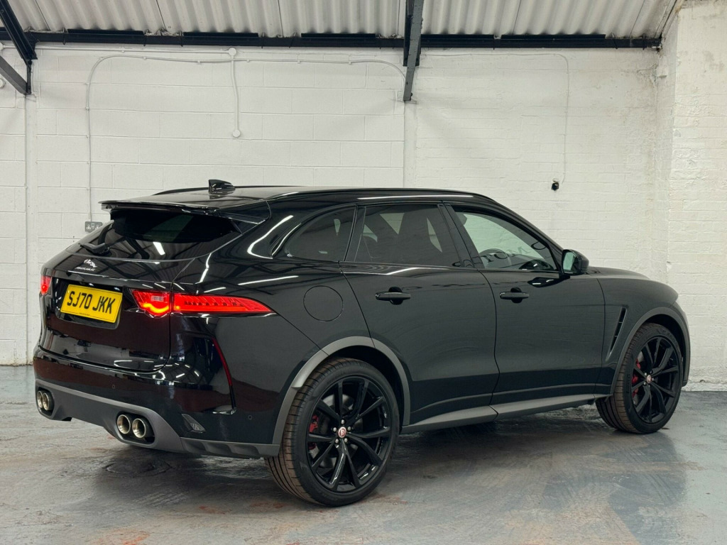 This 2020 Jaguar F-PACE 5.0 V8 SVR Quickshift AWD Euro 6 (s/s) 5dr is currently available for £44,995 in Birmingham Warwickshire with Petrol engine and Automatic gearbox. For more information or to arrange a viewing, click here to send us an email using form below.