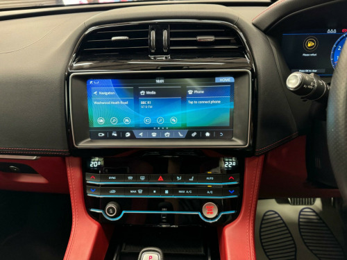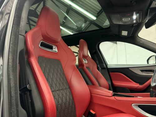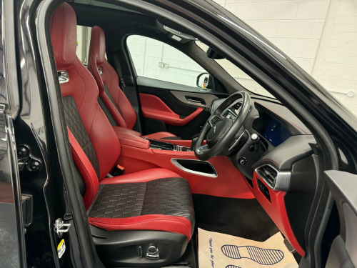 Full Jaguar Service History, One Owner From New, Supplied With Two Keys, Huge Specification, Sports Exhaust, Red/black Two Tone Leather Interior, Panoramic Glass Roof, Reverse Camera, Black Styling Pack, 22'' Alloy Wheels in touch pro, 14-way electric memory front seats, 2-zone climate control, 21in alloy wheels - 5 split-spoke style 5080 with diamond turned finish, 3-flash lane change indicators, 360 degree parking aid, 395mm front and rear brakes, 40-20-40 split fold svr rear seat, am-fm radio, aspc - all surface progress control, adaptive dynamics, adaptive led headlights with led signature daytime running lights, ambient interior lighting, android auto, apple carplay, auto high beam assist, auto-dimming - power fold - heated door mirrors with memory and approach lights, auto-dimming interior rear view mirror, bluetooth connectivity, bluetooth streaming, bright metal pedals, centre console - storage surround finishers - satin chrome, configurable dynamics, connect pro, cruise control with speed limiter, digital audio broadcast - dab - radio, door trim - luxtec, driver condition monitor, dynamic stability control - dsc, dynamic volume control, epb - electronic parking brake, ebony suedecloth headlining, electronic active differential with torque vectoring by braking, emergency braking, f-pace badge, front headrests - svr embossing, gloss black roof rails, gloss black side window surround, glovebox finisher with jaguar script, green tinted glass, headlight power wash, heated and cooled front seats with heated rear seats, incontrol apps, interactive driver display, interior front door handles with separate locking switches, jaguar script and leaper, jaguardrive control, keyless entry, lane keep assist, meridian sound system - 380w, meshed aluminium trim finisher, metal loadspace scuff plate, metal treadplates with svr branding, navigation pro, no loadspace storage rails, overhead lighting console, passive front head restraints, power sockets, powered tailgate - boot lid, pro services and wi-fi hotspot, protect for warranty period, rear air vents, rear armrest with twin cupholders, rear camera, rear centre headrest, rear fog lights, rear metal treadplates, remote premium, svr badge, svr body-coloured door claddings with satin grey finishers, svr front bumper, svr rear bumper with satin grey finish, svr satin grey side vents, satin chrome touchscreen surround, satin grey bonnet louvres, seat belt reminder, seats - performance, sportshift selector, steering column - electrically adjustable, switchable active exhaust, traffic sign recognition with adaptive speed limiter, trailer stability assist, tyre pressure monitoring system, valet mode, variable intermittent wipers, voice control