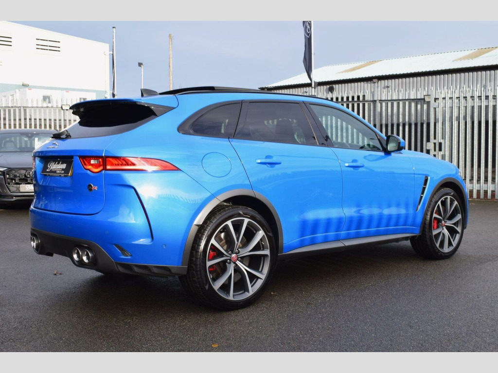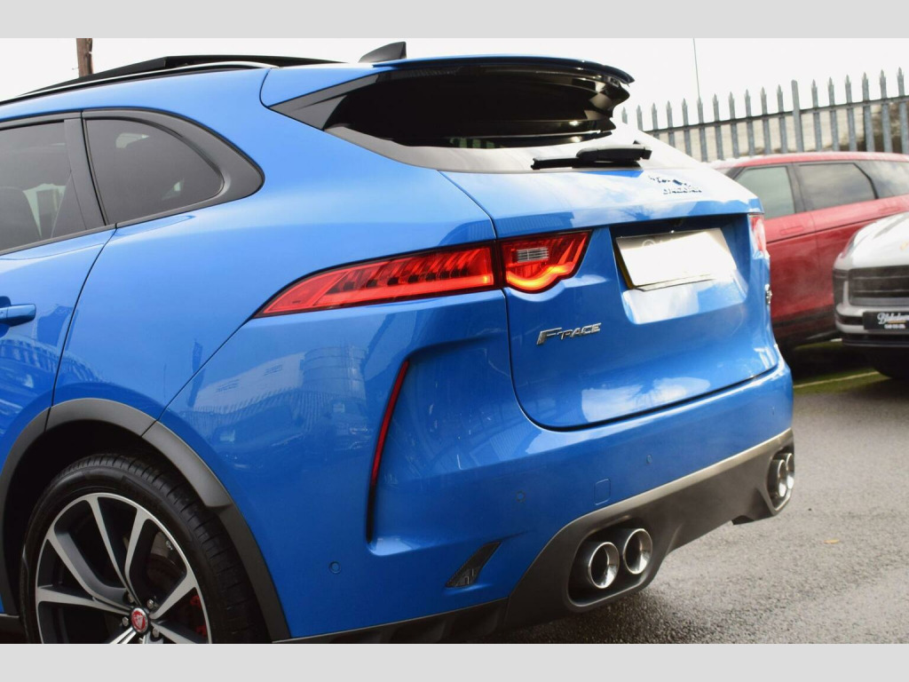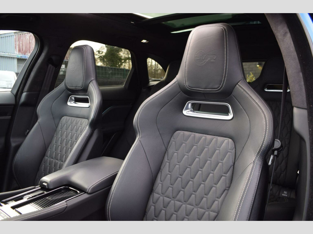 2020 70 Jaguar F-PACE 5.0 V8 SVR Quickshift AWD finished in beautiful Ultra Blue Metallic with Ebony Lozenge Quilted Leather interior. Just 21800 miles covered by two owners which is supported with excellent Jaguar Land Rover main dealer service history consisting of 5 services with supporting Online Service History printout. This car is presented in superb condition inside and out as you would expect from a low mileage, low owner example - bodywork, alloys and interior all excellently maintained. Supplied with all correct documentation, handbooks etc and subjected to our usual strict pre delivery inspection and preparation process ensuring all cosmetic and mechanical elements are in good order including matching Pirelli tyres. Fantastic specification thanks to a selection of optional extras fitted on top of the already impressive SVR spec and paint finish, these include: Sliding Panoramic Roof, 22in Alloy Wheels - 5 Split-Spoke - Style 5081 with Diamond Turned Finish, Privacy Glass, SVR Reduced Section Alloy Spare Wheel, Park Pack, Rear Seat Remote Release Levers and Lozenge Quilted Leather - Ebony-Ebony. Other highlights include: Adaptive LED Headlights with LED Signature Daytime Running Lights, 14-Way Electric Memory Front Seats, Heated and Cooled Front Seats with Heated Rear Seats, Meridian Sound System - 380W, Navigation Pro, Interactive Driver Display, Keyless Entry, Switchable Active Exhaust, SVR Front and Rear Bumpers, Quad Tailpipes with 95mm Finishers, Red Brake Calipers, Adaptive Dynamics, Electronic Active Differential with Torque Vectoring by Braking, 360 Degree Parking Aid, Rear Camera, Traffic Sign Recognition with Adaptive Speed Limiter, Android Auto, Apple CarPlay and more. , DELIVERY: Nationwide delivery available. The first 100 miles are free of charge (driven delivery). Thereafter, delivery is charged at £1.99+vat per mile. Please contact us for further details or a personalised quotation including trailered delivery options. , PAYMENT: We accept debit card payments for amounts up to £500. For payments exceeding this amount, we accept BACS (bank transfer) only. Please ensure that funds have cleared prior to vehicle collection as we are unable to release vehicles without cleared funds.If you intend to pay via online banking on the day of collection, please bring any necessary devices or security tools (e.g. secure keys, card readers, etc.) required to complete your transfer. We also accept cash payments up to £9,000, subject to a 2% banking fee. Please note that a £250 administration fee applies to all purchases funded through third-party finance providers. , NOTICE: Every effort is made to ensure the accuracy of our advertisements and vehicle specifications. However, occasional human or system errors may occur. We therefore recommend verifying all details prior to purchase.