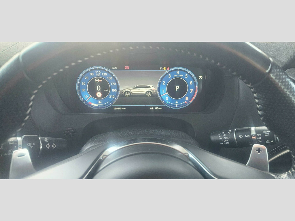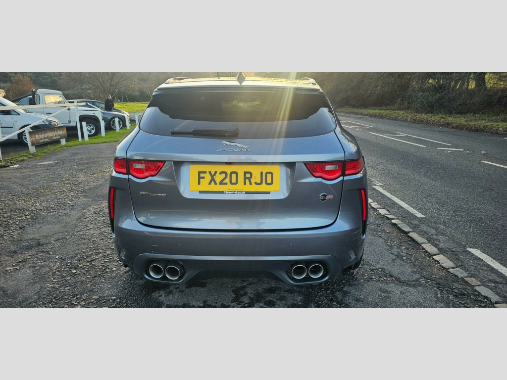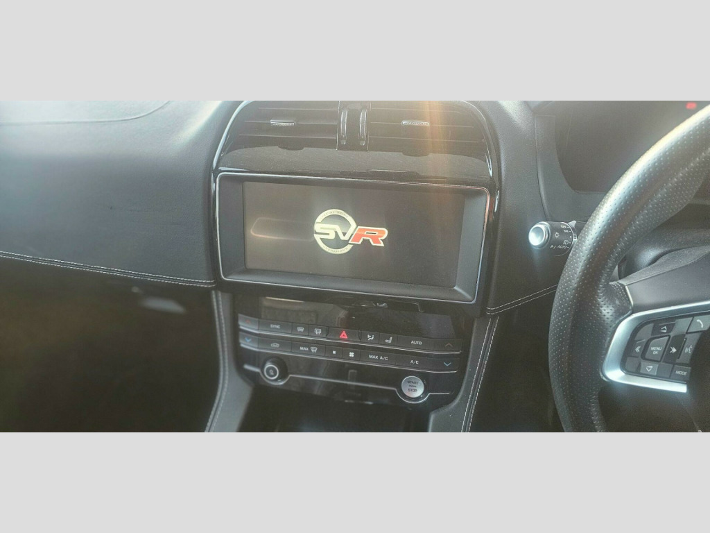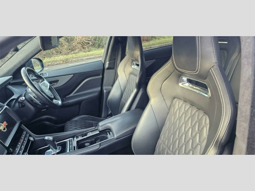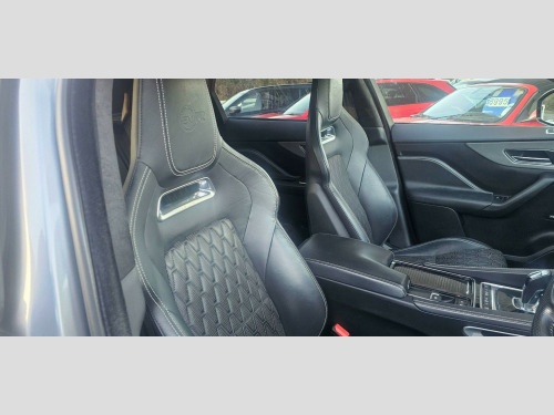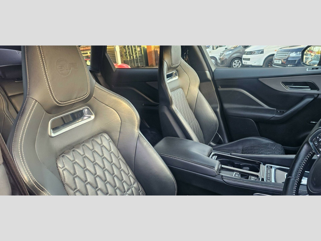 This 2020 Jaguar F-PACE V8 SVR offers an exceptional blend of performance and luxury, boasting a powerful 5.0L petrol engine and a sophisticated Four Wheel Drive system. As a Euro 6 compliant vehicle, it meets stringent emission standards. This F-PACE SVR also features convenient Keyless Entry, allowing effortless access, and a 2 Zone Climate Control system to ensure comfort for all occupants. Stay connected on the go with seamless Bluetooth Connectivity and Android Auto integration, while the Adaptive LED Headlights with LED Signature Daytime Running Lights provide excellent visibility in all conditions. With a generous boot space, it's as practical as it is potent, and it has a towing weight of 2400 kg.Experience exhilarating performance with the F-PACE SVR's remarkable 0-60mph acceleration in just 4.1 seconds, a figure that truly sets it apart from similar vehicles. This impressive speed is a testament to the engineering prowess behind this performance SUV, offering a driving experience that is both thrilling and refined. The combination of its potent V8 engine, advanced drivetrain, and thoughtful features makes this Jaguar F-PACE SVR a standout choice for those seeking a dynamic and capable vehicle. in touch pro, 14-way electric memory front seats, 2-zone climate control, 21in alloy wheels - 5 split-spoke style 5080 with diamond turned finish, 3-flash lane change indicators, 360 degree parking aid, 395mm front and rear brakes, 40-20-40 split fold svr rear seat, abs - anti-locking braking system, am-fm radio, aspc - all surface progress control, adaptive dynamics, adaptive led headlights with led signature daytime running lights, airbags - front side, airbags - full length side window curtain, aluminium gearshift paddles, ambient interior lighting, android auto, apple carplay, approach illumination, auto high beam assist, auto-dimming - power fold - heated door mirrors with memory and approach lights, auto-dimming interior rear view mirror, bluetooth connectivity, bluetooth streaming, body coloured door mirror caps, brake pad wear indicator, bright metal pedals, centre console - side stowage, centre console - storage surround finishers - satin chrome, centre console with armrest, configurable dynamics, connect pro, cruise control with speed limiter, digital audio broadcast - dab - radio, door trim - luxtec, driver condition monitor, dynamic stability control - dsc, dynamic volume control, eba - emergency brake assist, eco driving style assistant, epas - electric power assisted steering, epb - electronic parking brake, ebony suedecloth headlining, electric windows - front and rear with one-touch open-close and anti-trap, electronic active differential with torque vectoring by braking, emergency braking, f-pace badge, front airbags with passenger seat occupant detector, front headrests - svr embossing, front windscreen with non-acoustic layer, gloss black grille with satin grey surround, gloss black roof rails, gloss black side window surround, glovebox finisher with jaguar script, green tinted glass, headlight power wash, heated front windscreen, heated rear window, heated steering wheel, heated and cooled front seats with heated rear seats, hill launch assist, hook in loadspace, isofix rear, incontrol apps, interactive driver display, interior front door handles with separate locking switches, jaguar script and leaper, jaguar tyre repair system, jaguardrive control, keyless entry, led tail lights, lane keep assist, lockable glovebox, luggage tie downs in loadspace, luxtec wrapped instrument panel topper with svr trim, meridian sound system - 380w, meshed aluminium trim finisher, metal loadspace scuff plate, metal treadplates with svr branding, navigation pro, no loadspace storage rails, outside temperature gauge, overhead lighting console, passive front head restraints, power operated child locks, power sockets, powered tailgate - boot lid, pro services and wi-fi hotspot, protect for warranty period, quad tailpipes with 95mm finishers, rain sensing windscreen wipers, rear air vents, rear armrest with twin cupholders, rear camera, rear centre headrest, rear fog lights, rear metal treadplates, red brake calipers, remote premium, svr badge, svr body-coloured door claddings with satin grey finishers, svr front bumper, svr leather steering wheel, svr luxury carpet mats, svr rear bumper with satin grey finish, svr satin grey side vents, satin chrome touchscreen surround, satin grey bonnet louvres, seat belt reminder, seats - performance, speed proportional steering, sportshift selector, start up sequence with movement - dials and lighting, steering column - electrically adjustable, steering wheel - multi-function, switchable active exhaust, traffic sign recognition with adaptive speed limiter, trailer stability assist, trip computer, twin front cupholders with cover, tyre pressure monitoring system, valet mode, variable intermittent wipers, voice control