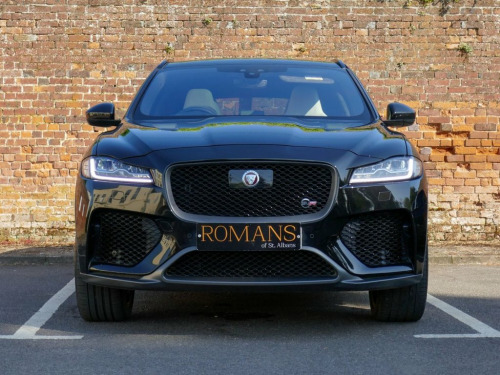 DEPOSIT TAKEN-SIMILAR WANTED! Romans of St Albans are delighted to present this beautiful Jaguar F-Pace SVR! This car has a wide range of specs to include! Sliding Panoramic Roof, Drive Pack, Privacy Glass, Adaptive Cruise Control, Head Up Display and much more! ...FINANCE AVAILABLE. A £299 admin fee applies to third party finance companies being used. ULEZ COMPLIANT. FREE ON-SITE PARKING (ASK FOR DETAILS.) Romans after care package includes: Romans warranty for 6 months (12,24 & 36 months are available), Main dealer cover available, Free breakdown cover for warranty duration, Full Romans service prior to delivery, 84 point vehicle inspection, 12 months MOT, Free Life time MOT when servicing with us (ask for details), Total value of package: £2000 - ALL INCLUSIVE IN THE PRICE. All of our clients have the added peace of mind that we have our own workshop facilities with free courtesy cars. Part Exchange very welcome, nationwide delivery also available. To avoid a wasted journey we highly recommend making an appointment, so call us now to get yours booked! Romans provide the highest of quality vehicles, and have at least 80 cars in stock at any one time. This means not all cars can be kept on site. This will also allow us to give you our fully undivided attention when viewing the vehicle you are interested in, WE ARE LOOKING TO BUY YOUR TOP SPEC, LOW MILEAGE, FULL SERVICE HISTORY PRESTIGE, SPORTS, AND 4X4 VEHICLES. GET MORE FOR YOUR VEHICLE BY EITHER SELLING TO 22in Alloy Wheels - 5 Split-Spoke - Styl, Illuminated Metal Loadspace Scuff Plate, Solar Attenuating Windscreen, SVR Reduced Section Alloy Spare Wheel, Santorini Black, Drive Pack, 2x 12V Power Sockets in Second Row, CD-DVD Player, Air Quality Sensor, Rear Seat Remote Release Levers, Privacy Glass, Blind Spot Assist, Sliding Panoramic Roof, Digital TV, Head-Up Display Pack, 10in Touch Pro, 14-Way Electric Memory Front Seats, 2-Zone Climate Control, 21in Alloy Wheels - 5 Split-Spoke Style , 3-Flash Lane Change Indicators, 360 Degree Parking Aid, 395mm Front and Rear Brakes, 40-20-40 Split Fold SVR Rear Seat, ABS - Anti-locking Braking System, AM-FM Radio, ASPC - All Surface Progress Control,