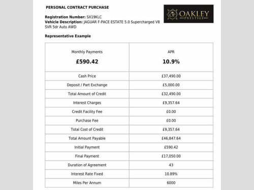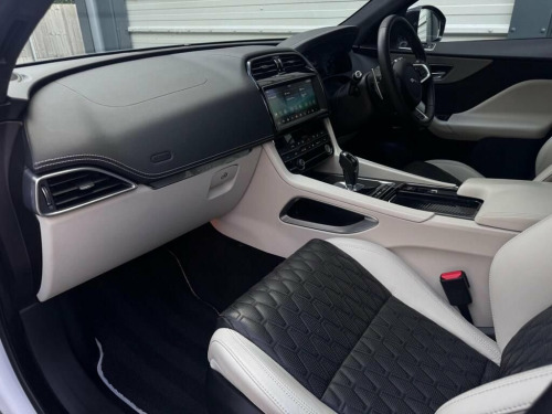 We are delighted to offer for sale this lovely F Pace SVR. Finished in stunning Yulong white metallic white, the car is presented in fantastic condition both inside and out. It has clearly been cherished by its previous keeper and benefits from a full service history. Services have been carried out at 892 miles, 11,752 miles, 34,502 miles and it has also just undergone a service and new MOT ready for the new keeper ready to drive away today. It is also HPI clear. The car boats a lovely specification with some highly desirable features. These include Fixed Panoramic sunroof, Meridian sound system, Blind spot assist, 22 inch Gloss black alloy wheels, Reverse camera, Heated seats, Apple Carplay plus much more. On the road the car drives faultlessly as you would expect for such low mileage. This really is not one to miss. Competitive finance packages are available with very low monthly payments and starting from just 8.9% APR, contact us for a personalised quotation. The car will be sold with 2 keys, HPI certificate and parts and labour warranty included. All the usual dealer facilities are available including Autoguard nationwide parts and labour warranties. All major credit and debit cards accepted, For more information call any time 9am to 6pm, P/X Welcome. VIEWING STRICTLY BY PRIOR APPOINTMENT ONLY. TEL: 01256 593043 *Please also note: Although every effort is made to ensure the accuracy of every advert and vehicle specification, system and human errors can occur fr 10in Touch Pro, 14-Way Electric Memory Front Seats, 2-Zone Climate Control, 21in Alloy Wheels - 5 Split-Spoke Style , 3-Flash Lane Change Indicators, 360 Degree Parking Aid, 395mm Front and Rear Brakes, 40-20-40 Split Fold SVR Rear Seat, ABS - Anti-locking Braking System, AM-FM Radio, ASPC - All Surface Progress Control, Adaptive Dynamics, Adaptive LED Headlights with LED Signatu, Airbags - Front Side, Airbags - Full Length Side Window Curtai, Aluminium Gearshift Paddles, Ambient Interior Lighting, Android Auto, Apple CarPlay, Approach Illumination, Auto High Beam Assist, Auto-Dimming - Power Fold - Heated Door , Auto-Dimming Interior Rear View Mirror, Bluetooth Connectivity, Bluetooth Strea