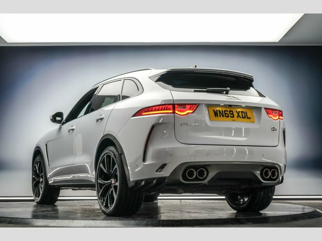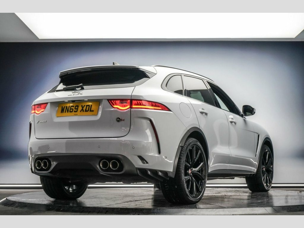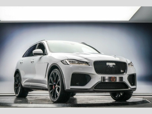 This Jaguar F-Pace 5.0 V8 SVR is finished in Yulong White. FEATURING - Fixed Panoramic Roof | 22-inch Alloy Wheels - Gloss Black Finish | Privacy Glass | Lozenge Quilted Leather - Ebony | Meridian Sound System - 380W | Heated Steering Wheel | Heated and Cooled Front Seats with Heated Rear Seats | Rear Camera | Apple CarPlay & Android Auto | Adaptive LED Headlights with LED Signature Daytime Running Lights. HISTORY - Jaguar Online Service History - 24.10.2019 Pre Delivery Inspection at 11 miles. 14.09.2020 Service oil & filer at 2346 miles. 12.07.2021 Service oil & filer at 9242 miles. 08.06.2022 Service oil & filter & transmission fluid at 16857 miles. 07.06.2022 Service oil & filter, brake fluid & front differential fluid at 25997 miles. 12.06.2024 Service oil & filter & brake fluid at 36097 miles. 30.06.2025 Service oil & filter, transfer case fluid & spark plugs at 49327 miles. Lozenge Quilted Leather - Ebony-Ebony, Yulong White, Drive Pack, Fixed Panoramic Roof, Privacy Glass, 22in Alloy Wheels - 5 Split-Spoke - Styl, 10in Touch Pro, 14-Way Electric Memory Front Seats, 2-Zone Climate Control, 3-Flash Lane Change Indicators, 360 Degree Parking Aid, 395mm Front and Rear Brakes, 40-20-40 Split Fold SVR Rear Seat, ABS - Anti-locking Braking System, AM-FM Radio, ASPC - All Surface Progress Control, Adaptive Dynamics, Adaptive LED Headlights with LED Signatu, Airbags - Front Side, Airbags - Full Length Side Window Curtai, Aluminium Gearshift Paddles, Ambient Interior Lighting, Android Auto, Apple CarPlay, Approach Illumination, Auto High Beam Assist, Auto-Dimming - Powe