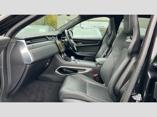 Jaguar F-PACE 2.0 D200 R-Dynamic HSE Black 5dr Auto AWD 11.4" touchscreen, Adaptive cruise control with steering assist, Android Auto, Apple car play, Blind spot assist, Bluetooth connectivity, Clear exit monitor, Driver alert system, Driver condition monitor, eCall emergency call system, Eco driving style assistant, Electric power assisted steering, InControl remote, Interactive driver display digital with 12" TFT display, Jaguar Toggle shift selector, Lane departure warning system, Lane keep assist, Outside temperature gauge, Personalisation profile management, Pivi pro connected navigation system with app interface and media storage, Pro services and wifi hotspot, Push button starter, Rear collision monitor, Rear traffic monitor, Service interval indicator, Speed proportional steering, Start up sequence with movement in dials and lighting, Traffic sign recognition with adaptive speed limiter, Trip computer, Voice control system, Wireless device charging, 8 speed automatic transmission, Adaptive dynamics, All terrain progress control, All Wheel Drive (AWD), Configurable dynamics, Open differential with torque vectoring by braking, AM/FM radio, Bluetooth streaming, DAB Radio (Digital Audio Broadcasting), Dynamic volume control, InControl apps, InControl protect, iPod integration, 3 flash lane change indicators, Animated directional indicators, Approach Illumination, Auto dimming rear view mirror, Auto high beam assist, Automatic headlights, Electric heated/power fold memory door mirrors with approach lights and auto dimming driver side, Electric windows with one touch open/close and anti trap, F-Pace and R Dynamic badge, Green tinted glass, Heated front windscreen + heated washer jets, Heated rear window with timer, Illuminated metal tread plates with Jaguar script, Jaguar script and leaper, LED High level third brake light, LED tail lights, Metal load space scuff plates, Non acoustic front windscreen, Privacy glass, R Dynamic badge on side door, Rain sensor windscreen wipers, Rear fog lights, Rear metal tread plates, Rear side wing doors, Rear wiper, Trailer stability assist, Variable front intermittent wipers, 12V power point front, 3 rear headrests, 3 seat bench in 2nd row, Additional power sockets - Two additional USB sockets in rear centre console and one 12V socket in trunk, Air distribution speed, Bright metal foot pedals, Centre armrest console, Centre console with side storage, Configurable cabin lighting, Deletion loadspace storage rails, Door sill tread plates, Ebony suede cloth headlining, Electrically adjustable steering column, Fold flat front seats, Front centre armrest with storage compartment, Front door storage space, Glovebox finisher with jaguar script, Heated steering wheel, Hooks in loadspace, Illuminated glovebox, Interior front door handles with separate locking switches, ISOFIX on outer rear seats, Jaguar sense, Leather steering wheel, Luggage tie downs in loadspace, Mist sensing, Multifunction steering wheel, Overhead lighting console, Overhead stowage for sunglasses, Passive front head restraints, Premium carpet mats, Rear air vents, Rear armrest with twin cupholders, Rear centre headrest, Rear door storage space, Reversible boot floor, Satin chrome gearshift paddles, Shopping bag hook, Single front passenger seat, Sunvisors with illuminated vanity mirrors, Twin front cupholders with cover, Online Pack with data plan - F-Pace, 355mm front brakes and 325mm rear brakes, 3x3 point rear seatbelts, ABS, All surface progress control (ASPC), Brake pad warning light, DSC - Dynamic Stability Control, Electric parking brake (EPB), Emergency brake assist, Front airbags with passenger seat occupant detector, Front and rear seatbelt reminder, Front side airbags, Full length side window curtain airbag, Hill launch assist, Power operated child locks, Traction control, Tyre pressure monitoring system, Immobiliser, Keyless entry, Keyless Start, Locking wheel nuts, Perimeter alarm, Remote central locking, Valet mode