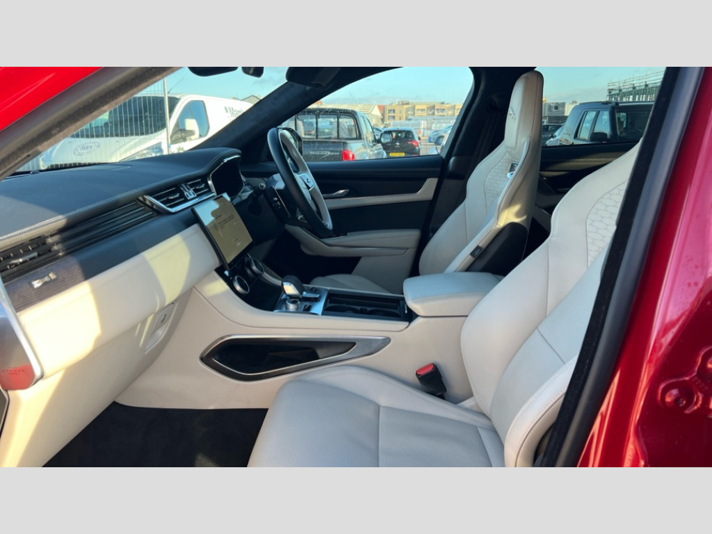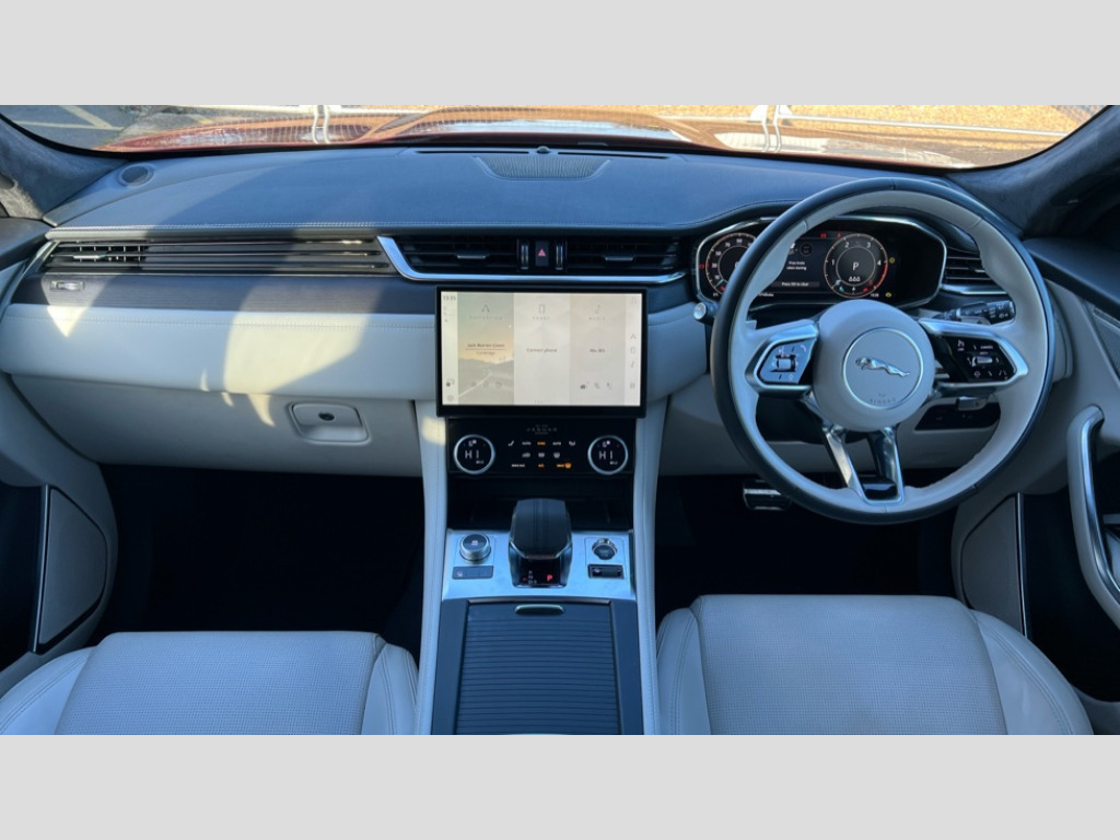 Jaguar F-PACE 2.0 D200 R-Dynamic HSE Black 5dr Auto AWD 11.4" touchscreen, Adaptive cruise control with steering assist, Android Auto, Apple car play, Blind spot assist, Bluetooth connectivity, Clear exit monitor, Driver alert system, Driver condition monitor, eCall emergency call system, Eco driving style assistant, Electric power assisted steering, InControl remote, Interactive driver display digital with 12" TFT display, Jaguar Toggle shift selector, Lane departure warning system, Lane keep assist, Outside temperature gauge, Personalisation profile management, Pivi pro connected navigation system with app interface and media storage, Pro services and wifi hotspot, Push button starter, Rear collision monitor, Rear traffic monitor, Service interval indicator, Speed proportional steering, Start up sequence with movement in dials and lighting, Traffic sign recognition with adaptive speed limiter, Trip computer, Voice control system, Wireless device charging, 8 speed automatic transmission, Adaptive dynamics, All terrain progress control, All Wheel Drive (AWD), Configurable dynamics, Open differential with torque vectoring by braking, AM/FM radio, Bluetooth streaming, DAB Radio (Digital Audio Broadcasting), Dynamic volume control, InControl apps, InControl protect, iPod integration, 3 flash lane change indicators, AHBA and animated directional indicators, Approach Illumination, Auto dimming rear view mirror, Automatic headlights, Electric heated/power fold memory door mirrors with approach lights and auto dimming driver side, Electric windows with one touch open/close and anti trap, F-Pace and R Dynamic badge, Green tinted glass, Heated front windscreen + heated washer jets, Heated rear window with timer, Illuminated metal tread plates with Jaguar script, Jaguar script and leaper, LED High level third brake light, LED tail lights, Metal load space scuff plates, Non acoustic front windscreen, Privacy glass (rear side windows and rear screen), R Dynamic badge on side door, Rain sensor windscreen wipers, Rear fog lights, Rear metal tread plates, Rear side wing doors, Rear wiper, Trailer stability assist, Variable front intermittent wipers, 12V power point front, 3 rear headrests, 3 seat bench in 2nd row, Additional power sockets - Two additional USB sockets in rear centre console and one 12V socket in trunk, Air distribution speed, Bright metal foot pedals, Centre armrest console, Centre console with side storage, Configurable cabin lighting, Deletion loadspace storage rails, Door sill tread plates, Ebony suede cloth headlining, Electrically adjustable steering column, Fold flat front seats, Front centre armrest with storage compartment, Front door storage space, Glovebox finisher with jaguar script, Heated steering wheel, Hooks in loadspace, Illuminated glovebox, Interior front door handles with separate locking switches, ISOFIX on outer rear seats, Jaguar sense, Leather steering wheel, Luggage tie downs in loadspace, Mist sensing, Multifunction steering wheel, Overhead lighting console, Overhead stowage for sunglasses, Passive front head restraints, Premium carpet mats, Rear air vents, Rear armrest with twin cupholders, Rear centre headrest, Rear door storage space, Reversible boot floor, Satin chrome gearshift paddles, Shopping bag hook, Single front passenger seat, Sunvisors with illuminated vanity mirrors, Twin front cupholders with cover, Online Pack with data plan - F-Pace, 355mm front brakes and 325mm rear brakes, 3x3 point rear seatbelts, ABS, All surface progress control (ASPC), Brake pad warning light, DSC - Dynamic Stability Control, Electric parking brake (EPB), Emergency brake assist, Front airbags with passenger seat occupant detector, Front and rear seatbelt reminder, Front side airbags, Full length side window curtain airbag, Hill launch assist, Power operated child locks, Traction control, Tyre pressure monitoring system, Immobiliser, Keyless entry, Keyless start, Locking wheel nuts, Perimeter alarm, Remote central locking, Valet mode