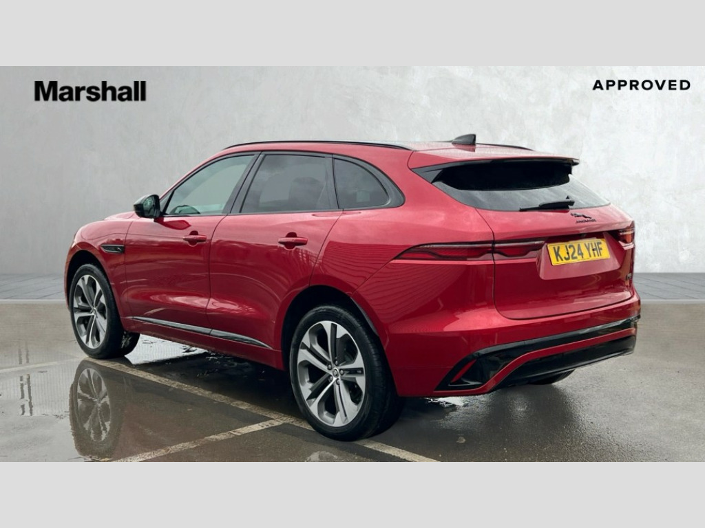 Jaguar F-PACE 2.0 D200 R-Dynamic HSE Black 90th Anniv 5dr Auto 11.4" touchscreen, Adaptive cruise control with steering assist, Android Auto, Apple car play, Blind spot assist, Bluetooth connectivity, Clear exit monitor, Driver alert system, Driver condition monitor, eCall emergency call system, Eco driving style assistant, Electric power assisted steering, InControl remote, Interactive driver display digital with 12" TFT display, Jaguar Toggle shift selector, Lane departure warning system, Lane keep assist, Outside temperature gauge, Personalisation profile management, Pivi pro connected navigation system with app interface and media storage, Pro services and wifi hotspot, Push button starter, Rear collision monitor, Rear traffic monitor, Service interval indicator, Speed proportional steering, Start up sequence with movement in dials and lighting, Traffic sign recognition with adaptive speed limiter, Trip computer, Voice control system, Wireless device charging, 8 speed automatic transmission, Adaptive dynamics, All terrain progress control, All Wheel Drive (AWD), Configurable dynamics, Open differential with torque vectoring by braking, AM/FM radio, Bluetooth streaming, DAB Radio (Digital Audio Broadcasting), Dynamic volume control, InControl apps, InControl protect, iPod integration, 3 flash lane change indicators, 90th Anniversary Edition Badge, AHBA and animated directional indicators, Approach Illumination, Auto dimming rear view mirror, Automatic headlights, Electric heated/power fold memory door mirrors with approach lights and auto dimming driver side, Electric windows with one touch open/close and anti trap, F-Pace and R Dynamic badge, Green tinted glass, Heated front windscreen + heated washer jets, Heated rear window with timer, Illuminated metal tread plates with Jaguar script, Jaguar script and leaper, LED High level third brake light, LED tail lights, Metal load space scuff plates, Non acoustic front windscreen, Privacy glass (rear side windows and rear screen), R Dynamic badge on side door, Rain sensor windscreen wipers, Rear fog lights, Rear metal tread plates, Rear side wing doors, Rear wiper, Trailer stability assist, Variable front intermittent wipers, 12V power point front, 3 rear headrests, 3 seat bench in 2nd row, Additional power sockets - Two additional USB sockets in rear centre console and one 12V socket in trunk, Air distribution speed, Bright metal foot pedals, Centre armrest console, Centre console with side storage, Configurable cabin lighting, Deletion loadspace storage rails, Door sill tread plates, Ebony suede cloth headlining, Electrically adjustable steering column, Fold flat front seats, Front centre armrest with storage compartment, Front door storage space, Glovebox finisher with jaguar script, Heated steering wheel, Hooks in loadspace, Illuminated glovebox, Interior front door handles with separate locking switches, ISOFIX on outer rear seats, Jaguar sense, Leather steering wheel, Luggage tie downs in loadspace, Mist sensing, Multifunction steering wheel, Overhead lighting console, Overhead stowage for sunglasses, Passive front head restraints, Premium carpet mats, Rear air vents, Rear armrest with twin cupholders, Rear centre headrest, Rear door storage space, Reversible boot floor, Satin chrome gearshift paddles, Shopping bag hook, Single front passenger seat, Sunvisors with illuminated vanity mirrors, Twin front cupholders with cover, Online Pack with data plan - F-Pace, 355mm front brakes and 325mm rear brakes, 3x3 point rear seatbelts, ABS, All surface progress control (ASPC), Brake pad warning light, DSC - Dynamic Stability Control, Electric parking brake (EPB), Emergency brake assist, Front airbags with passenger seat occupant detector, Front and rear seatbelt reminder, Front side airbags, Full length side window curtain airbag, Hill launch assist, Power operated child locks, Traction control, Tyre pressure monitoring system, Immobiliser, Keyless entry, Keyless Start, Locking wheel nuts, Perimeter alarm, Remote central locking, Valet mode