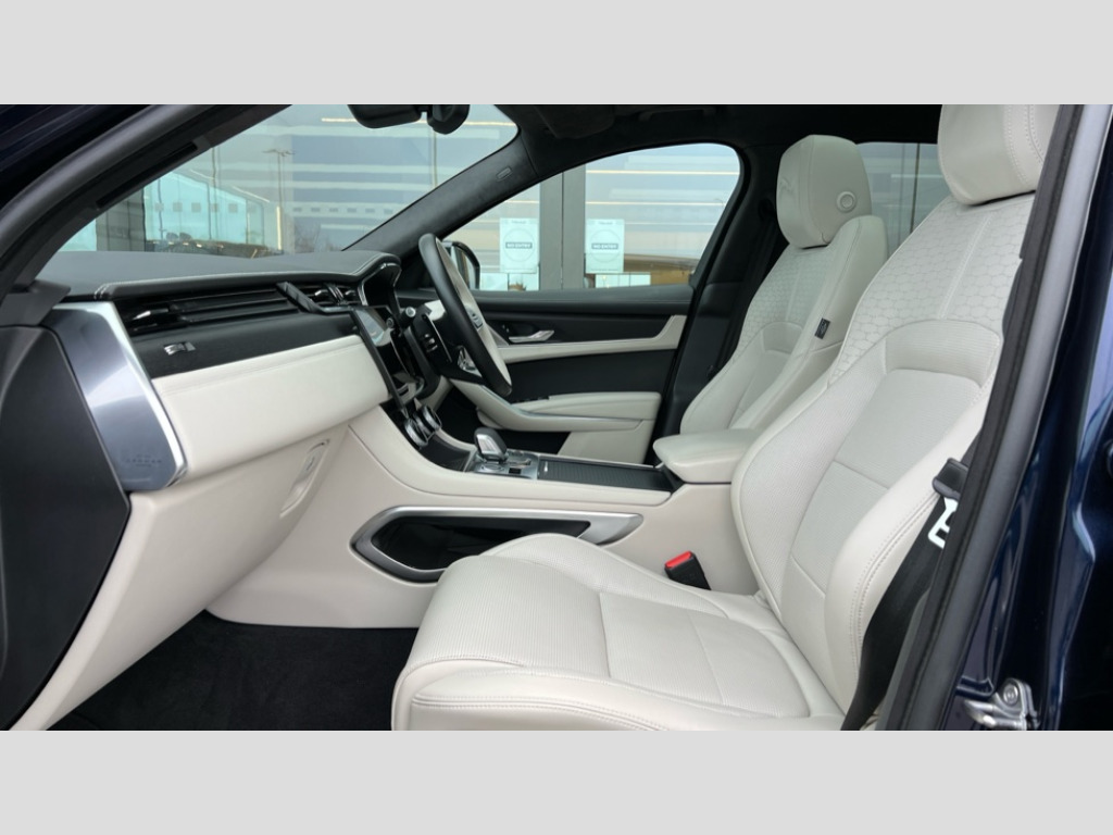 Jaguar F-PACE 2.0 D200 R-Dynamic HSE Black 90th Anniv 5dr Auto 11.4" touchscreen, Adaptive cruise control with steering assist, Android Auto, Apple car play, Blind spot assist, Bluetooth connectivity, Clear exit monitor, Driver alert system, Driver condition monitor, eCall emergency call system, Eco driving style assistant, Electric power assisted steering, InControl remote, Interactive driver display digital with 12" TFT display, Jaguar Toggle shift selector, Lane departure warning system, Lane keep assist, Outside temperature gauge, Personalisation profile management, Pivi pro connected navigation system with app interface and media storage, Pro services and wifi hotspot, Push button starter, Rear collision monitor, Rear traffic monitor, Service interval indicator, Speed proportional steering, Start up sequence with movement in dials and lighting, Traffic sign recognition with adaptive speed limiter, Trip computer, Voice control system, Wireless device charging, 8 speed automatic transmission, Adaptive dynamics, All terrain progress control, All Wheel Drive (AWD), Configurable dynamics, Open differential with torque vectoring by braking, AM/FM radio, Bluetooth streaming, DAB Radio (Digital Audio Broadcasting), Dynamic volume control, InControl apps, InControl protect, iPod integration, 3 flash lane change indicators, 90th Anniversary Edition Badge, AHBA and animated directional indicators, Approach Illumination, Auto dimming rear view mirror, Automatic headlights, Electric heated/power fold memory door mirrors with approach lights and auto dimming driver side, Electric windows with one touch open/close and anti trap, F-Pace and R Dynamic badge, Green tinted glass, Heated front windscreen + heated washer jets, Heated rear window with timer, Illuminated metal tread plates with Jaguar script, Jaguar script and leaper, LED High level third brake light, LED tail lights, Metal load space scuff plates, Non acoustic front windscreen, Privacy glass (rear side windows and rear screen), R Dynamic badge on side door, Rain sensor windscreen wipers, Rear fog lights, Rear metal tread plates, Rear side wing doors, Rear wiper, Trailer stability assist, Variable front intermittent wipers, 12V power point front, 3 rear headrests, 3 seat bench in 2nd row, Additional power sockets - Two additional USB sockets in rear centre console and one 12V socket in trunk, Air distribution speed, Bright metal foot pedals, Centre armrest console, Centre console with side storage, Configurable cabin lighting, Deletion loadspace storage rails, Door sill tread plates, Ebony suede cloth headlining, Electrically adjustable steering column, Fold flat front seats, Front centre armrest with storage compartment, Front door storage space, Glovebox finisher with jaguar script, Heated steering wheel, Hooks in loadspace, Illuminated glovebox, Interior front door handles with separate locking switches, ISOFIX on outer rear seats, Jaguar sense, Leather steering wheel, Luggage tie downs in loadspace, Mist sensing, Multifunction steering wheel, Overhead lighting console, Overhead stowage for sunglasses, Passive front head restraints, Premium carpet mats, Rear air vents, Rear armrest with twin cupholders, Rear centre headrest, Rear door storage space, Reversible boot floor, Satin chrome gearshift paddles, Shopping bag hook, Single front passenger seat, Sunvisors with illuminated vanity mirrors, Twin front cupholders with cover, Online Pack with data plan - F-Pace, 355mm front brakes and 325mm rear brakes, 3x3 point rear seatbelts, ABS, All surface progress control (ASPC), Brake pad warning light, DSC - Dynamic Stability Control, Electric parking brake (EPB), Emergency brake assist, Front airbags with passenger seat occupant detector, Front and rear seatbelt reminder, Front side airbags, Full length side window curtain airbag, Hill launch assist, Power operated child locks, Traction control, Tyre pressure monitoring system, Immobiliser, Keyless entry, Keyless start, Locking wheel nuts, Perimeter alarm, Remote central locking, Valet mode