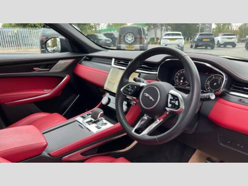 Jaguar F-PACE 2.0 D200 R-Dynamic SE Black 5dr Auto AWD 11.4" touchscreen, Android Auto, Apple car play, Blind spot assist, Bluetooth connectivity, Clear exit monitor, Driver alert system, Driver condition monitor, eCall emergency call system, Eco driving style assistant, Electric power assisted steering, InControl remote, Interactive driver display digital with 12" TFT display, Jaguar Toggle shift selector, Lane departure warning system, Lane keep assist, Outside temperature gauge, Personalisation profile management, Pivi pro connected navigation system with app interface and media storage, Pro services and wifi hotspot, Push button starter, Rear traffic monitor, Service interval indicator, Speed proportional steering, Start up sequence with movement in dials and lighting, Traffic sign recognition with adaptive speed limiter, Trip computer, Voice control system, Wireless device charging, 8 speed automatic transmission, All terrain progress control, All Wheel Drive (AWD), Open differential with torque vectoring by braking, AM/FM radio, Bluetooth streaming, DAB Radio (Digital Audio Broadcasting), Dynamic volume control, InControl apps, InControl protect, iPod integration, 3 flash lane change indicators, Animated directional indicators, Approach Illumination, Auto dimming rear view mirror, Auto high beam assist, Automatic headlights, Electric heated/power fold memory door mirrors with approach lights and auto dimming driver side, Electric windows with one touch open/close and anti trap, F-Pace and R Dynamic badge, Green tinted glass, Heated front windscreen + heated washer jets, Heated rear window with timer, Jaguar script and leaper, LED High level third brake light, LED tail lights, Metal load space scuff plates, Non acoustic front windscreen, Privacy glass, R Dynamic badge on side door, Rain sensor windscreen wipers, Rear fog lights, Rear metal tread plates, Rear side wing doors, Rear wiper, Trailer stability assist, Variable front intermittent wipers, 12V power point front, 3 rear headrests, 3 seat bench in 2nd row, Additional power sockets - Two additional USB sockets in rear centre console and one 12V socket in trunk, Air distribution speed, Bright metal foot pedals, Centre armrest console, Centre console with side storage, Configurable cabin lighting, Deletion loadspace storage rails, Door sill tread plates, Fold flat front seats, Front centre armrest with storage compartment, Front door storage space, Glovebox finisher with jaguar script, Heated steering wheel, Hooks in loadspace, Illuminated glovebox, Interior front door handles with separate locking switches, ISOFIX on outer rear seats, Jaguar sense, Leather steering wheel, Luggage tie downs in loadspace, Mist sensing, Multifunction steering wheel, Overhead lighting console, Overhead stowage for sunglasses, Passive front head restraints, Premium carpet mats, Rear air vents, Rear armrest with twin cupholders, Rear centre headrest, Rear door storage space, Reversible boot floor, Satin chrome gearshift paddles, Shopping bag hook, Single front passenger seat, Sunvisors with illuminated vanity mirrors, Twin front cupholders with cover, Online Pack with data plan - F-Pace, 355mm front brakes and 325mm rear brakes, 3x3 point rear seatbelts, ABS, All surface progress control (ASPC), Brake pad warning light, DSC - Dynamic Stability Control, Electric parking brake (EPB), Emergency brake assist, Front airbags with passenger seat occupant detector, Front and rear seatbelt reminder, Front side airbags, Full length side window curtain airbag, Hill launch assist, Power operated child locks, Traction control, Tyre pressure monitoring system, Immobiliser, Keyless entry, Keyless Start, Locking wheel nuts, Perimeter alarm, Remote central locking, Valet mode