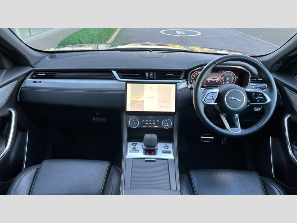 Jaguar F-PACE 2.0 D200 R-Dynamic SE Black 5dr Auto AWD 11.4" touchscreen, Android Auto, Apple car play, Blind spot assist, Bluetooth connectivity, Clear exit monitor, Driver alert system, Driver condition monitor, eCall emergency call system, Eco driving style assistant, Electric power assisted steering, InControl remote, Interactive driver display digital with 12" TFT display, Jaguar Toggle shift selector, Lane departure warning system, Lane keep assist, Outside temperature gauge, Personalisation profile management, Pivi pro connected navigation system with app interface and media storage, Pro services and wifi hotspot, Push button starter, Rear traffic monitor, Service interval indicator, Speed proportional steering, Start up sequence with movement in dials and lighting, Traffic sign recognition with adaptive speed limiter, Trip computer, Voice control system, Wireless device charging, 8 speed automatic transmission, All terrain progress control, All Wheel Drive (AWD), Open differential with torque vectoring by braking, AM/FM radio, Bluetooth streaming, DAB Radio (Digital Audio Broadcasting), Dynamic volume control, InControl apps, InControl protect, iPod integration, 3 flash lane change indicators, AHBA and animated directional indicators, Approach Illumination, Auto dimming rear view mirror, Automatic headlights, Electric heated/power fold memory door mirrors with approach lights and auto dimming driver side, Electric windows with one touch open/close and anti trap, F-Pace and R Dynamic badge, Green tinted glass, Heated front windscreen + heated washer jets, Heated rear window with timer, Jaguar script and leaper, LED High level third brake light, LED tail lights, Metal load space scuff plates, Non acoustic front windscreen, Privacy glass (rear side windows and rear screen), R Dynamic badge on side door, Rain sensor windscreen wipers, Rear fog lights, Rear metal tread plates, Rear side wing doors, Rear wiper, Trailer stability assist, Variable front intermittent wipers, 12V power point front, 3 rear headrests, 3 seat bench in 2nd row, Additional power sockets - Two additional USB sockets in rear centre console and one 12V socket in trunk, Air distribution speed, Bright metal foot pedals, Centre armrest console, Centre console with side storage, Configurable cabin lighting, Deletion loadspace storage rails, Door sill tread plates, Fold flat front seats, Front centre armrest with storage compartment, Front door storage space, Glovebox finisher with jaguar script, Heated steering wheel, Hooks in loadspace, Illuminated glovebox, Interior front door handles with separate locking switches, ISOFIX on outer rear seats, Jaguar sense, Leather steering wheel, Luggage tie downs in loadspace, Mist sensing, Multifunction steering wheel, Overhead lighting console, Overhead stowage for sunglasses, Passive front head restraints, Premium carpet mats, Rear air vents, Rear armrest with twin cupholders, Rear centre headrest, Rear door storage space, Reversible boot floor, Satin chrome gearshift paddles, Shopping bag hook, Single front passenger seat, Sunvisors with illuminated vanity mirrors, Twin front cupholders with cover, Online Pack with data plan - F-Pace, 355mm front brakes and 325mm rear brakes, 3x3 point rear seatbelts, ABS, All surface progress control (ASPC), Brake pad warning light, DSC - Dynamic Stability Control, Electric parking brake (EPB), Emergency brake assist, Front airbags with passenger seat occupant detector, Front and rear seatbelt reminder, Front side airbags, Full length side window curtain airbag, Hill launch assist, Power operated child locks, Traction control, Tyre pressure monitoring system, Immobiliser, Keyless entry, Keyless Start, Locking wheel nuts, Perimeter alarm, Remote central locking, Valet mode