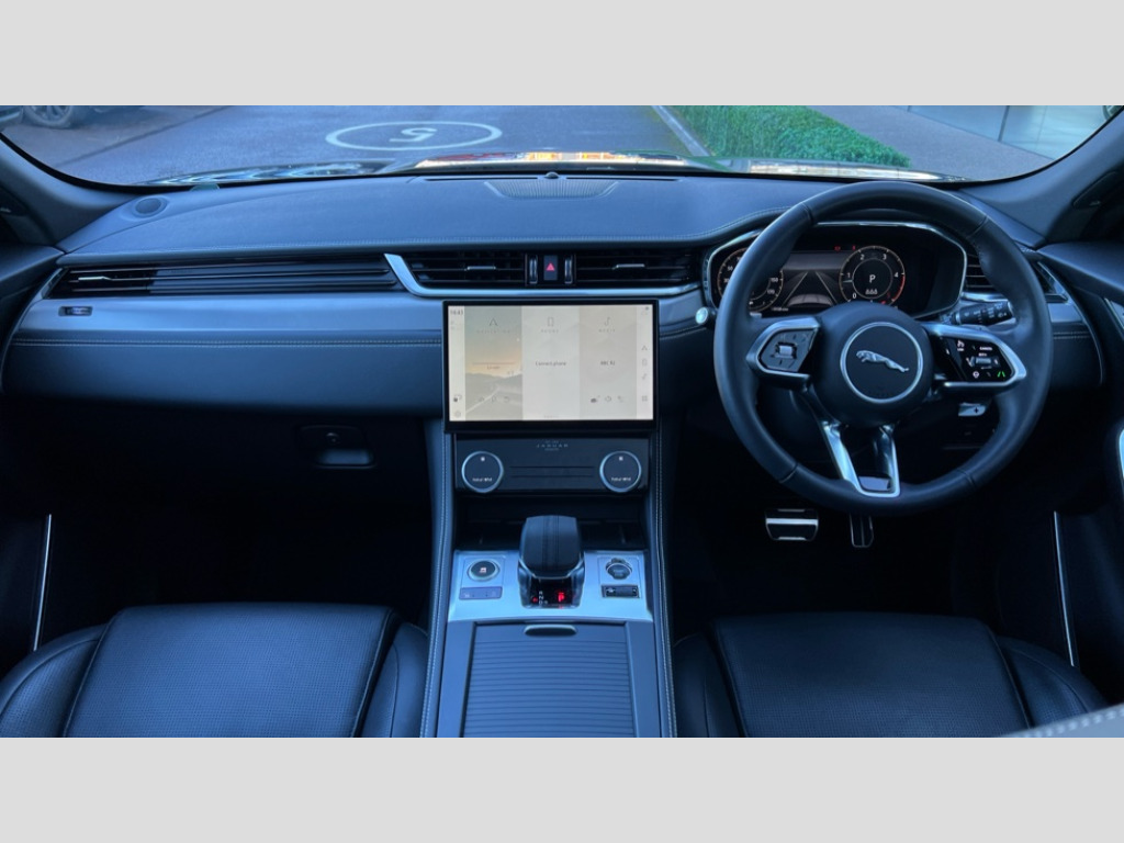 Jaguar F-PACE 2.0 D200 R-Dynamic SE Black 5dr Auto AWD 11.4" touchscreen, Android Auto, Apple car play, Blind spot assist, Bluetooth connectivity, Clear exit monitor, Driver alert system, Driver condition monitor, eCall emergency call system, Eco driving style assistant, Electric power assisted steering, InControl remote, Interactive driver display digital with 12" TFT display, Jaguar Toggle shift selector, Lane departure warning system, Lane keep assist, Outside temperature gauge, Personalisation profile management, Pivi pro connected navigation system with app interface and media storage, Pro services and wifi hotspot, Push button starter, Rear traffic monitor, Service interval indicator, Speed proportional steering, Start up sequence with movement in dials and lighting, Traffic sign recognition with adaptive speed limiter, Trip computer, Voice control system, Wireless device charging, 8 speed automatic transmission, All terrain progress control, All Wheel Drive (AWD), Open differential with torque vectoring by braking, AM/FM radio, Bluetooth streaming, DAB Radio (Digital Audio Broadcasting), Dynamic volume control, InControl apps, InControl protect, iPod integration, 3 flash lane change indicators, AHBA and animated directional indicators, Approach Illumination, Auto dimming rear view mirror, Automatic headlights, Electric heated/power fold memory door mirrors with approach lights and auto dimming driver side, Electric windows with one touch open/close and anti trap, F-Pace and R Dynamic badge, Green tinted glass, Heated front windscreen + heated washer jets, Heated rear window with timer, Jaguar script and leaper, LED High level third brake light, LED tail lights, Metal load space scuff plates, Non acoustic front windscreen, Privacy glass (rear side windows and rear screen), R Dynamic badge on side door, Rain sensor windscreen wipers, Rear fog lights, Rear metal tread plates, Rear side wing doors, Rear wiper, Trailer stability assist, Variable front intermittent wipers, 12V power point front, 3 rear headrests, 3 seat bench in 2nd row, Additional power sockets - Two additional USB sockets in rear centre console and one 12V socket in trunk, Air distribution speed, Bright metal foot pedals, Centre armrest console, Centre console with side storage, Configurable cabin lighting, Deletion loadspace storage rails, Door sill tread plates, Fold flat front seats, Front centre armrest with storage compartment, Front door storage space, Glovebox finisher with jaguar script, Heated steering wheel, Hooks in loadspace, Illuminated glovebox, Interior front door handles with separate locking switches, ISOFIX on outer rear seats, Jaguar sense, Leather steering wheel, Luggage tie downs in loadspace, Mist sensing, Multifunction steering wheel, Overhead lighting console, Overhead stowage for sunglasses, Passive front head restraints, Premium carpet mats, Rear air vents, Rear armrest with twin cupholders, Rear centre headrest, Rear door storage space, Reversible boot floor, Satin chrome gearshift paddles, Shopping bag hook, Single front passenger seat, Sunvisors with illuminated vanity mirrors, Twin front cupholders with cover, Online Pack with data plan - F-Pace, 355mm front brakes and 325mm rear brakes, 3x3 point rear seatbelts, ABS, All surface progress control (ASPC), Brake pad warning light, DSC - Dynamic Stability Control, Electric parking brake (EPB), Emergency brake assist, Front airbags with passenger seat occupant detector, Front and rear seatbelt reminder, Front side airbags, Full length side window curtain airbag, Hill launch assist, Power operated child locks, Traction control, Tyre pressure monitoring system, Immobiliser, Keyless entry, Keyless start, Locking wheel nuts, Perimeter alarm, Remote central locking, Valet mode