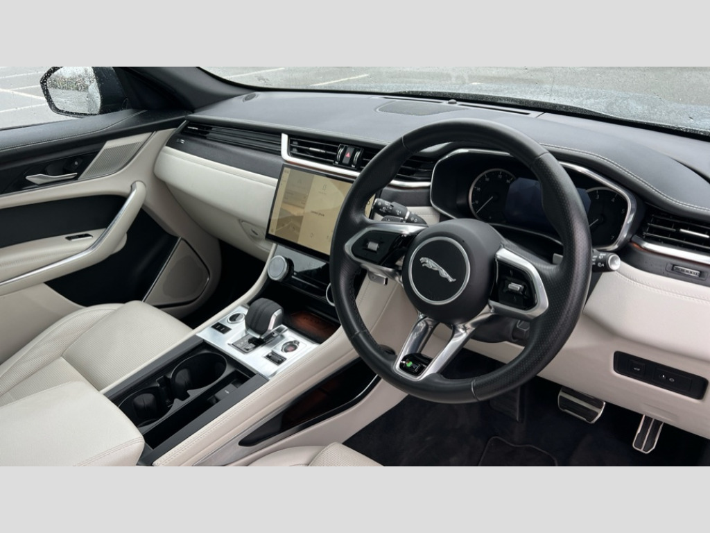 Jaguar F-PACE 2.0 P250 R-Dynamic Black 5dr Auto AWD 11.4" touchscreen, Android Auto, Apple car play, Bluetooth connectivity, Driver alert system, Driver condition monitor, eCall emergency call system, Eco driving style assistant, Electric power assisted steering, InControl remote, Jaguar Toggle shift selector, Lane departure warning system, Lane keep assist, Outside temperature gauge, Personalisation profile management, Pivi pro connected navigation system with app interface and media storage, Pro services and wifi hotspot, Push button starter, Service interval indicator, Speed proportional steering, Start up sequence with movement in dials and lighting, Traffic sign recognition with adaptive speed limiter, Trip computer, Voice control system, 8 speed automatic transmission, All terrain progress control, All Wheel Drive (AWD), Open differential with torque vectoring by braking, AM/FM radio, Bluetooth streaming, DAB Radio (Digital Audio Broadcasting), Dynamic volume control, InControl apps, InControl protect, iPod integration, 3 flash lane change indicators, Animated directional indicators, Approach Illumination, Auto dimming rear view mirror, Automatic headlights, Electric windows with one touch open/close and anti trap, F-Pace and R Dynamic badge, Gloss black door mirrors, Gloss black roof rails, Green tinted glass, Heated front windscreen + heated washer jets, Heated rear window with timer, Jaguar script and leaper, LED High level third brake light, LED tail lights, Non acoustic front windscreen, Privacy glass, R Dynamic badge on side door, Rain sensor windscreen wipers, Rear fog lights, Rear metal tread plates, Rear side wing doors, Rear wiper, Trailer stability assist, Variable front intermittent wipers, 12V power point front, 3 rear headrests, 3 seat bench in 2nd row, Air distribution speed, Bright metal foot pedals, Centre armrest console, Centre console with side storage, Deletion loadspace storage rails, Door sill tread plates, Fold flat front seats, Front centre armrest with storage compartment, Front door storage space, Glovebox finisher with jaguar script, Heated steering wheel, Hooks in loadspace, Illuminated glovebox, Interior front door handles with separate locking switches, ISOFIX on outer rear seats, Jaguar sense, Luggage tie downs in loadspace, Mist sensing, Multifunction steering wheel, Overhead lighting console, Overhead stowage for sunglasses, Passive front head restraints, Premium cabin lighting, Premium carpet mats, R-Dynamic branded leather steering wheel, Rear air vents, Rear armrest with twin cupholders, Rear centre headrest, Rear door storage space, Reversible boot floor, Satin chrome gearshift paddles, Shopping bag hook, Single front passenger seat, Sunvisors with illuminated vanity mirrors, Twin front cupholders with cover, Black Exterior pack - F Pace R-Dynamic/Sport, Exterior pack - F Pace R-Dynamic, Online Pack with data plan - F-Pace, 355mm front brakes and 325mm rear brakes, 3x3 point rear seatbelts, ABS, All surface progress control (ASPC), Brake pad warning light, DSC - Dynamic Stability Control, Electric parking brake (EPB), Emergency brake assist, Front airbags with passenger seat occupant detector, Front and rear seatbelt reminder, Front side airbags, Full length side window curtain airbag, Hill launch assist, Power operated child locks, Torque vectoring brake, Traction control, Tyre pressure monitoring system, Immobiliser, Keyless start, Locking wheel nuts, Perimeter alarm, Remote central locking, Valet mode