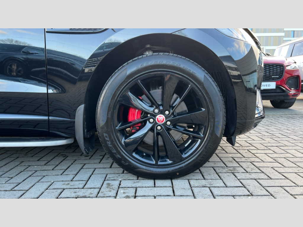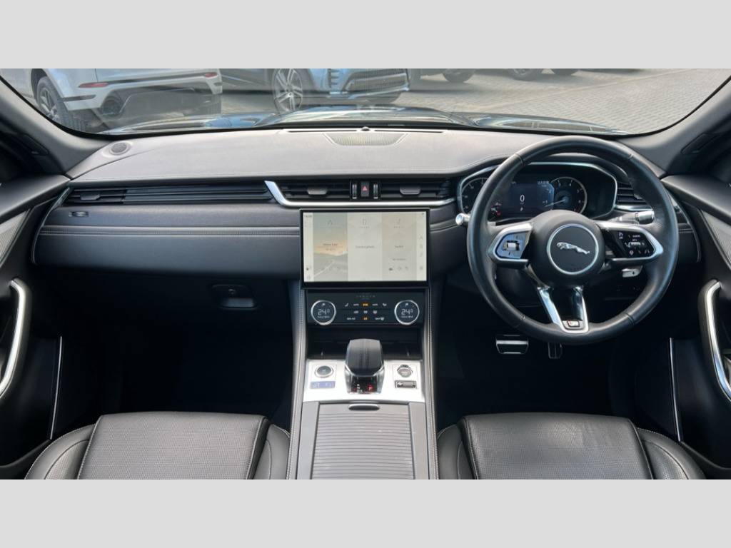 Jaguar F-PACE 2.0 P250 R-Dynamic Black 5dr Auto AWD 11.4" touchscreen, Android Auto, Apple car play, Bluetooth connectivity, Driver alert system, Driver condition monitor, eCall emergency call system, Eco driving style assistant, Electric power assisted steering, InControl remote, Jaguar Toggle shift selector, Lane departure warning system, Lane keep assist, Outside temperature gauge, Personalisation profile management, Pivi pro connected navigation system with app interface and media storage, Pro services and wifi hotspot, Push button starter, Service interval indicator, Speed proportional steering, Start up sequence with movement in dials and lighting, Traffic sign recognition with adaptive speed limiter, Trip computer, Voice control system, 8 speed automatic transmission, All terrain progress control, All Wheel Drive (AWD), Open differential with torque vectoring by braking, AM/FM radio, Bluetooth streaming, DAB Radio (Digital Audio Broadcasting), Dynamic volume control, InControl apps, InControl protect, iPod integration, 3 flash lane change indicators, Animated directional indicators, Approach Illumination, Auto dimming rear view mirror, Automatic headlights, Electric windows with one touch open/close and anti trap, F-Pace and R Dynamic badge, Gloss black door mirrors, Gloss black roof rails, Green tinted glass, Heated front windscreen + heated washer jets, Heated rear window with timer, Jaguar script and leaper, LED High level third brake light, LED tail lights, Non acoustic front windscreen, Privacy glass, R Dynamic badge on side door, Rain sensor windscreen wipers, Rear fog lights, Rear metal tread plates, Rear side wing doors, Rear wiper, Trailer stability assist, Variable front intermittent wipers, 12V power point front, 3 rear headrests, 3 seat bench in 2nd row, Air distribution speed, Bright metal foot pedals, Centre armrest console, Centre console with side storage, Deletion loadspace storage rails, Door sill tread plates, Fold flat front seats, Front centre armrest with storage compartment, Front door storage space, Glovebox finisher with jaguar script, Heated steering wheel, Hooks in loadspace, Illuminated glovebox, Interior front door handles with separate locking switches, ISOFIX on outer rear seats, Jaguar sense, Luggage tie downs in loadspace, Mist sensing, Multifunction steering wheel, Overhead lighting console, Overhead stowage for sunglasses, Passive front head restraints, Premium cabin lighting, Premium carpet mats, R-Dynamic branded leather steering wheel, Rear air vents, Rear armrest with twin cupholders, Rear centre headrest, Rear door storage space, Reversible boot floor, Satin chrome gearshift paddles, Shopping bag hook, Single front passenger seat, Sunvisors with illuminated vanity mirrors, Twin front cupholders with cover, Black Exterior pack - F Pace R-Dynamic/Sport, Exterior pack - F Pace R-Dynamic, Online Pack with data plan - F-Pace, 355mm front brakes and 325mm rear brakes, 3x3 point rear seatbelts, ABS, All surface progress control (ASPC), Brake pad warning light, DSC - Dynamic Stability Control, Electric parking brake (EPB), Emergency brake assist, Front airbags with passenger seat occupant detector, Front and rear seatbelt reminder, Front side airbags, Full length side window curtain airbag, Hill launch assist, Power operated child locks, Torque vectoring brake, Traction control, Tyre pressure monitoring system, Immobiliser, Keyless Start, Locking wheel nuts, Perimeter alarm, Remote central locking, Valet mode
