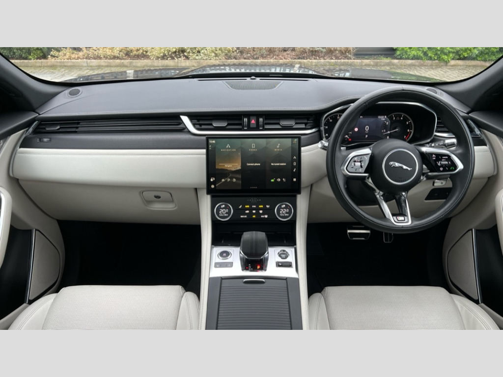 Jaguar F-PACE 2.0 P250 R-Dynamic HSE 5dr Auto AWD 11.4" touchscreen, Adaptive cruise control with steering assist, Android Auto, Apple car play, Blind spot assist, Bluetooth connectivity, Clear exit monitor, Driver alert system, Driver condition monitor, eCall emergency call system, Eco driving style assistant, Electric power assisted steering, InControl remote, Jaguar Toggle shift selector, Lane departure warning system, Lane keep assist, Outside temperature gauge, Personalisation profile management, Pivi pro connected navigation system with app interface and media storage, Pro services and wifi hotspot, Push button starter, Rear collision monitor, Rear traffic monitor, Service interval indicator, Speed proportional steering, Start up sequence with movement in dials and lighting, Traffic sign recognition with adaptive speed limiter, Trip computer, Voice control system, 8 speed automatic transmission, Adaptive dynamics, All terrain progress control, All Wheel Drive (AWD), Configurable dynamics, Open differential with torque vectoring by braking, AM/FM radio, Bluetooth streaming, DAB Radio (Digital Audio Broadcasting), Dynamic volume control, InControl apps, InControl protect, iPod integration, 3 flash lane change indicators, Animated directional indicators, Approach Illumination, Auto dimming rear view mirror, Automatic headlights, Body colour door mirrors, Electric heated/power fold memory door mirrors with approach lights and auto dimming driver side, Electric windows with one touch open/close and anti trap, F-Pace and R Dynamic badge, Green tinted glass, Heated front windscreen + heated washer jets, Heated rear window with timer, Illuminated metal tread plates with Jaguar script, Jaguar script and leaper, LED High level third brake light, LED tail lights, Metal load space scuff plates, Non acoustic front windscreen, R Dynamic badge on side door, Rain sensor windscreen wipers, Rear fog lights, Rear metal tread plates, Rear side wing doors, Rear wiper, Trailer stability assist, Variable front intermittent wipers, 12V power point front, 3 rear headrests, 3 seat bench in 2nd row, Air distribution speed, Bright metal foot pedals, Centre armrest console, Centre console with side storage, Deletion loadspace storage rails, Door sill tread plates, Electrically adjustable steering column, Fold flat front seats, Front centre armrest with storage compartment, Front door storage space, Glovebox finisher with jaguar script, Heated steering wheel, Hooks in loadspace, Illuminated glovebox, Interior front door handles with separate locking switches, ISOFIX on outer rear seats, Jaguar sense, Luggage tie downs in loadspace, Mist sensing, Multifunction steering wheel, Overhead lighting console, Overhead stowage for sunglasses, Passive front head restraints, Premium cabin lighting, Premium carpet mats, R-Dynamic branded leather steering wheel, Rear air vents, Rear armrest with twin cupholders, Rear centre headrest, Rear door storage space, Reversible boot floor, Satin chrome gearshift paddles, Shopping bag hook, Single front passenger seat, Sunvisors with illuminated vanity mirrors, Twin front cupholders with cover, Online Pack with data plan - F-Pace, 355mm front brakes and 325mm rear brakes, 3x3 point rear seatbelts, ABS, All surface progress control (ASPC), Brake pad warning light, DSC - Dynamic Stability Control, Electric parking brake (EPB), Emergency brake assist, Front airbags with passenger seat occupant detector, Front and rear seatbelt reminder, Front side airbags, Full length side window curtain airbag, Hill launch assist, Power operated child locks, Torque vectoring brake, Traction control, Tyre pressure monitoring system, Immobiliser, Keyless entry, Keyless start, Locking wheel nuts, Perimeter alarm, Remote central locking, Valet mode
