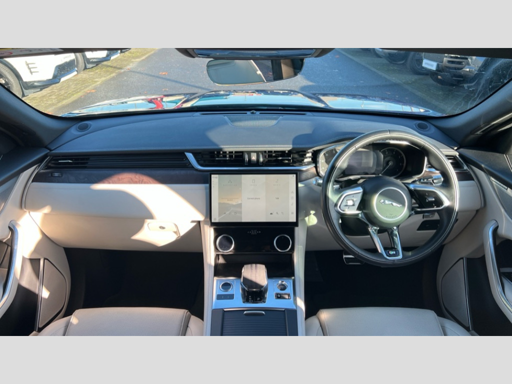 Jaguar F-PACE 2.0 P250 R-Dynamic SE 5dr Auto AWD 11.4" touchscreen, Android Auto, Apple car play, Blind spot assist, Bluetooth connectivity, Clear exit monitor, Driver alert system, Driver condition monitor, eCall emergency call system, Eco driving style assistant, Electric power assisted steering, InControl remote, Jaguar Toggle shift selector, Lane departure warning system, Lane keep assist, Outside temperature gauge, Personalisation profile management, Pivi pro connected navigation system with app interface and media storage, Pro services and wifi hotspot, Push button starter, Rear traffic monitor, Service interval indicator, Speed proportional steering, Start up sequence with movement in dials and lighting, Traffic sign recognition with adaptive speed limiter, Trip computer, Voice control system, 8 speed automatic transmission, All terrain progress control, All Wheel Drive (AWD), Open differential with torque vectoring by braking, AM/FM radio, Bluetooth streaming, DAB Radio (Digital Audio Broadcasting), Dynamic volume control, InControl apps, InControl protect, iPod integration, 3 flash lane change indicators, Animated directional indicators, Approach Illumination, Auto dimming rear view mirror, Automatic headlights, Body colour door mirrors, Electric heated/power fold memory door mirrors with approach lights and auto dimming driver side, Electric windows with one touch open/close and anti trap, F-Pace and R Dynamic badge, Green tinted glass, Heated front windscreen + heated washer jets, Heated rear window with timer, Jaguar script and leaper, LED High level third brake light, LED tail lights, Non acoustic front windscreen, R Dynamic badge on side door, Rain sensor windscreen wipers, Rear fog lights, Rear metal tread plates, Rear side wing doors, Rear wiper, Trailer stability assist, Variable front intermittent wipers, 12V power point front, 3 rear headrests, 3 seat bench in 2nd row, Air distribution speed, Bright metal foot pedals, Centre armrest console, Centre console with side storage, Deletion loadspace storage rails, Door sill tread plates, Fold flat front seats, Front centre armrest with storage compartment, Front door storage space, Glovebox finisher with jaguar script, Heated steering wheel, Hooks in loadspace, Illuminated glovebox, Interior front door handles with separate locking switches, ISOFIX on outer rear seats, Jaguar sense, Luggage tie downs in loadspace, Mist sensing, Multifunction steering wheel, Overhead lighting console, Overhead stowage for sunglasses, Passive front head restraints, Premium cabin lighting, Premium carpet mats, R-Dynamic branded leather steering wheel, Rear air vents, Rear armrest with twin cupholders, Rear centre headrest, Rear door storage space, Reversible boot floor, Satin chrome gearshift paddles, Shopping bag hook, Single front passenger seat, Sunvisors with illuminated vanity mirrors, Twin front cupholders with cover, Online Pack with data plan - F-Pace, 355mm front brakes and 325mm rear brakes, 3x3 point rear seatbelts, ABS, All surface progress control (ASPC), Brake pad warning light, DSC - Dynamic Stability Control, Electric parking brake (EPB), Emergency brake assist, Front airbags with passenger seat occupant detector, Front and rear seatbelt reminder, Front side airbags, Full length side window curtain airbag, Hill launch assist, Power operated child locks, Torque vectoring brake, Traction control, Tyre pressure monitoring system, Immobiliser, Keyless entry, Keyless Start, Locking wheel nuts, Perimeter alarm, Remote central locking, Valet mode
