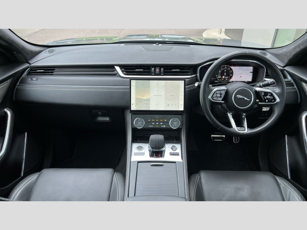 Jaguar F-PACE 2.0 P400e R-Dynamic HSE Black 5dr Auto AWD 11.4" touchscreen, Adaptive cruise control with steering assist, Android Auto, Apple car play, Blind spot assist, Bluetooth connectivity, Clear exit monitor, Driver alert system, Driver condition monitor, eCall emergency call system, Eco driving style assistant, Electric power assisted steering, InControl remote, Interactive driver display digital with 12" TFT display, Jaguar Toggle shift selector, Lane departure warning system, Lane keep assist, Outside temperature gauge, Personalisation profile management, Pivi pro connected navigation system with app interface and media storage, Pro services and wifi hotspot, Push button starter, Rear collision monitor, Rear traffic monitor, Service interval indicator, Speed proportional steering, Start up sequence with movement in dials and lighting, Traffic sign recognition with adaptive speed limiter, Trip computer, Voice control system, Wireless device charging, 7 kW onboard charger, 8 speed automatic transmission, AC/DC charging, Adaptive dynamics, All terrain progress control, All Wheel Drive (AWD), Configurable dynamics, Home charging cable, Open differential with torque vectoring by braking, Public charging cable, AM/FM radio, Bluetooth streaming, DAB Radio (Digital Audio Broadcasting), Dynamic volume control, InControl apps, InControl protect, iPod integration, 3 flash lane change indicators, AHBA and animated directional indicators, Approach Illumination, Auto dimming rear view mirror, Automatic headlights, Electric heated/power fold memory door mirrors with approach lights and auto dimming driver side, Electric windows with one touch open/close and anti trap, F-Pace and R Dynamic badge, Green tinted glass, Heated front windscreen + heated washer jets, Heated rear window with timer, Illuminated metal tread plates with Jaguar script, Jaguar script and leaper, LED High level third brake light, LED tail lights, Metal load space scuff plates, Non acoustic front windscreen, P400e AWD badge, Privacy glass (rear side windows and rear screen), R Dynamic badge on side door, Rain sensor windscreen wipers, Rear fog lights, Rear metal tread plates, Rear side wing doors, Rear wiper, Trailer stability assist, Variable front intermittent wipers, 12V power point front, 3 rear headrests, 3 seat bench in 2nd row, Additional power sockets - Two additional USB sockets in rear centre console and one 12V socket in trunk, Air distribution speed, Bright metal foot pedals, Centre armrest console, Centre console with side storage, Configurable cabin lighting, Deletion loadspace storage rails, Door sill tread plates, Ebony suede cloth headlining, Electrically adjustable steering column, Fold flat front seats, Front centre armrest with storage compartment, Front door storage space, Glovebox finisher with jaguar script, Heated steering wheel, Hooks in loadspace, Illuminated glovebox, Interior front door handles with separate locking switches, ISOFIX on outer rear seats, Jaguar sense, Leather steering wheel, Luggage tie downs in loadspace, Mist sensing, Multifunction steering wheel, Overhead lighting console, Overhead stowage for sunglasses, Passive front head restraints, Premium carpet mats, Rear air vents, Rear armrest with twin cupholders, Rear centre headrest, Rear door storage space, Reversible boot floor, Satin chrome gearshift paddles, Shopping bag hook, Single front passenger seat, Sunvisors with illuminated vanity mirrors, Twin front cupholders with cover, Online Pack with data plan - F-Pace, 380mm front brakes and 325mm rear brakes, 3x3 point rear seatbelts, ABS, All surface progress control (ASPC), Brake pad warning light, DSC - Dynamic Stability Control, Electric parking brake (EPB), Emergency brake assist, Front airbags with passenger seat occupant detector, Front and rear seatbelt reminder, Front side airbags, Full length side window curtain airbag, Hill launch assist, Power operated child locks, Traction control, Tyre pressure monitoring system, Immobiliser, Keyless entry, Keyless Start, Locking wheel nuts, Perimeter alarm, Remote central locking, Valet mode