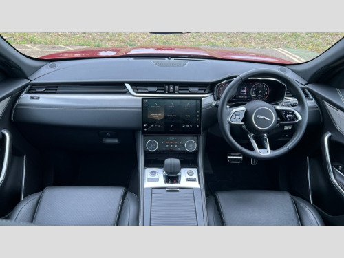 Jaguar F-PACE 2.0 P400e R-Dynamic SE Black 5dr Auto AWD 11.4" touchscreen, Android Auto, Apple car play, Blind spot assist, Bluetooth connectivity, Clear exit monitor, Driver alert system, Driver condition monitor, eCall emergency call system, Eco driving style assistant, Electric power assisted steering, InControl remote, Interactive driver display digital with 12" TFT display, Jaguar Toggle shift selector, Lane departure warning system, Lane keep assist, Outside temperature gauge, Personalisation profile management, Pivi pro connected navigation system with app interface and media storage, Pro services and wifi hotspot, Push button starter, Rear traffic monitor, Service interval indicator, Speed proportional steering, Start up sequence with movement in dials and lighting, Traffic sign recognition with adaptive speed limiter, Trip computer, Voice control system, Wireless device charging, 7 kW onboard charger, 8 speed automatic transmission, AC/DC charging, Adaptive dynamics, All terrain progress control, All Wheel Drive (AWD), Configurable dynamics, Home charging cable, Open differential with torque vectoring by braking, Public charging cable, AM/FM radio, Bluetooth streaming, DAB Radio (Digital Audio Broadcasting), Dynamic volume control, InControl apps, InControl protect, iPod integration, 3 flash lane change indicators, Animated directional indicators, Approach Illumination, Auto dimming rear view mirror, Auto high beam assist, Automatic headlights, Electric heated/power fold memory door mirrors with approach lights and auto dimming driver side, Electric windows with one touch open/close and anti trap, F-Pace and R Dynamic badge, Green tinted glass, Heated front windscreen + heated washer jets, Heated rear window with timer, Jaguar script and leaper, LED High level third brake light, LED tail lights, Metal load space scuff plates, Non acoustic front windscreen, P400e AWD badge, Privacy glass, R Dynamic badge on side door, Rain sensor windscreen wipers, Rear fog lights, Rear metal tread plates, Rear side wing doors, Rear wiper, Trailer stability assist, Variable front intermittent wipers, 12V power point front, 3 rear headrests, 3 seat bench in 2nd row, Additional power sockets - Two additional USB sockets in rear centre console and one 12V socket in trunk, Air distribution speed, Bright metal foot pedals, Centre armrest console, Centre console with side storage, Configurable cabin lighting, Deletion loadspace storage rails, Door sill tread plates, Fold flat front seats, Front centre armrest with storage compartment, Front door storage space, Glovebox finisher with jaguar script, Heated steering wheel, Hooks in loadspace, Illuminated glovebox, Interior front door handles with separate locking switches, ISOFIX on outer rear seats, Jaguar sense, Leather steering wheel, Luggage tie downs in loadspace, Mist sensing, Multifunction steering wheel, Overhead lighting console, Overhead stowage for sunglasses, Passive front head restraints, Premium carpet mats, Rear air vents, Rear armrest with twin cupholders, Rear centre headrest, Rear door storage space, Reversible boot floor, Satin chrome gearshift paddles, Shopping bag hook, Single front passenger seat, Sunvisors with illuminated vanity mirrors, Twin front cupholders with cover, Online Pack with data plan - F-Pace, 380mm front brakes and 325mm rear brakes, 3x3 point rear seatbelts, ABS, All surface progress control (ASPC), Brake pad warning light, DSC - Dynamic Stability Control, Electric parking brake (EPB), Emergency brake assist, Front airbags with passenger seat occupant detector, Front and rear seatbelt reminder, Front side airbags, Full length side window curtain airbag, Hill launch assist, Power operated child locks, Traction control, Tyre pressure monitoring system, Immobiliser, Keyless entry, Keyless Start, Locking wheel nuts, Perimeter alarm, Remote central locking, Valet mode