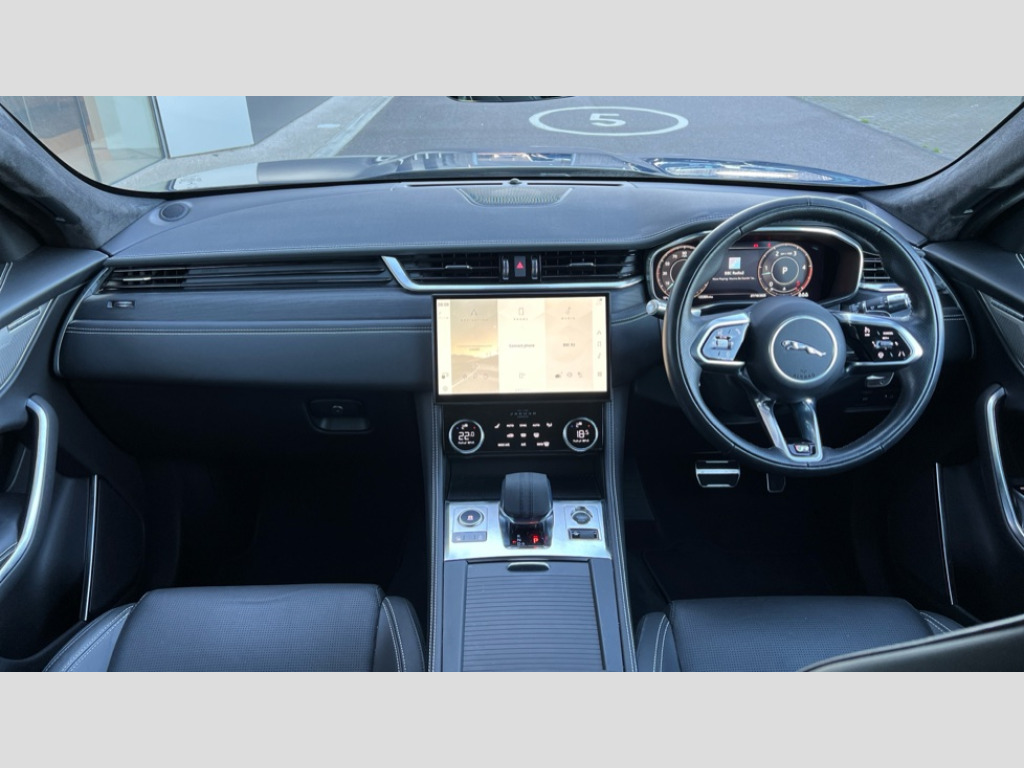 Jaguar F-PACE 3.0 D300 R-Dynamic HSE 5dr Auto AWD 11.4" touchscreen, Adaptive cruise control with steering assist, Android Auto, Apple car play, Blind spot assist, Bluetooth connectivity, Clear exit monitor, Driver alert system, Driver condition monitor, eCall emergency call system, Eco driving style assistant, Electric power assisted steering, InControl remote, Jaguar Toggle shift selector, Lane departure warning system, Lane keep assist, Outside temperature gauge, Personalisation profile management, Pivi pro connected navigation system with app interface and media storage, Pro services and wifi hotspot, Push button starter, Rear collision monitor, Rear traffic monitor, Service interval indicator, Speed proportional steering, Start up sequence with movement in dials and lighting, Traffic sign recognition with adaptive speed limiter, Trip computer, Voice control system, 8 speed automatic transmission, Adaptive dynamics, All terrain progress control, All Wheel Drive (AWD), Configurable dynamics, Open differential with torque vectoring by braking, AM/FM radio, Bluetooth streaming, DAB Radio (Digital Audio Broadcasting), Dynamic volume control, InControl apps, InControl protect, iPod integration, 3 flash lane change indicators, Animated directional indicators, Approach Illumination, Auto dimming rear view mirror, Automatic headlights, Body colour door mirrors, Electric heated/power fold memory door mirrors with approach lights and auto dimming driver side, Electric windows with one touch open/close and anti trap, F-Pace and R Dynamic badge, Green tinted glass, Heated front windscreen + heated washer jets, Heated rear window with timer, Illuminated metal tread plates with Jaguar script, Jaguar script and leaper, LED High level third brake light, LED tail lights, Metal load space scuff plates, Non acoustic front windscreen, R Dynamic badge on side door, Rain sensor windscreen wipers, Rear fog lights, Rear metal tread plates, Rear side wing doors, Rear wiper, Trailer stability assist, Variable front intermittent wipers, 12V power point front, 3 rear headrests, 3 seat bench in 2nd row, Air distribution speed, Bright metal foot pedals, Centre armrest console, Centre console with side storage, Deletion loadspace storage rails, Door sill tread plates, Electrically adjustable steering column, Fold flat front seats, Front centre armrest with storage compartment, Front door storage space, Glovebox finisher with jaguar script, Heated steering wheel, Hooks in loadspace, Illuminated glovebox, Interior front door handles with separate locking switches, ISOFIX on outer rear seats, Jaguar sense, Luggage tie downs in loadspace, Mist sensing, Multifunction steering wheel, Overhead lighting console, Overhead stowage for sunglasses, Passive front head restraints, Premium cabin lighting, Premium carpet mats, R-Dynamic branded leather steering wheel, Rear air vents, Rear armrest with twin cupholders, Rear centre headrest, Rear door storage space, Reversible boot floor, Satin chrome gearshift paddles, Shopping bag hook, Single front passenger seat, Sunvisors with illuminated vanity mirrors, Twin front cupholders with cover, Online Pack with data plan - F-Pace, 380mm front brakes and 325mm rear brakes, 3x3 point rear seatbelts, ABS, All surface progress control (ASPC), Brake pad warning light, DSC - Dynamic Stability Control, Electric parking brake (EPB), Emergency brake assist, Front airbags with passenger seat occupant detector, Front and rear seatbelt reminder, Front side airbags, Full length side window curtain airbag, Hill launch assist, Power operated child locks, Torque vectoring brake, Traction control, Tyre pressure monitoring system, Immobiliser, Keyless entry, Keyless Start, Locking wheel nuts, Perimeter alarm, Remote central locking, Valet mode