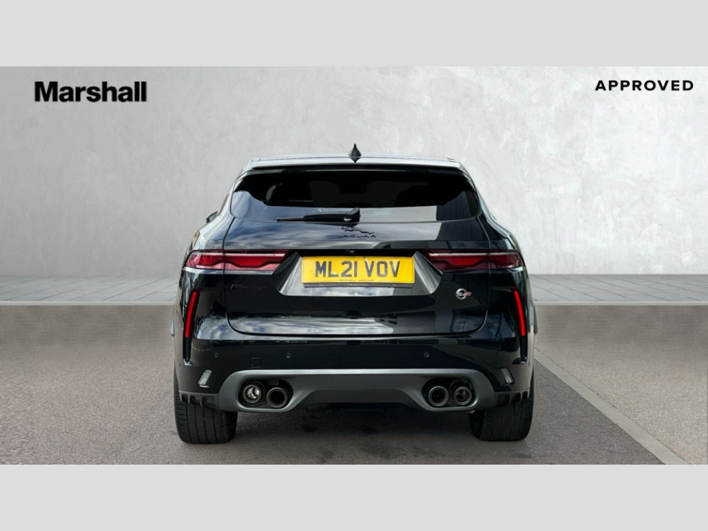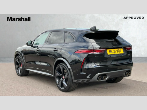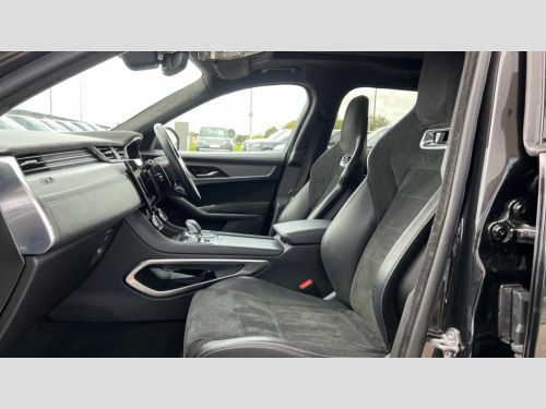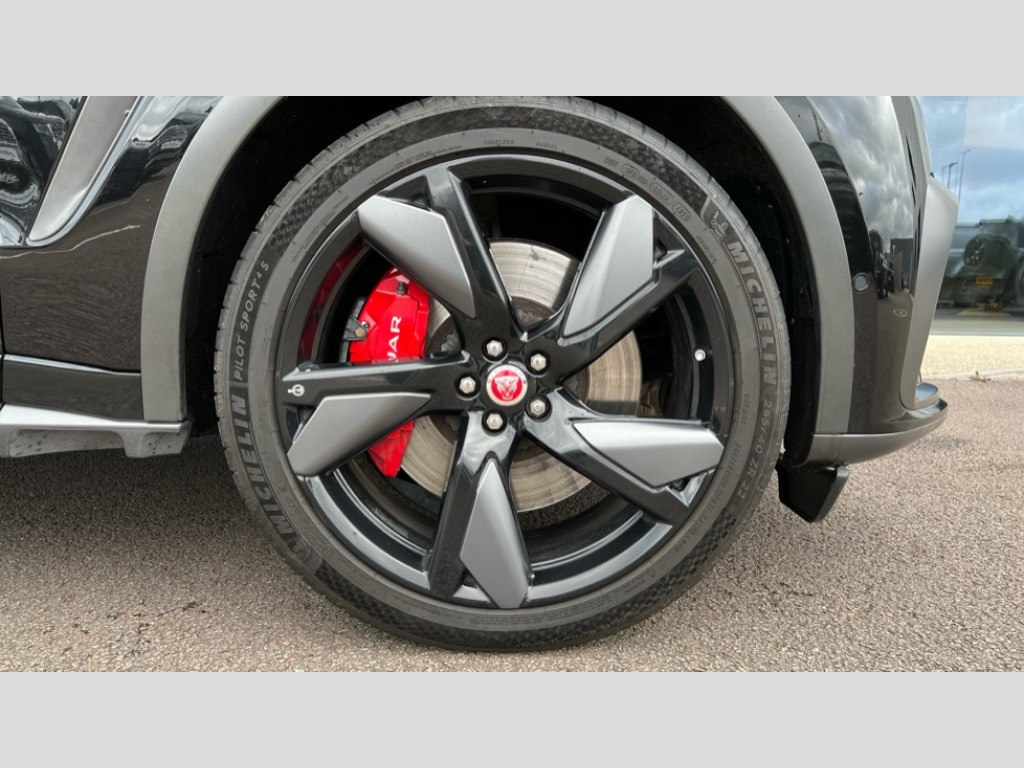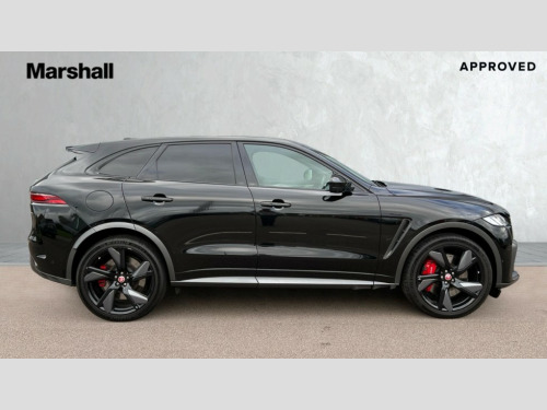 Jaguar F-PACE 5.0 V8 550 SVR 5dr Auto AWD 11.4" touchscreen, 3D surround camera, Adaptive cruise control, Android Auto, Apple car play, Blind spot assist, Bluetooth connectivity, Clear exit monitor, Driver alert system, Driver condition monitor, Eco driving style assistant, Electric power assisted steering, InControl remote, Interactive Driver display instrument cluster, Jaguar Toggle shift selector, Lane departure warning system, Lane keep assist, Outside temperature gauge, Personalisation profile management, Pivi pro connected navigation system with app interface and media storage, Power tailgate/boot lid, Pro services and wifi hotspot, Push button starter, Rear collision monitor, Rear traffic monitor, Service interval indicator, Speed proportional steering, Start up sequence with movement in dials and lighting, Traffic sign recognition with adaptive speed limiter, Trip computer, Voice control system, 8 speed automatic transmission, Adaptive dynamics, All terrain progress control, All Wheel Drive (AWD), Configurable dynamics, Electronic active differential with torque vectoring by braking, AM/FM radio, Bluetooth streaming, DAB Radio (Digital Audio Broadcasting), Dynamic volume control, InControl apps, InControl protect, iPod integration, 'SVR' badge, 3 flash lane change indicators, Animated directional indicators, Approach Illumination, Auto dimming rear view mirror, Auto high beam assist, Body colour door mirrors, Electric heated/power fold memory door mirrors with approach lights and auto dimming driver side, Electric windows with one touch open/close and anti trap, F-Pace badge, Front and rear wheel arch spats, Green tinted glass, Headlight power wash, Heated front windscreen + heated washer jets, Heated rear window with timer, Jaguar script and leaper, LED tail lights, Non acoustic front windscreen, Rain sensor windscreen wipers, Rear fog lights, Rear metal tread plates, Rear wiper, SVR front bumpers with lower meshes, Switchable active sports exhaust, Trailer stability assist, Variable front intermittent wipers, 12V power point front, 14 way electric heated and cooled driver and passenger memory, 3 rear headrests, 40:20:40 SVR folding, heated rear seats with centre armrest, Air distribution speed, Bright metal foot pedals, Cabin lighting, Centre armrest console, Centre console with side storage, Door sill tread plates, Ebony suede cloth headlining, Electrically adjustable steering column, Fold flat front seats, Front centre armrest with storage compartment, Front door storage space, Front headrests with SVR embossing, Glovebox finisher with jaguar script, Heated steering wheel, Hooks in loadspace, Illuminated glovebox, Interior front door handles with separate locking switches, ISOFIX on outer rear seats, Jaguar sense, Luggage tie downs in loadspace, Mist sensing, Multifunction steering wheel, Overhead lighting console, Overhead stowage for sunglasses, Passive front head restraints, Performace style individual rear seats for outer positions, Rear air vents, Rear armrest with twin cupholders, Rear centre headrest, Rear door storage space, Reversible boot floor, Satin chrome gearshift paddles, Shopping bag hook, Sunvisors with illuminated vanity mirrors, SVR front fender with functional vents, SVR leather steering wheel with monogram dimple finish and drive selector, SVR lower valance/splitter, SVR luxury carpet mats, SVR vented bonnet, Twin front cupholders with cover, Online Pack with data plan - F-Pace, SV Exterior pack - F Pace SVR, 395mm front and rear brakes, 3x3 point rear seatbelts, ABS, All surface progress control (ASPC), Brake pad warning light, DSC - Dynamic Stability Control, Electric parking brake (EPB), Front airbags with passenger seat occupant detector, Front and rear seatbelt reminder, Front side airbags, Full length side window curtain airbag, Hill launch assist, Power operated child locks, Red brake calipers, Torque vectoring brake, Traction control, Tyre pressure monitoring system, Immobiliser, Keyless entry, Keyless Start, Locking wheel nuts, Perimeter alarm, Remote central locking, Valet mode, Aluminium technical veneer, Summer tyres, Tyre repair system