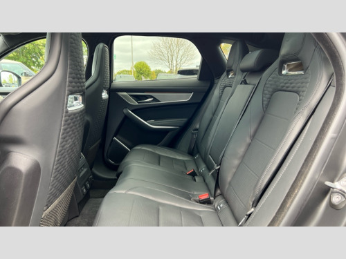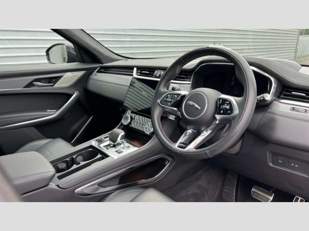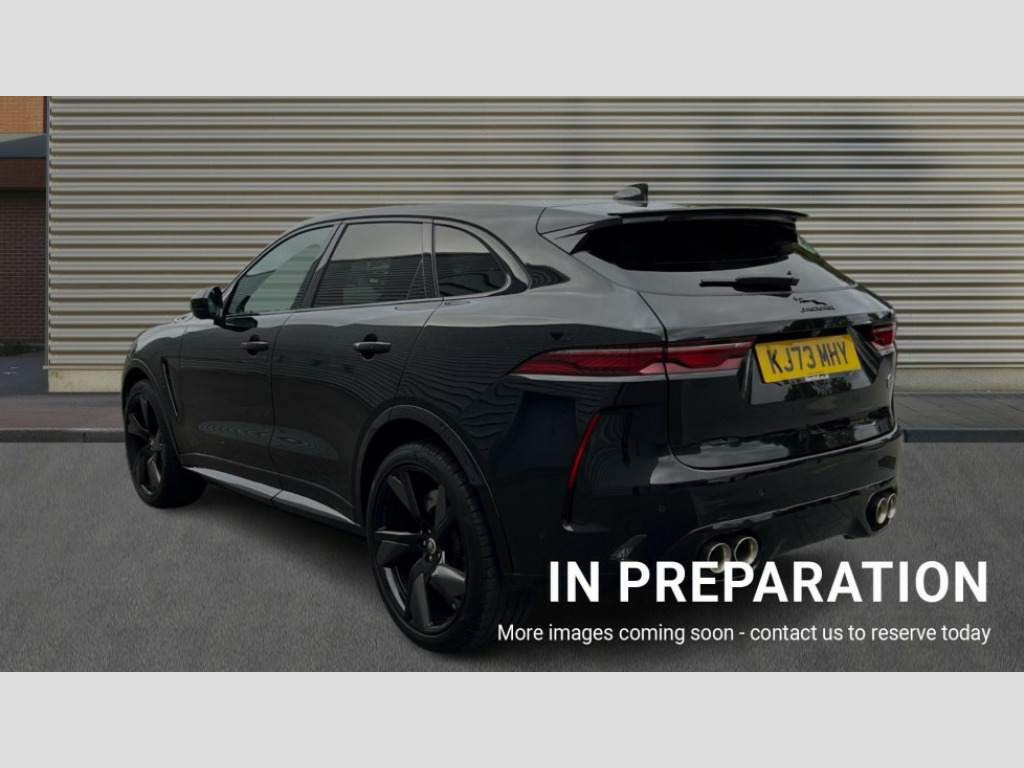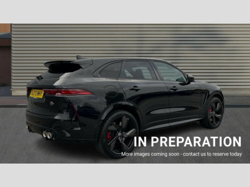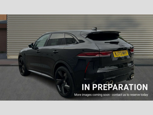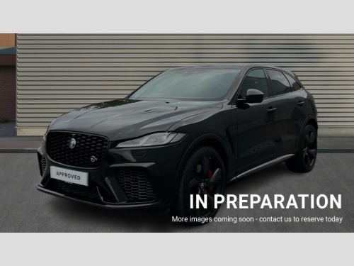 Jaguar F-PACE 5.0 V8 550 SVR 5dr Auto AWD [Panoramic roof] 11.4" touchscreen, 3D surround camera, Adaptive cruise control with steering assist, Android Auto, Apple car play, Blind spot assist, Bluetooth connectivity, Clear exit monitor, Driver alert system, Driver condition monitor, eCall emergency call system, Eco driving style assistant, Electric power assisted steering, InControl remote, Interactive driver display digital with 12" TFT display, Jaguar Toggle shift selector, Lane departure warning system, Lane keep assist, Outside temperature gauge, Personalisation profile management, Pivi pro connected navigation system with app interface and media storage, Power tailgate/boot lid, Pro services and wifi hotspot, Push button starter, Rear collision monitor, Rear traffic monitor, Service interval indicator, Speed proportional steering, Start up sequence with movement in dials and lighting, Traffic sign recognition with adaptive speed limiter, Trip computer, Voice control system, 8 speed automatic transmission, Adaptive dynamics, All terrain progress control, All Wheel Drive (AWD), Configurable dynamics, Electronic active differential with torque vectoring by braking, AM/FM radio, Bluetooth streaming, DAB Radio (Digital Audio Broadcasting), Dynamic volume control, InControl apps, InControl protect, iPod integration, 'SVR' badge, 3 flash lane change indicators, Animated directional indicators, Approach Illumination, Auto dimming rear view mirror, Automatic headlights, Electric heated/power fold memory door mirrors with approach lights and auto dimming driver side, Electric windows with one touch open/close and anti trap, Front and rear wheel arch spats, Green tinted glass, Heated front windscreen + heated washer jets, Heated rear window with timer, Illuminated metal tread plates with Jaguar script, Jaguar script and leaper, LED High level third brake light, LED tail lights, Metal load space scuff plates, Non acoustic front windscreen, Privacy glass, Rain sensor windscreen wipers, Rear fog lights, Rear metal tread plates, Rear side wing doors, Rear wiper, SVR front bumpers with lower meshes, Switchable active sports exhaust, Trailer stability assist, Variable front intermittent wipers, 12V power point front, 14 way electric heated and cooled driver and passenger memory performance front seats, 3 rear headrests, 3 seat bench in 2nd row, 40:20:40 SVR folding, heated rear seats with centre armrest, Air distribution speed, Bright metal foot pedals, Centre armrest console, Centre console with side storage, Configurable cabin lighting, Deletion loadspace storage rails, Door sill tread plates, Ebony suede cloth headlining, Electrically adjustable steering column, Fold flat front seats, Front centre armrest with storage compartment, Front door storage space, Front headrests with SVR embossing, Glovebox finisher with jaguar script, Heated steering wheel, Hooks in loadspace, Illuminated glovebox, Interior front door handles with separate locking switches, ISOFIX on outer rear seats, Jaguar sense, Luggage tie downs in loadspace, Mist sensing, Multifunction steering wheel, Overhead lighting console, Overhead stowage for sunglasses, Passive front head restraints, Performace style individual rear seats for outer positions, Rear air vents, Rear armrest with twin cupholders, Rear centre headrest, Rear door storage space, Reversible boot floor, Satin chrome gearshift paddles, Shopping bag hook, Single front passenger seat, Sunvisors with illuminated vanity mirrors, SVR front fender with functional vents, SVR leather steering wheel, SVR lower valance/splitter, SVR luxury carpet mats, SVR vented bonnet, Twin front cupholders with cover, Online Pack with data plan - F-Pace, 395mm front and rear brakes, 3x3 point rear seatbelts, ABS, All surface progress control (ASPC), Brake pad warning light, DSC - Dynamic Stability Control, Electric parking brake (EPB), Emergency brake assist, Front airbags with passenger seat occupant detector, Front and rear seatbelt reminder, Front side airbags, Full length side window curtain airbag, Hill launch assist, Power operated child locks, Red brake calipers, Traction control, Tyre pressure monitoring system, Immobiliser, Keyless entry, Keyless Start, Locking wheel nuts, Perimeter alarm, Remote central locking, Valet mode, Summer tyres