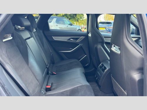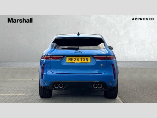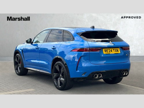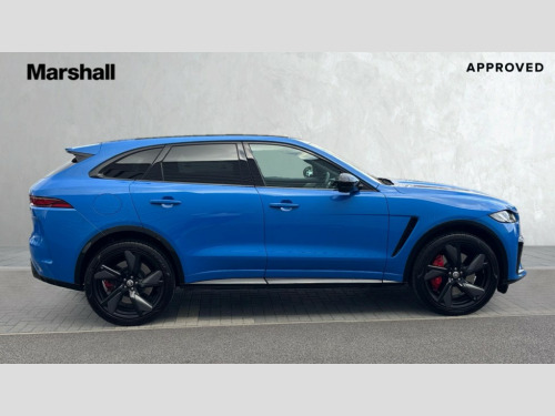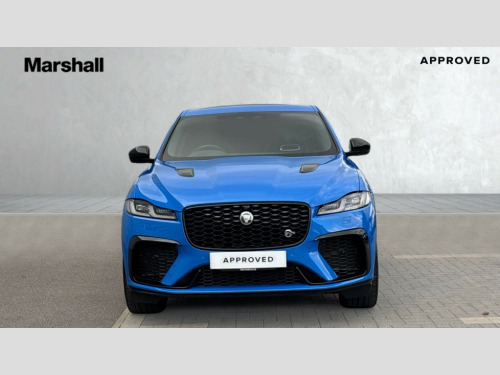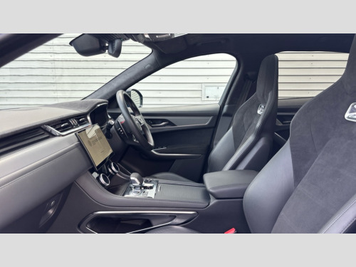 Jaguar F-PACE 5.0 V8 575 SVR Edition 5dr Auto AWD 11.4" touchscreen, 3D surround camera, Adaptive cruise control with steering assist, Android Auto, Apple car play, Blind spot assist, Bluetooth connectivity, Clear exit monitor, Driver alert system, Driver condition monitor, eCall emergency call system, Eco driving style assistant, Electric power assisted steering, InControl remote, Interactive driver display digital with 12" TFT display, Jaguar drive control with adaptive surface response, Jaguar Toggle shift selector, Lane departure warning system, Lane keep assist, Outside temperature gauge, Personalisation profile management, Pivi pro connected navigation system with app interface and media storage, Power tailgate/boot lid, Pro services and wifi hotspot, Push button starter, Rear collision monitor, Rear traffic monitor, Service interval indicator, Speed proportional steering, Start up sequence with movement in dials and lighting, Traffic sign recognition with adaptive speed limiter, Trip computer, Voice control system, Wireless device charging, 8 speed automatic transmission, Adaptive dynamics, All terrain progress control, All Wheel Drive (AWD), Configurable dynamics, Electronic active differential with torque vectoring by braking, AM/FM radio, Bluetooth streaming, DAB Radio (Digital Audio Broadcasting), Dynamic volume control, InControl apps, InControl protect, iPod integration, Meridian 650W surround sound audio system with 17 speakers, subwoofer and active road noise cancellation, 'SVR' badge, 3 flash lane change indicators, AHBA and animated directional indicators, Approach Illumination, Auto dimming rear view mirror, Automatic headlights, Electric heated/power fold memory door mirrors with approach lights and auto dimming driver side, Electric windows with one touch open/close and anti trap, Front and rear wheel arch spats, Green tinted glass, Heated front windscreen + heated washer jets, Heated rear window with timer, Illuminated metal tread plates with Jaguar script, Jaguar script and leaper, LED High level third brake light, LED tail lights, Metal load space scuff plates, Non acoustic front windscreen, Privacy glass (rear side windows and rear screen), Rain sensor windscreen wipers, Rear fog lights, Rear metal tread plates, Rear side wing doors, Rear wiper, SVR front bumpers with lower meshes, Switchable active sports exhaust, Trailer stability assist, Variable front intermittent wipers, 12V power point front, 14 way electric heated and cooled driver and passenger memory performance front seats, 3 rear headrests, 3 seat bench in 2nd row, 40:20:40 SVR folding, heated rear seats with centre armrest, Additional power sockets - Two additional USB sockets in rear centre console and one 12V socket in trunk, Air distribution speed, Bright metal foot pedals, Centre armrest console, Centre console with side storage, Configurable cabin lighting, Deletion loadspace storage rails, Door sill tread plates, Ebony suede cloth headlining, Electrically adjustable steering column, Fold flat front seats, Front centre armrest with storage compartment, Front door storage space, Front headrests with SVR embossing, Glovebox finisher with jaguar script, Heated steering wheel, Hooks in loadspace, Illuminated glovebox, Interior front door handles with separate locking switches, ISOFIX on outer rear seats, Jaguar sense, Luggage tie downs in loadspace, Mist sensing, Multifunction steering wheel, Overhead lighting console, Overhead stowage for sunglasses, Passive front head restraints, Performace style individual rear seats for outer positions, Rear air vents, Rear armrest with twin cupholders, Rear centre headrest, Rear door storage space, Reversible boot floor, Satin chrome gearshift paddles, Shopping bag hook, Single front passenger seat, Sunvisors with illuminated vanity mirrors, SVR front fender with functional vents, SVR leather steering wheel with Black R logo, SVR lower valance/splitter, SVR luxury carpet mats, SVR vented bonnet, Twin front cupholders with cover, Online Pack with data plan - F-Pace, 395mm front and rear brakes, 3x3 point rear seatbelts, ABS, All surface progress control (ASPC), Brake pad warning light, DSC - Dynamic Stability Control, Electric parking brake (EPB), Emergency brake assist, Front airbags with passenger seat occupant detector, Front and rear seatbelt reminder, Front side airbags, Full length side window curtain airbag, Hill launch assist, Power operated child locks, Red brake calipers, Traction control, Tyre pressure monitoring system, Immobiliser, Keyless entry, Keyless Start, Locking wheel nuts, Perimeter alarm, Remote central locking, Valet mode, Summer tyres