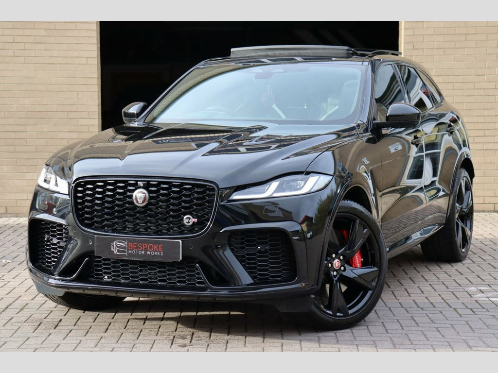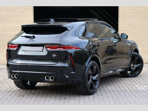 We are proud to share this 2022 (72 Reg) Jaguar F Pace SVR 5.0 P550, which is finished in Santorini Black. Our example has had 2 owners from new, only covered 20,000 miles and boasts over £7,000 in some fantastic optional extras. Some of the highlighted spec on this car includes: Sliding Panoramic Roof, Head Up Display, Deployable Side Steps, 22" Forged Alloys, Carbon Fibre Interior Trim, Black Exterior Pack, Meridian Surround Sound, Heated Steering Wheel and Wireless Charging. **Cash Price £57,995.00, £5,959.00 Deposit, 48 Monthly Payments of £849.99, Guaranteed Future Minimum Value of £26,742.72, Based on 8,000 Miles Per Annum at 9.9% APR** (a) **FOR AUTOTRADER APP USERS, PLEASE SEE THE BELOW TAB 'THIS CAR COMES WITH' TO SEE THE OTHER SPEC'S ON THIS CAR OR VISIT OUR WEBSITE FOR MORE INFO** Sliding Panoramic Roof, Black Exterior Pack, Carbon Fibre Trim Finisher, 22in Alloy Wheels - Forged - 5 Split-Spo, Head-Up Display, Secure Tracker Pro, Privacy Glass, Meridian Surround Sound System, Premium Cabin Lighting, Wireless Device Charging with Phone Sign, Santorini Black, Leather and Suedecloth - Ebony Suedeclot