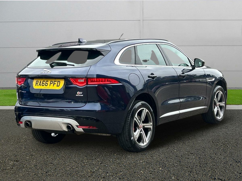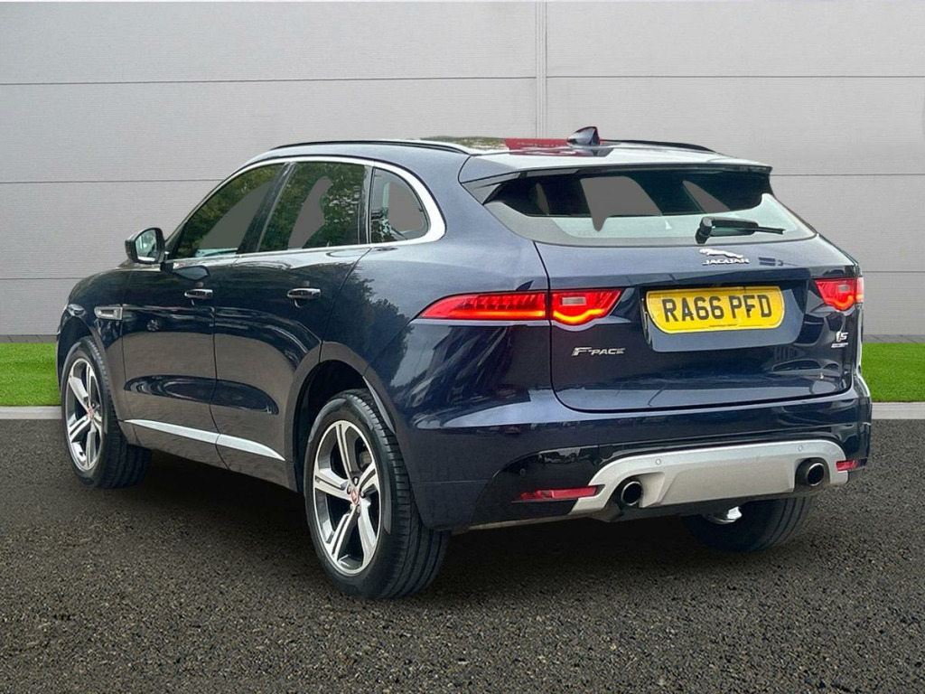 Driver Convenience,Brake Pad Wear Indicator,Configurable Dynamics,Cruise Control with Speed Limiter,ECO Driving Style Assistant,Front Parking Aid,JaguarDrive Control,Lane Departure Warning,Outside Temperature Gauge,Rear Parking Aid,Rear View Camera,Start Up Sequence with Movement - Dials and Lighting,Traffic Sign Recognition with Intelligent Speed Limiter,Trip Computer,Tyre Pressure Monitoring SystemEntertainment,5in Display with Instrument Panel,Bluetooth Audio Streaming,Bluetooth Telephone Connectivity,Digital Audio Broadcast - DAB - Radio,Dynamic Volume Control,InControl Apps,Meridian Sound System - 380W,Navigation System,Power Sockets,Remote Premium for Warranty Period,Single View 8in Touchscreen for Touch,Wi-Fi HotspotExterior,20in Alloy Wheels - 5 Spoke Style 5035 with Grey Diamond Turned Finish,Auto-Dimming - Power Fold - Heated Door Mirrors with Approach Lights,Door Mirrors - Body Coloured,Dual Tailpipes with 84mm Finishers,Electric Windows - Front and Rear with One-Touch Open-Close and Anti-Trap,Gloss Black Roof Rails,Gloss Black Side Window Surround,Grained Black Radiator Grille with Satin Chrome Surround,Green Tinted Glass,Heated Front Windscreen,Heated Rear Window,Jaguar Script and Leaper,Jaguar Tyre Repair System,Rear F-Pace Badge,Rear Fog Lights,Red Brake Calipers,S Badge Front and S AWD Badge Rear,S Body Kit,Satin Chrome Side Power VentsInterior,10-Way Electric Front Seats,2-Zone Climate Control,3-Flash Lane Change Indicators,40-20-40 Split Fold Rear Seat,Ambient Interior Lighting,Auto-Dimming Interior Rear View Mirror,Bright Metal Pedals,Centre Console - Side Stowage,Centre Console - Storage Surround Finishers - Satin Chrome,Centre Console with Armrest,Door Trim - Luxtec,Ebony Morzine Headlining,Front Headrests - S Branded Embossing,Heated Front Seats,Hook in Loadspace,Interior Front Door Handles with Separate Locking Switches,Loadbay - Luggage Tie Downs,Lockable Glovebox with Jaguar Script Finisher,Luxtec Wrapped Instrument Panel Topper,Manually Adjustable Steering Column,Meshed Aluminium Trim Finisher,Metal Treadplates with S Branding,Overhead Lighting Console,Passive Front Head Restraints,Power Boot Lid,Power Tailgate,Premium Carpet Mats,Protect for Warranty Period,Push Button Start,Rain Sensing Windscreen Wipers,Rear Air Vents,Rear Armrest with Twin Cupholders,Reversible Boot Floor - Carpet-Rubber,S Branded Soft Grain Leather Steering Wheel,Satin Chrome Touchscreen Surround,Seats - Sports,Second Row Centre Headrest,Steering Wheel - Multi-Function,Steering Wheel - Satin Chrome Paddles,Twin Front Cupholders with Cover,Valet Mode,Variable Intermittent WipersEntertainment,5in Display with Instrument Panel,Bluetooth Audio Streaming,Bluetooth Telephone Connectivity,Digital Audio Broadcast - DAB - Radio,Dynamic Volume Control,InControl Apps,Meridian Sound System - 380W,Navigation System,Power Sockets,Remote Premium for Warranty Period,Single View 8in Touchscreen for Touch,Wi-Fi Hotspot