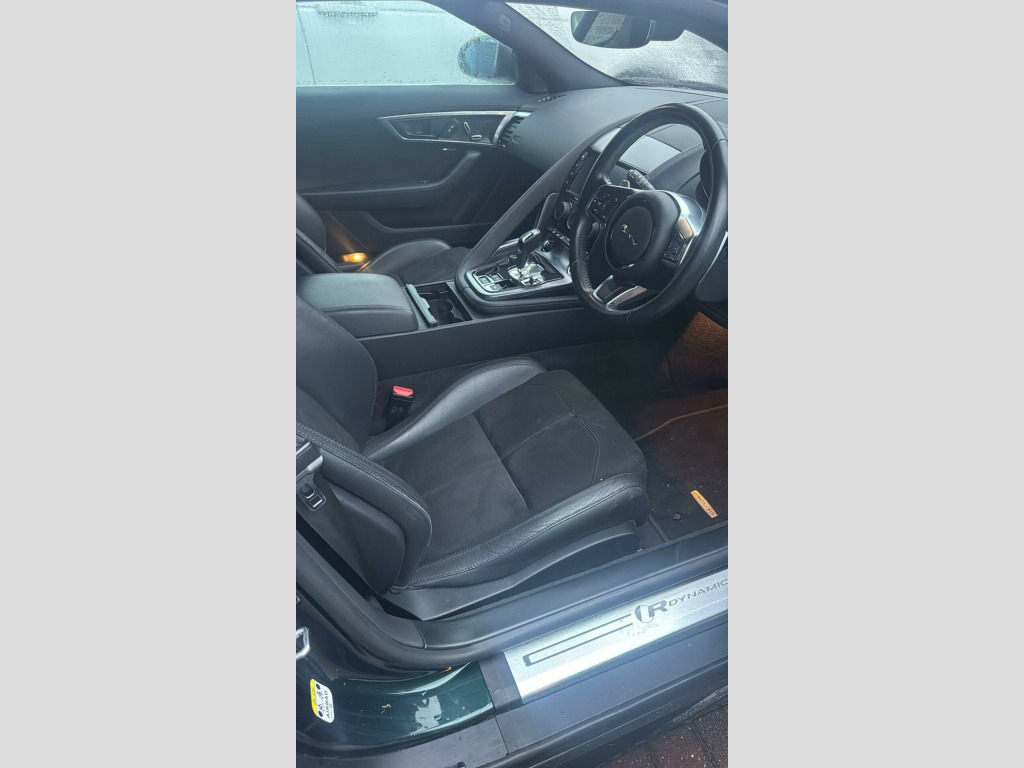 2018 18 Jaguar F-Type 2.0i R-Dynamic Auto finished in timeless British Racing Green Metallic with Grained leather/suedecloth interior. Just 18600 miles covered by two owners which is supported with Jaguar and independent service history. Four services completed including additional items such as fuel filter, brake fluid change and spark plugs replaced as part of the latest service performed in house ready for the next owner. This car is presented in fantastic condition inside and out as you would expect from a low mileage example - bodywork, alloys and interior all very well kept and lightly used. Supplied with all correct documentation, handbooks etc and subjected to our usual strict pre delivery inspection and preparation process ensuring all cosmetic and mechanical elements are in good order including matching Pirelli P Zero tyres. Well equipped with a long list of features, highlights including: Reverse Park Camera, 19in Alloy Wheels - 7 Split-Spoke Style 7013 - Silver, LED Headlights with Signature Daytime Running Lights and Adaptive Front Lighting, LED Tail Lights, Meridian Sound System - 380W, Navigation Pro System, Touch Pro System, 8in Touchscreen, 5in Display with Instrument Panel - 190mph-300kmh, 6-Way Electric Front Seats, Seats - Sports, Leather Steering Wheel, Steering Wheel - Silver Paddles, Autonomous Emergency Braking, Lane Departure Warning, Dynamic Stability Control - DSC, Cruise Control with Speed Limiter, Rear Parking Aid, Switchable Active Sports Exhaust, Deployable Boot Lid Spoiler, Fixed Aluminium Roof, InControl Apps, InControl Remote Premium for Warranty Period, Rain Sensing Windscreen Wipers, Single Zone Automatic Climate Control and more. , DELIVERY: Nationwide delivery available. The first 100 miles are free of charge (driven delivery). Thereafter, delivery is charged at £1.99+vat per mile. Please contact us for further details or a personalised quotation including trailered delivery options. , PAYMENT: We accept debit card payments for amounts up to £500. For payments exceeding this amount, we accept BACS (bank transfer) only. Please ensure that funds have cleared prior to vehicle collection as we are unable to release vehicles without cleared funds.If you intend to pay via online banking on the day of collection, please bring any necessary devices or security tools (e.g. secure keys, card readers, etc.) required to complete your transfer. We also accept cash payments up to £9,000, subject to a 2% banking fee. Please note that a £250 administration fee applies to all purchases funded through third-party finance providers. , NOTICE: Every effort is made to ensure the accuracy of our advertisements and vehicle specifications. However, occasional human or system errors may occur. We therefore recommend verifying all details prior to purchase. The first two images have been AI-generated/modified and are for illustrative purposes only. Visual details may differ from the actual vehicle. Please rely on the remaining images, 360 degree walkaround and description for an accurate representation.