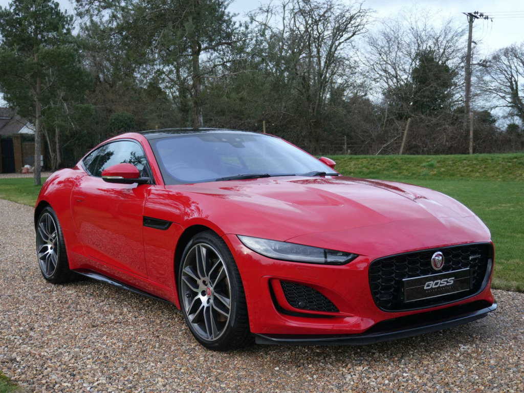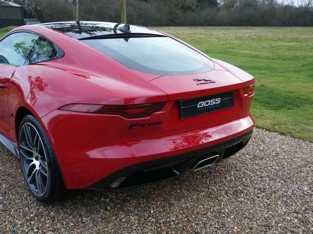 2022 Jaguar F-Type R-Dynamic Coupe33,300 miles - 1 owner from new - Full Jaguar main dealer service historyFinished in Caldera Red with Black leather and Alcantara interior, this one-owner F-Type R-Dynamic Coupe presents in excellent condition and benefits from a strong specification focused on driver engagement and comfort.Key details:- 2022 / 22 plate- 33,300 miles- R-Dynamic Coupe- Automatic transmission- Rear-wheel driveSpecification highlights:- Caldera Red exterior- Black leather and Alcantara interior- Glass panoramic roof- Switchable sports exhaust system- Exterior Black Pack- Deployable rear spoiler- LED Premium headlamps- Heated steering wheel- Heated windscreen- Heated front seats- 6-way electrically adjustable front seats- Ambient interior lighting- Reversing camera- Apple CarPlay & Android Auto- Touchscreen navigation system- Keyless entry and start- 20'' 10-spoke alloy wheelsHistory & ownership:- 1 owner from new- Full Jaguar main dealer service historyDisclaimer: Whilst every effort has been taken to ensure accuracy of all our vehicles information, some inaccuracies may occur. It is important that you do not rely on this information but check with Boss motor company limited about any items which may affect your decision to buy this vehicle.Fuel consumption and power usage figures are for guidance only. Factors such as driving style, weather, loading, traffic conditions, all affect the rate at which fuel or power is consumed. It is likely that some journeys will result in greater fuel consumption for the same distance than other journeys. You would be wise to ensure the power range remains above 20% at all times., in touch pro screen, 19in alloy wheels - 5 split-spoke style 5058 with technical grey diamond turned finish, 355mm front and 325mm rear brakes, 6 airbags, abs - anti-locking braking system, android auto, apple carplay, auto-dimming interior rear view mirror, autonomous emergency braking, bluetooth connectivity, bright metal pedals, cabin lighting, connected navigation pro, contrast carpet mats, cruise control with speed limiter, delta aluminium centre console, deployable boot lid spoiler, digital audio broadcast - dab - radio, driver condition monitor, dynamic stability control - dsc, eba - emergency brake assist, ebd - electronic brake-force distribution, epb - electric parking brake, ebony morzine headlining, electric windows - front, f-type badge, flush exterior door handles, front deployable vents, front parking aid, interactive driver display, jaguar script and leaper, led tail lights, lane keep assist, leather steering wheel, low line cubby box, meridian sound system, metal treadplates with r-dynamic branding, online pack, open differential with torque vectoring by braking, passive suspension, perimeter sensing alarm and immobiliser, power assisted steering, power socket, push button start, rain sensing windscreen wipers, rain-ice-snow mode, rear camera, rear parking aid, remote, remote control central locking with dead locking and drive-away locking, silver brake calipers, silver gearshift paddles, single zone automatic climate control, smartphone pack, solar attenuating windscreen, steering column - electrically adjustable, sun visor with vanity mirrors, switchable active sports exhaust, traffic sign recognition with adaptive speed limiter, twin front cupholders, tyre pressure monitoring system, tyre repair system, usb and 12v socket in centre console, valet mode, 6-way heated electric front seats, heated - electric - door mirrors, premium led headlights with signature drl, r-dynamic exterior body kit, secure tracker (12 month subscription from new), meridian surround sound system, black exterior pack, exterior black design pack, fixed panoramic roof, heated front windscreen, pixel led headlights with signature drl, 6-way heated electric front seats, heated steering wheel, caldera red, grained leather and suedecloth - ebony