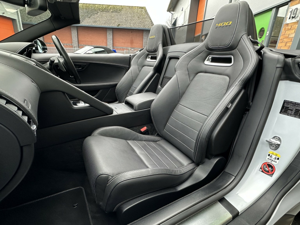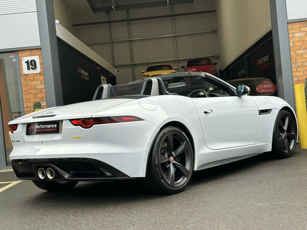 AN OUTSTANDING EXAMPLE OF THE RARE AND EXTREMELY DESIRABLE JAGUAR F-TYPE 400 SPORT. THIS CAR HAS A GREAT FACTORY SPECIFICATION AND A FULL COMPREHENSIVE SERVICE HISTORY. ITS IN IMMACULATE CONDITION, HAS ONLY HAD 2 FORMER KEEPERS AND HAS GENUINE LOW MILEAGE!, , Upgrades/Spec Includes: Yulong White Metallic Paintwork, Black Windsor Leather Performance Seats, 12 Way Electric Memory Seats, Heated Flat Bottom Multi Function Leather Steering Wheel, Touchscreen Navigation System, Bluetooth Handsfree With Bluetooth Audio, DAB Radio, 600W Meridian Audio, Electric Folding Heated Mirrors, Dual Climate Control, LED Headlights, Auto Main Beam, Auto Lights/Wipers, Exterior Black Pack, Switchable Sports Exhaust, Climate Windscreen, Cruise Control, Ambient Interior Light Package, Bluetooth Interface Connect, Limited Slip Differential, Variable Dampers, Electric Steering Column, Black Grille, Keyless Entry/Keyless Go, Front + Rear Parking Aid, Reverse Camera, 20 Heidi Dark Finish Wheels With Matching Pirelli Tyres, 2x Keys. , SPEAK TO US ABOUT OUR FLEXIBLE LOW RATE FINANCE OPTIONS, OR TRY OUR FREE FINANCE ELIGIBILITY CHECKER ON OUR WEBSITE!, , ANY PART EXCHANGE ACCEPTED!, , Serviced at: 2155 Miles, 6849 Miles, 9073 Miles, 12680 Miles, 16447 Miles, 23843 Miles, 29382 Miles.