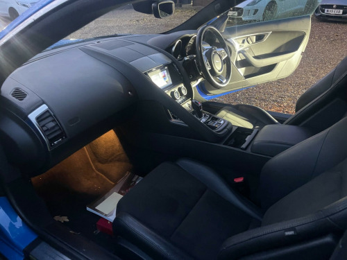 AN EXCEPTIONAL EXAMPLE with FULL JAGUAR HISTORY. Finished in Metallic Ultra Blue with black half leather electric sports seats. Ghost Immobiliser This 2017 Jaguar F Type V6 offers a superb ownership history, having been looked after by only two owners. Powered by a 3.0 litre petrol engine and meeting Euro 6 emissions standards, this F Type combines performance with modern efficiency. Inside, you'll find a single zone automatic climate control system to keep you comfortable, while the Meridian 380W sound system provides an exceptional audio experience. Connectivity is made easy with Bluetooth, and Xenon headlights with LED signature ensure excellent visibility. For added convenience, rear parking aid with sensors is also included.The F Type V6 stands out with its desirable features, indicating a higher standard compared to other vehicles in its class. The low insurance group is a significant advantage, making ownership more accessible. This Jaguar F Type is a compelling choice for those seeking a blend of exhilarating driving dynamics, premium comfort, and sophisticated technology. in alloy wheels - 10 spoke style 1024 - silver, 5in display with instrument panel - 190mph-300kmh, 6 airbags, 6-way electric front seats, 8in touchscreen, abs - anti-locking braking system, active sports exhaust, analogue dials, auto-dimming interior rear view mirror, autonomous emergency braking, black grille, bluetooth connectivity, boot entrapment release lever, carpet mats - premium, chrome instrument cluster dial rings, cruise control with speed limiter, deployable boot lid spoiler, digital audio broadcast - dab - radio, door mirrors - body coloured, dynamic mode, dynamic stability control - dsc, eba - emergency brake assist, ebd - electronic brake-force distribution, epb - electric parking brake, ebony door release, ebony morzine headlining, electric windows - front, f-type badge, fixed aluminium roof, flush exterior door handles, front deployable vents, graphite interior trim accent, heated door mirrors, incontrol apps, incontrol protect, incontrol remote premium for warranty period, infrared reflective windscreen, interior lighting, jaguar script and leaper, jaguar tyre repair system, knurled aluminium centre console, led tail lights, lane departure warning, leather steering wheel, low line cubby box, luxtec wrapped instrument panel topper, meridian sound system - 380w, navigation pro system, open differential with torque vectoring by braking, overhead lighting console, passive suspension, pedestrian contact sensing, perimeter sensing alarm and immobiliser, pollen filter, power assisted steering, power socket, pro services, push button start, rain sensing windscreen wipers, rain-ice-snow mode, rear parking aid, remote control central locking with dead locking and drive-away locking, seats - sports, silver brake calipers, single zone automatic climate control, steering column - electrically adjustable, steering wheel - silver paddles, sun visors - ebony morzine, touch pro system, trip computer, twin exhaust pipes - centre mounted, twin front cupholders, tyre pressure monitoring system, usb and 12v socket in centre console, valet mode, xenon headlights with led signature, heated front windscreen, heated front seats, heated steering wheel, power open-close tailgate