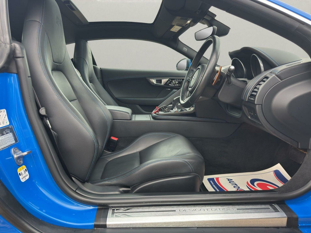 At East Anglia Car Sales we are proud to present this 2016 JAGUAR F-TYPE British Design Edition finished in pearlescent blue. Lovely example great factory spec good service history along with x4 alloy wheel refurbishment and a new service this little gem is ready for viewings.Please Call now to arrange a viewing or book a test drive! , Part exchange is welcome and finance options are available. We are a family run business on the coast of Suffolk near Woodbridge and have been sourcing and supplying quality used cars and light commercial vehicles since 2013. We were gratefully awarded *AutoTrader Highly Rated for Customer Service in 2022!*, We understand the process of buying a new car can be challenging, therefore we pride ourselves in delivering the best customer service making it easy for you to choose your next car for the best price! We give you peace of mind with all of our vehicles as along with every sale, we include a premium nation-wide warranty with a chance to increase this up to 36 months on sale. Looking for finance? One of our team members can give you a finance quote tailored to you!, Got a car you want to sell? At East Anglia Car Sales we understand that selling a car can be an overwhelming process... Thats why we allow all part exchange vehicles, We use our evaluation software via Auto Trader which gives an up to date market value for your part exchange vehicle,, we handle all the unnecessary paper work for you. Any of our vehicles can be secured by a refundable deposit. This is only subject to a refund if the buyer pays the deposit prior to viewing and on viewing is not happy with the sale.